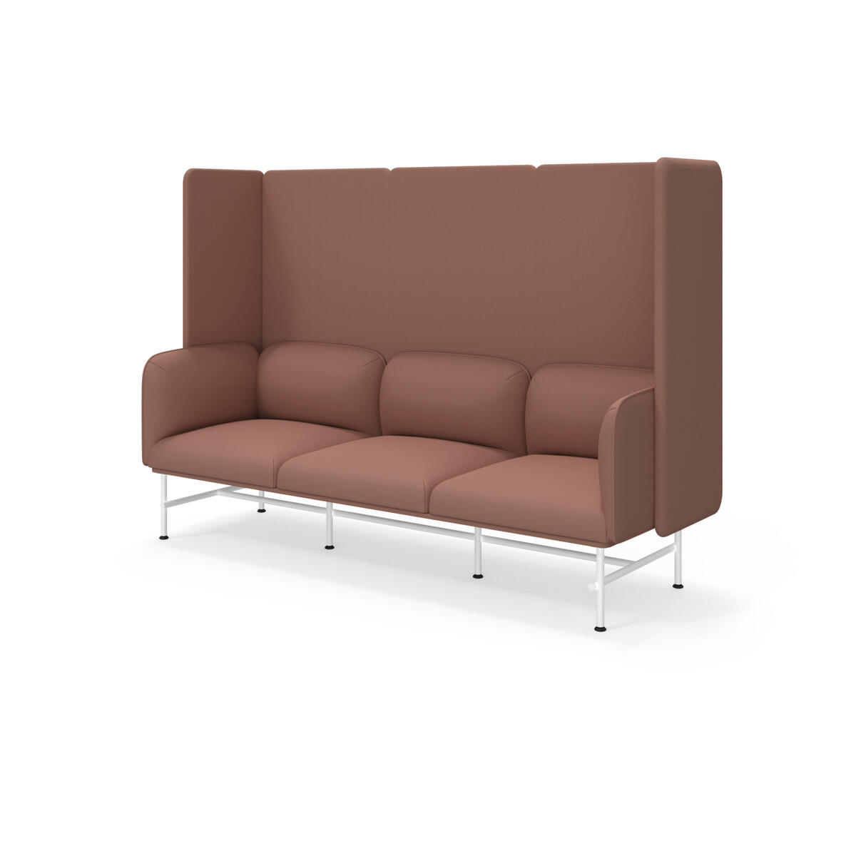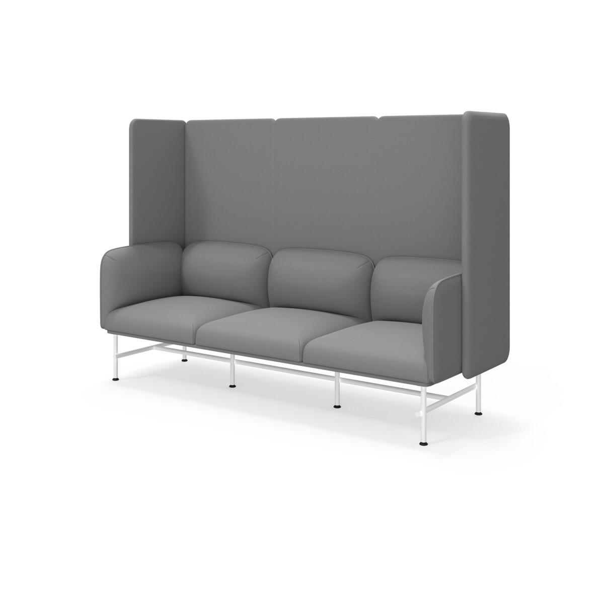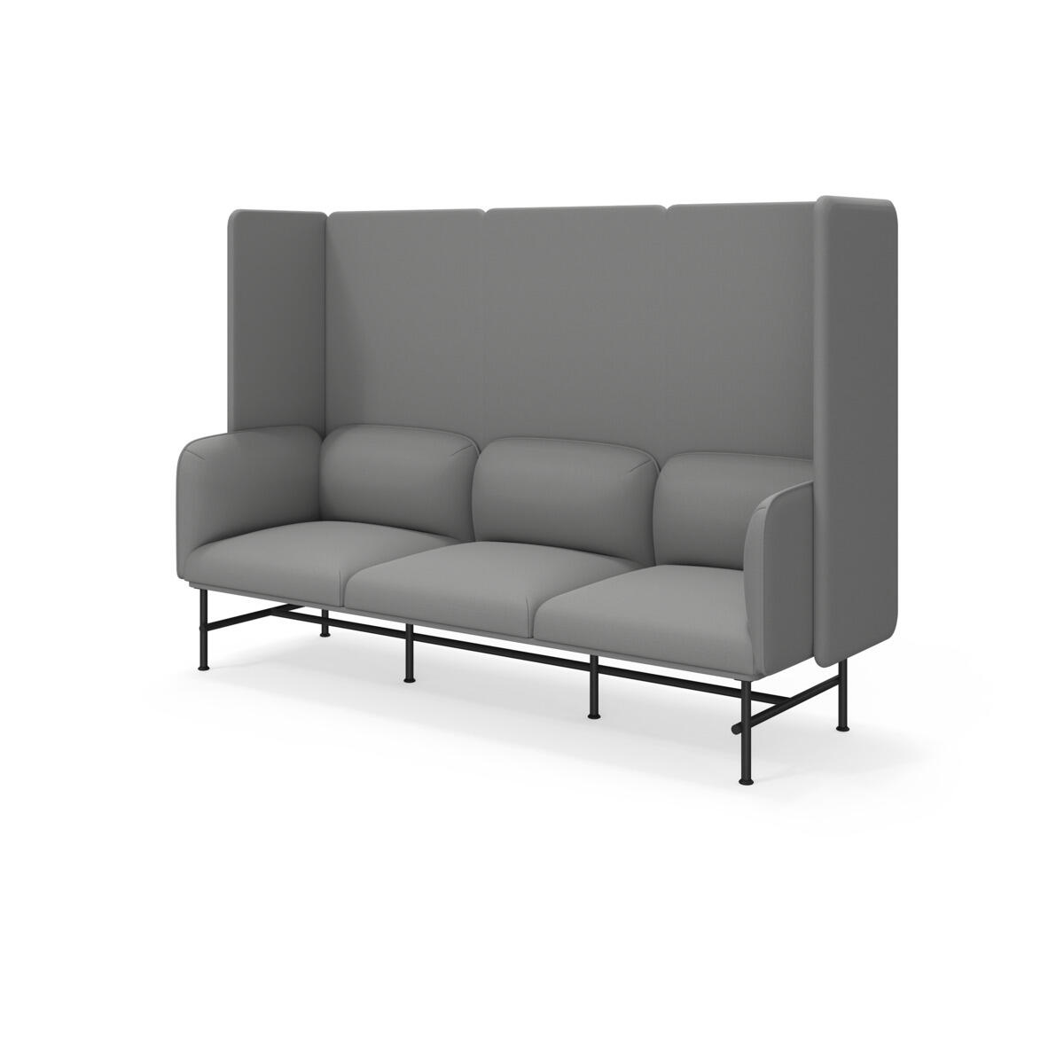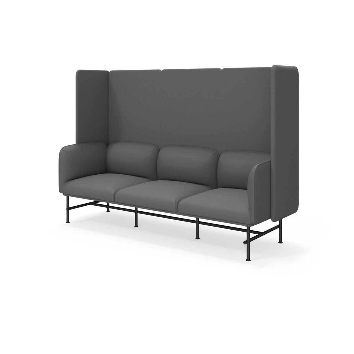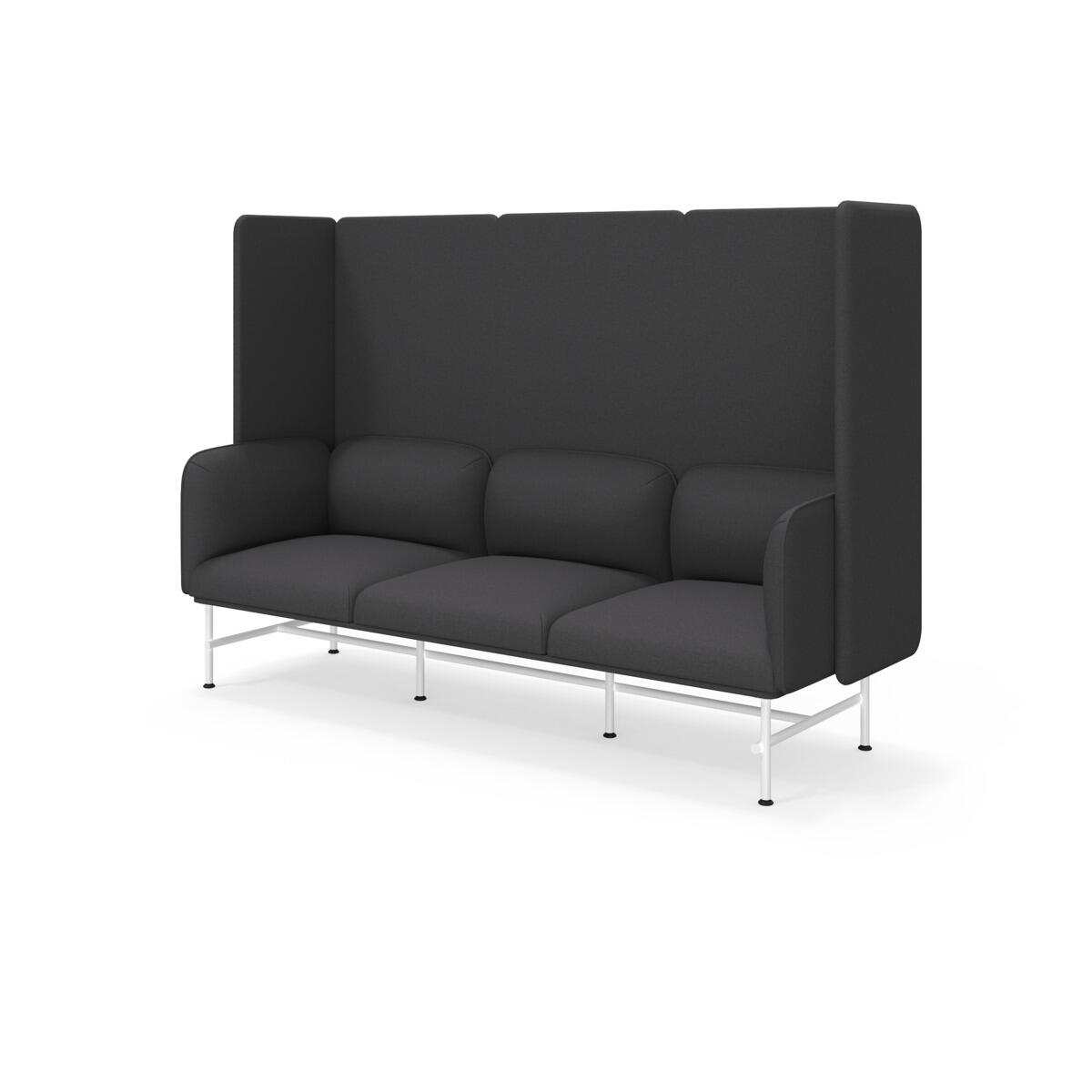 Et minimalistisk møbel, der kombinerer elegance med funktionalitet. Den høje ryg og sider bidrager til at dæmpe lyd og forbedre rummets akustik. Træstel og polstring i koldskum. Ben i pulverlakeret metal. Som tilvalg findes sidebord eller armstøtte i metal, bestilles på eget artikelnummer.