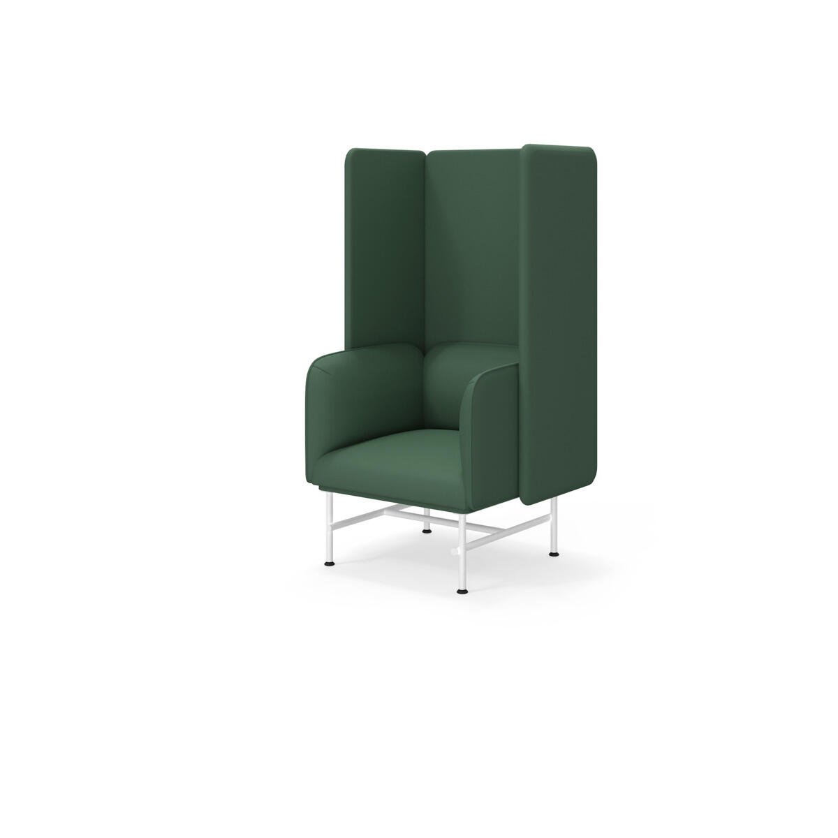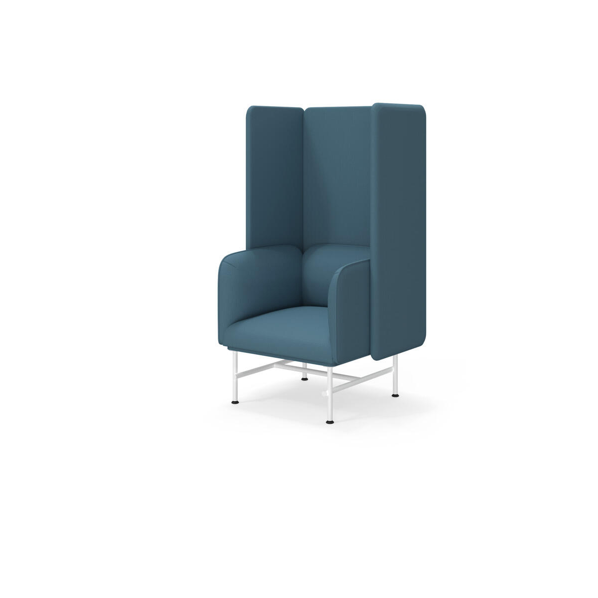 Et minimalistisk møbel, der kombinerer elegance med funktionalitet. Den høje ryg og sider bidrager til at dæmpe lyd og forbedre rummets akustik. Træstel og polstring i koldskum. Ben i pulverlakeret metal.