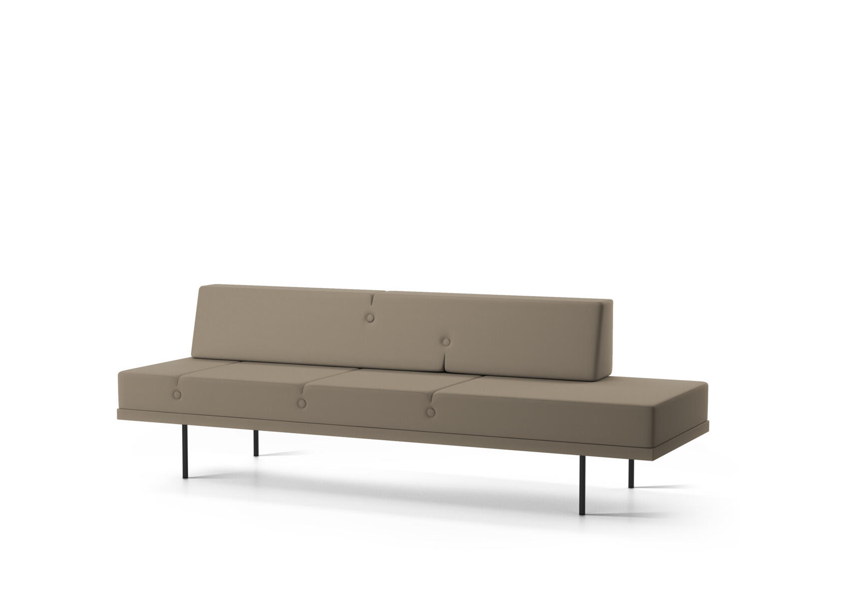 Den moderne og eksklusive sofa Off repræsenterer en fusion af stil og funktionalitet, som kan forvandle ethvert rum. Dens alsidighed tillader kombinationer, der passer til alle rum og stilarter, mens dens generøse dybde giver ekstra komfort og muligheden for at blive brugt som en daybed. Træramme og polstring i koldskum. Ben i pulverlakeret metal. Beslag til sammenkobling medfølger.