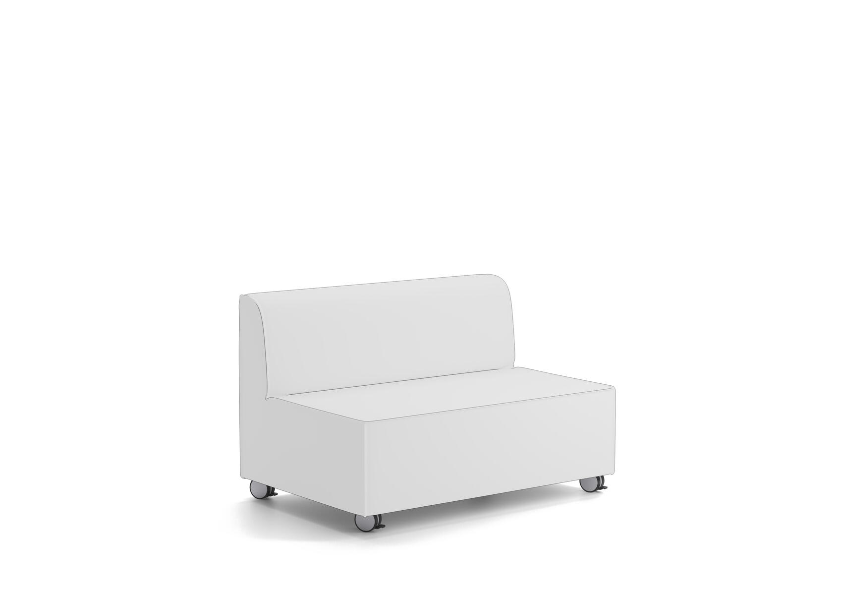 Modulsofa med fire låsbare hjul. Totalmål: B120xH80 cm. Siddehøjde 42 cm. Siddedybde 60 cm. Fyld af koldskum. Stofbehov 3,5 m. Stof bestilles separat. Koblingsbeslag medfølger.