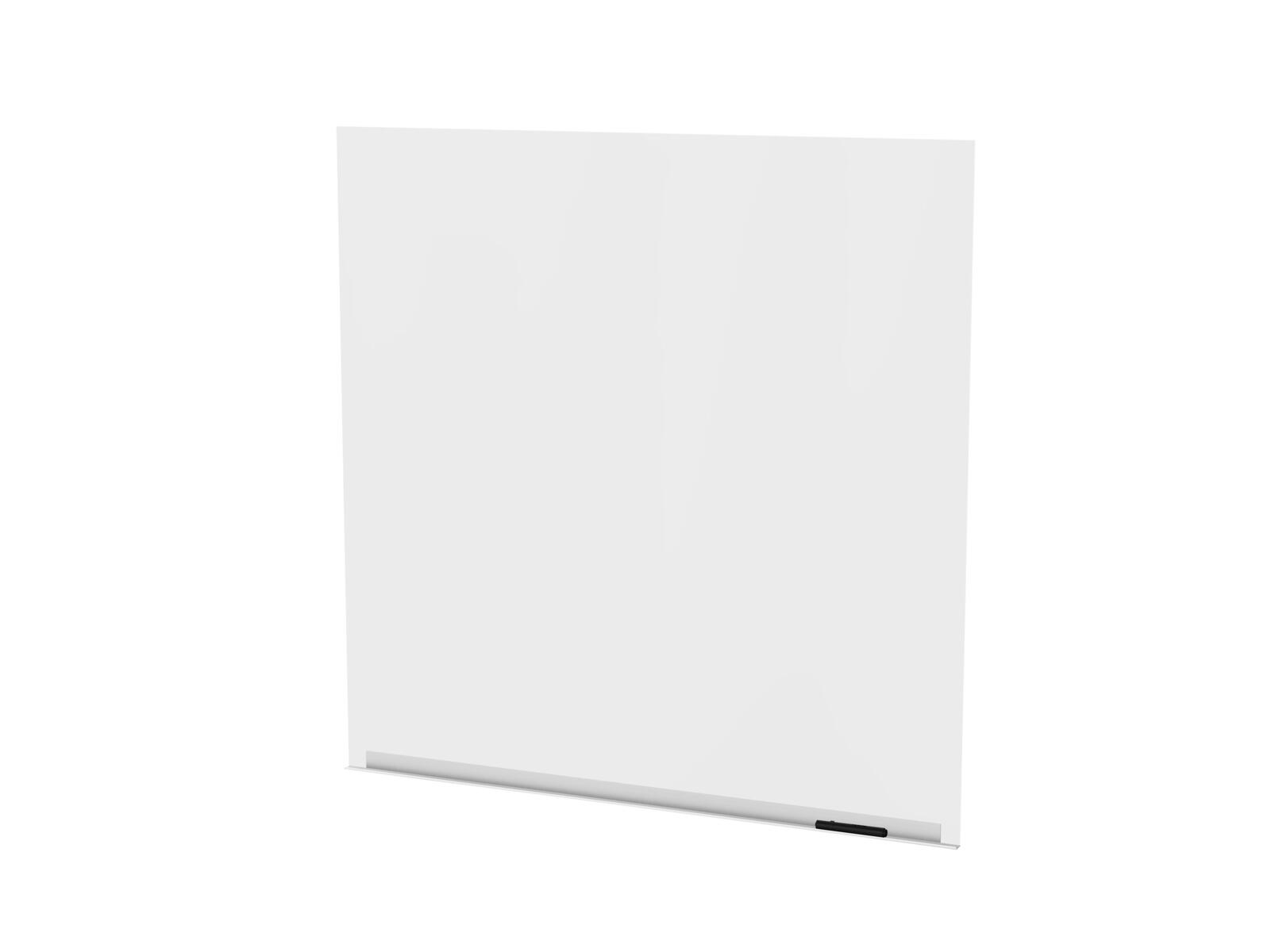 Magnetbærende glastavle i optisk glas med ekstra lavt jernindhold, som giver et helt klart udtryk uden grønne toner. Det optiske glas sikrer høj farveægthed og en klarhed, der ikke kan opnås med standardglas. Tavlen har skjulte beslag og er fremstillet i 4 mm hærdet, optisk glas. Kræver særligt tilpassede, kraftigere magneter.