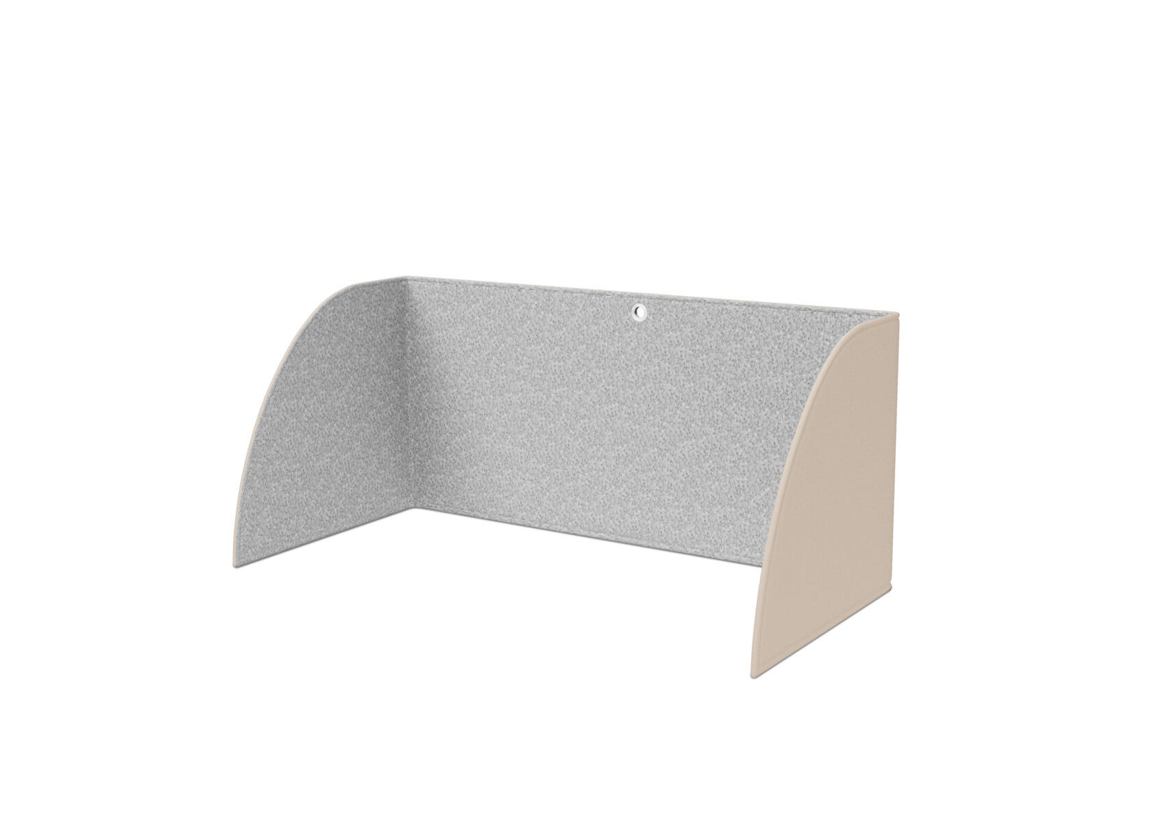 Lydadæmpende skærm til bordet, som hjælper med at fokusere på en opgave. Skærmen består af tre dele, der kan vinkles efter behov. Efter brug kan skærmen hænges på væggen og fungerer derefter som en lydabsorbent. Velcro holder skærmen sammenfoldet. Mål: 100x50x50 cm. Materiale: Syntetisk filt af mindst 50 % genanvendt materiale. 100 % genanvendelig.