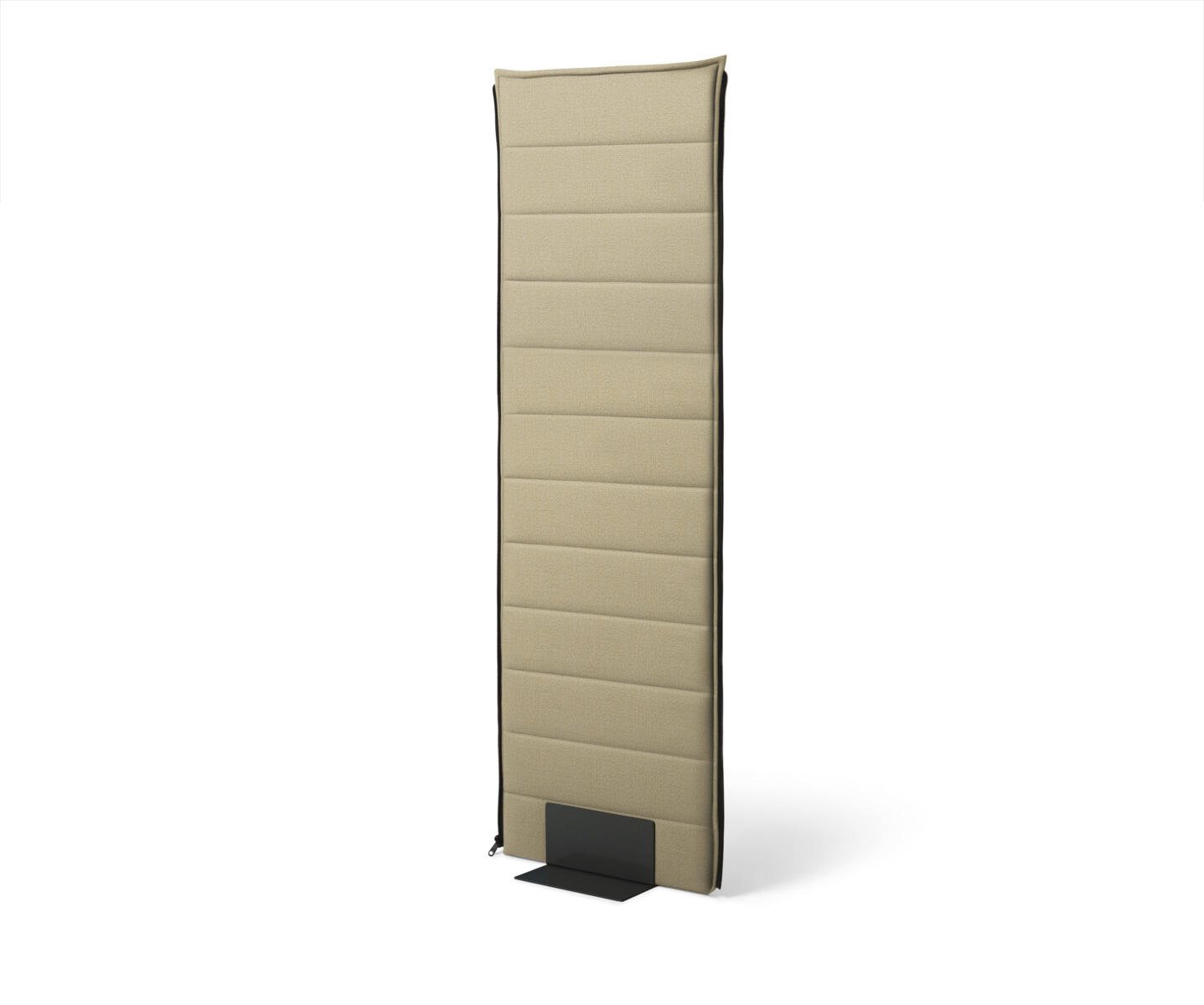 Skærm med lynlåsfunktion, der nemt samles og vinkles for fleksibel afskærmning og effektiv lydabsorbering. Lav, flad metalfod giver et let og stabilt udtryk.