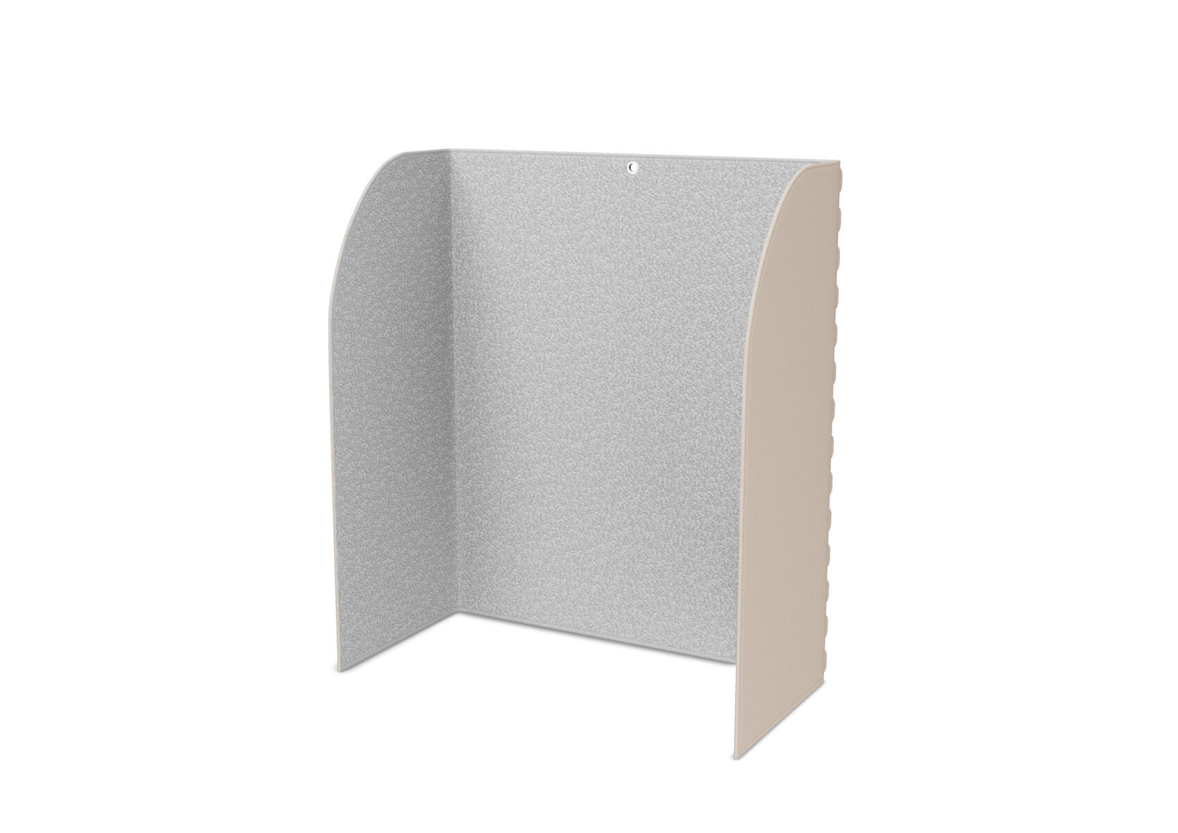 Lyddæmpende gulvskærm bestående af tre dele der kan vinkles efter behov. Efter brug kan skærmen hænges på væggen og fungerer derefter som en lydabsorbent. Passer til et bord med dimensionerne 70x60 cm. Materiale: Syntetisk filt af mindst 50 % genanvendt materiale. 100 % genanvendeligt. Lysegrå inderside, vælg farve på ydersiden af skærmen.