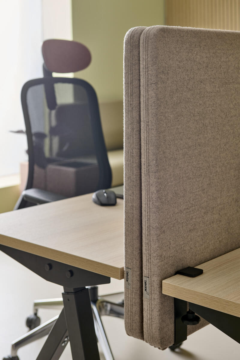 Bordskærm med ramme af massivt træ og en 40 mm tyk lydabsorberende kerne. Et fremragende valg til at skabe en mere privat og stille arbejdsplads. Alle fire hjørner er afrundede. Afstand fra bordplade til skærmens overkant: 500 mm. Beslag til montering bestilles separat under varenr. 118841.