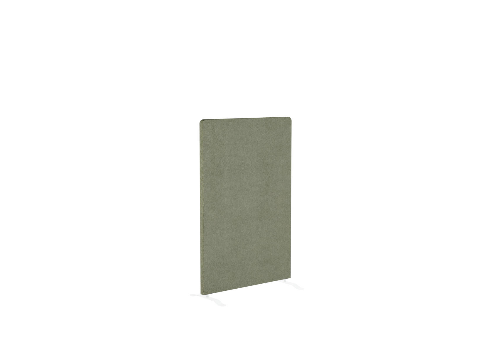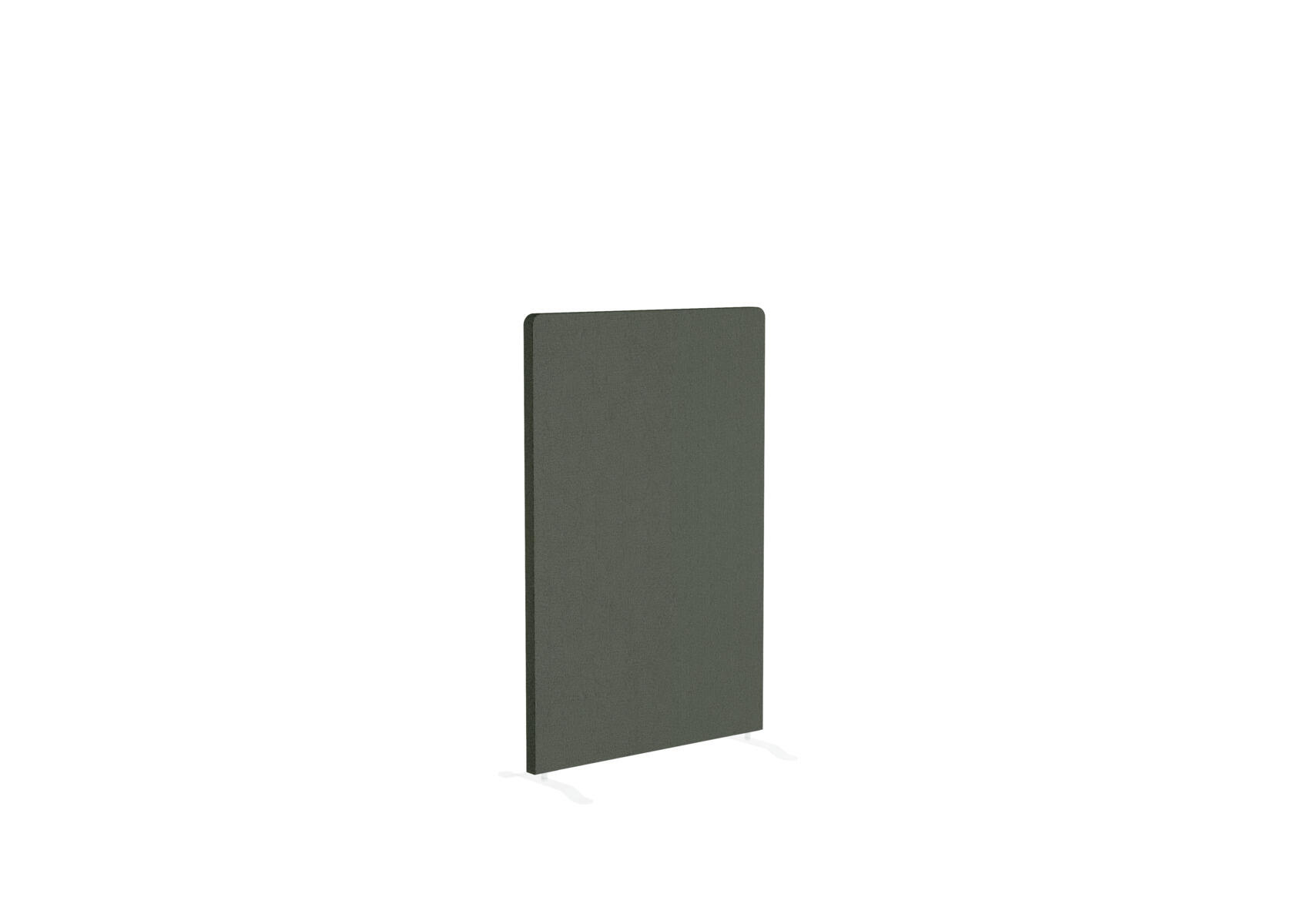 Lydabsorberende skærmvæg, rumdeler og opslagstavle. Ramme i massivt træ, lydabsorbent af 40 mm Rockwool. Stof Cara i 100 % polypropen, certificeret med EU-blomsten. Mål: H125xB100 cm. Fødder og koblingsbeslag købes separat.