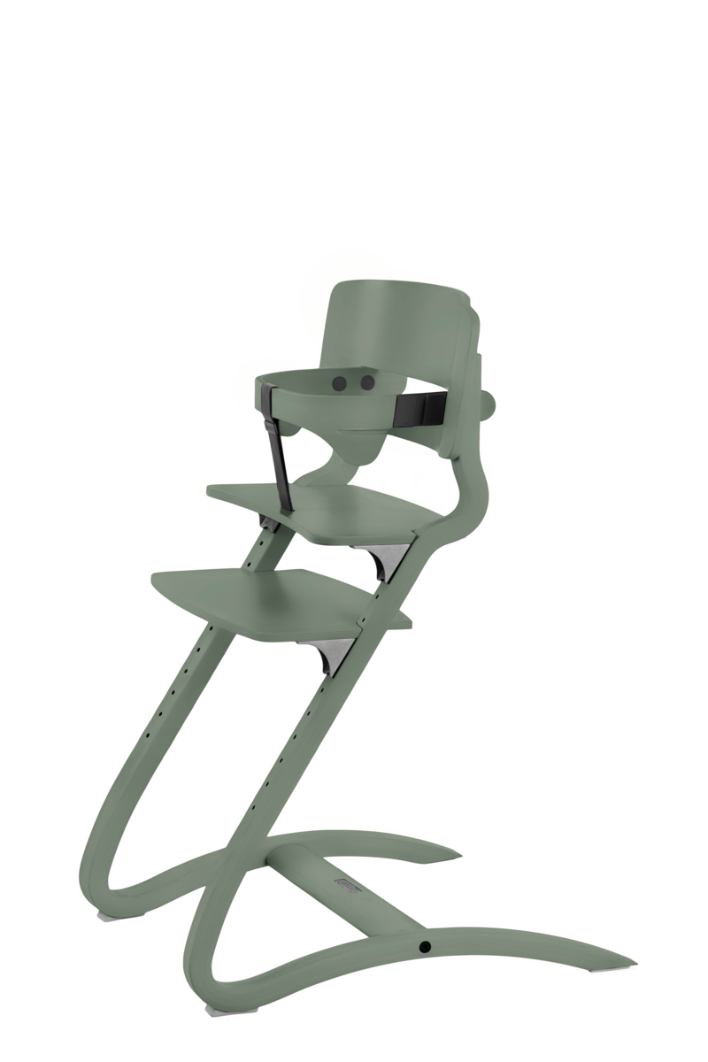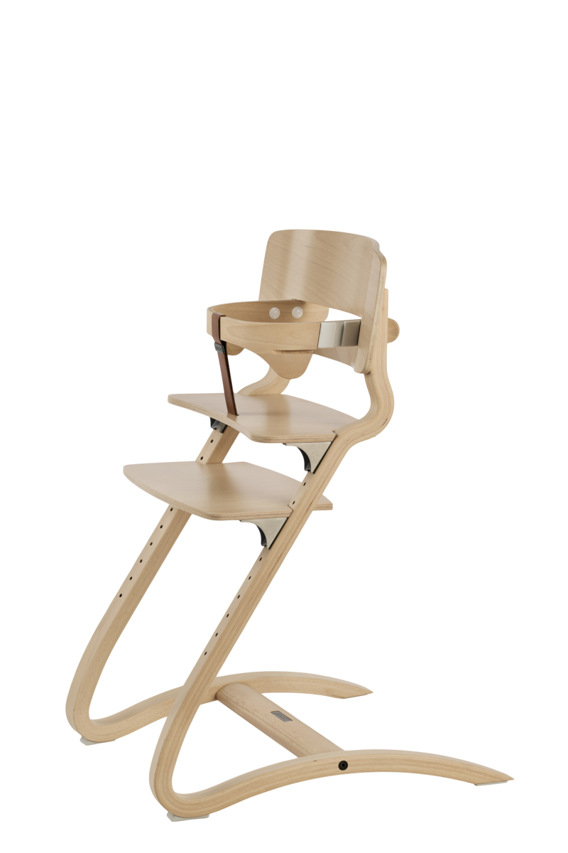 Ryglæn, sæde og fodstøtte justeres i takt med, at barnet vokser. Den fleksible konstruktion giver en skånsom fjedereffekt, som stimulerer motorikken. Stolen er let at bære og flytte rundt på. Kan også bruges som voksenstol. Fremstillet i formpresset bøg. Malet. Testet i henhold til EN 71-3 og EN 14988. Maks. belastning 125 kg. Bøjle fås som tilbehør.