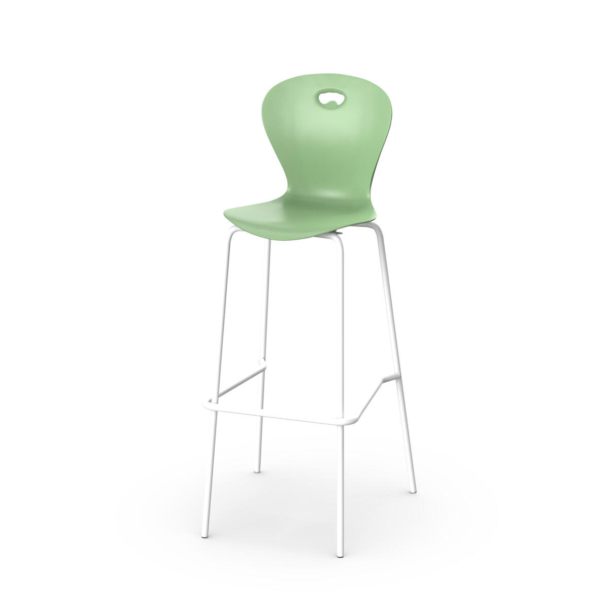 Skal i 100 % genbrugsplast. Stolen opfylder den europæiske standard EN 1729-1&2, størrelse 4-5, der stiller krav til, at brugere med en højde på 133-176 cm sidder godt og ergonomisk korrekt på stolen. Med taskekrog bagpå. Kan stables (maks. 4 stole) og hænges op, når man vender den. Let at rengøre. Sølvlakeret understel RAL 9006.