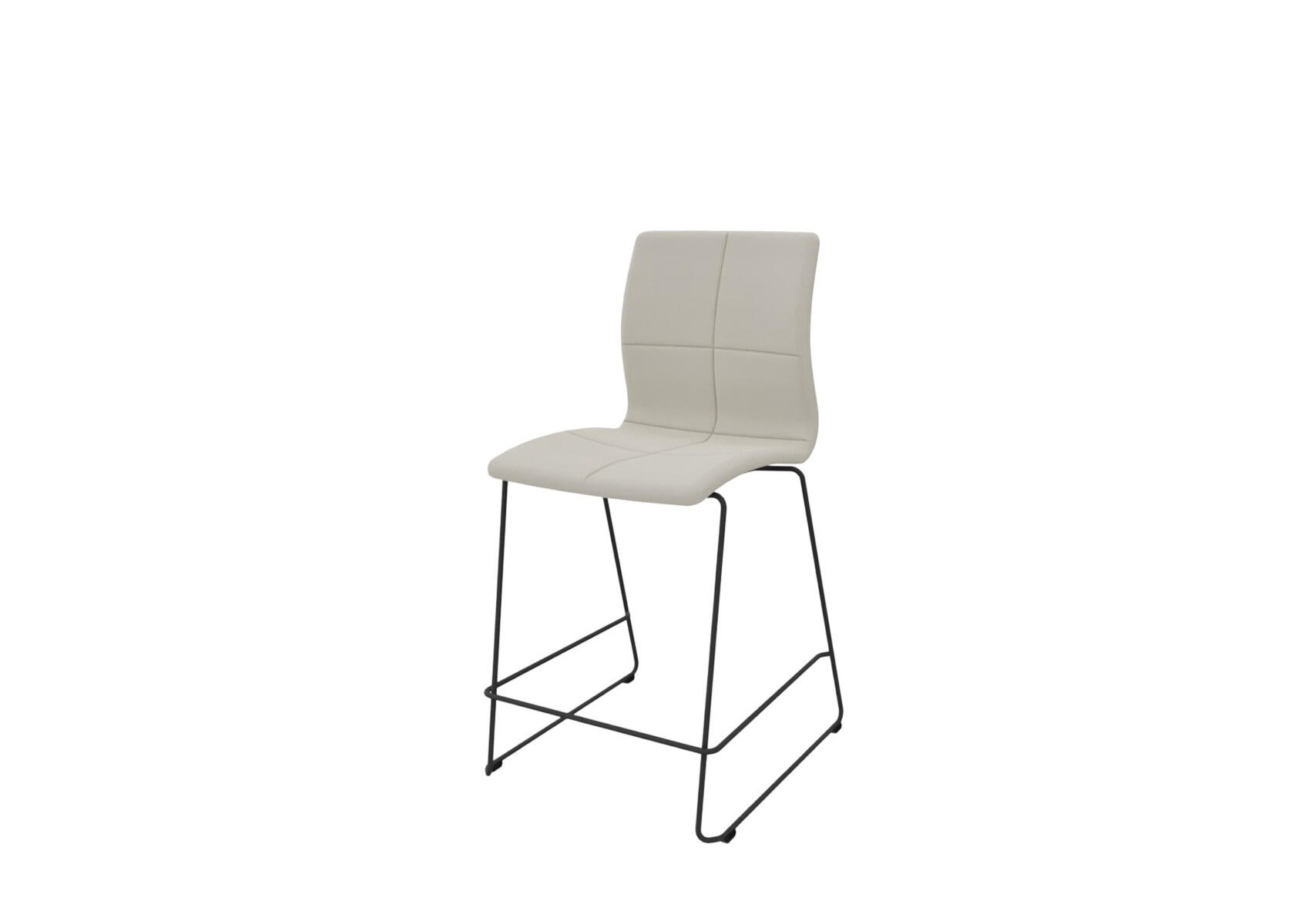 En tidløs, ergonomisk og komfortabel barstol til både frokost-, konference- og mødelokaler. Den har en rillet ryg og et sæde af formpresset finer polstret med koldskum, hvilket sikrer både komfort og støtte. Det stabile pulverlakerede medestel er fremstillet af Ø11 mm rør og udstyret med filtbetrukne møbeldupper for at beskytte gulvet. Stolen er stabelbar, maks. 5 i højden. Fodstøtte placeret 31 cm over gulvet.