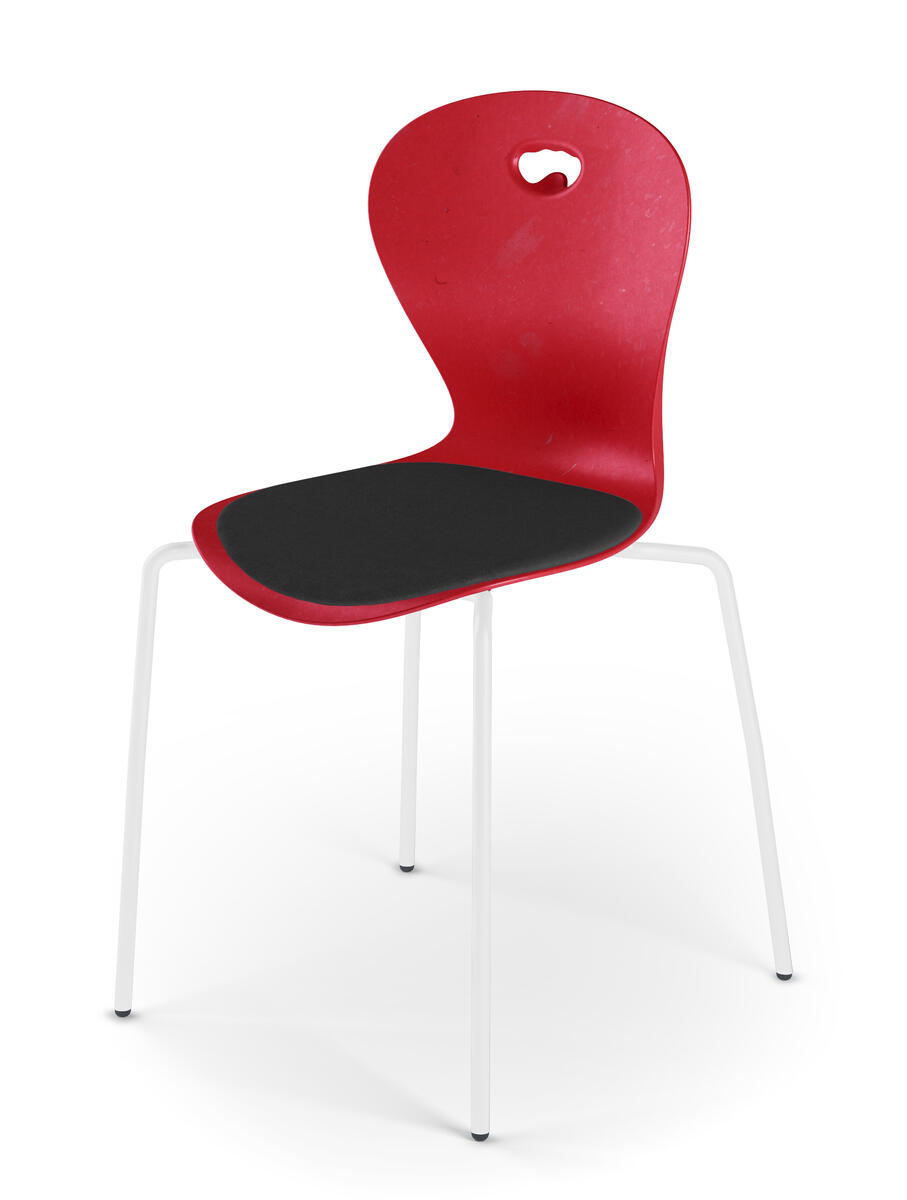 Skal i 100 % genbrugsplast. Stolen opfylder den europæiske standard EN 1729-1, størrelse 5-6, der stiller krav til, at brugere med en højde på 146-188 cm sidder godt og ergonomisk korrekt på stolen. Med taskekrog bagpå. Kan stables og hænges op. Let at rengøre. Sortlakeret understel RAL 9005. Mål: Siddehøjde 45 cm. Sædebredde 42 cm. Sædedybde 40 cm. Sædepolstring i 100 % genanvendt materiale kan tilvælges.