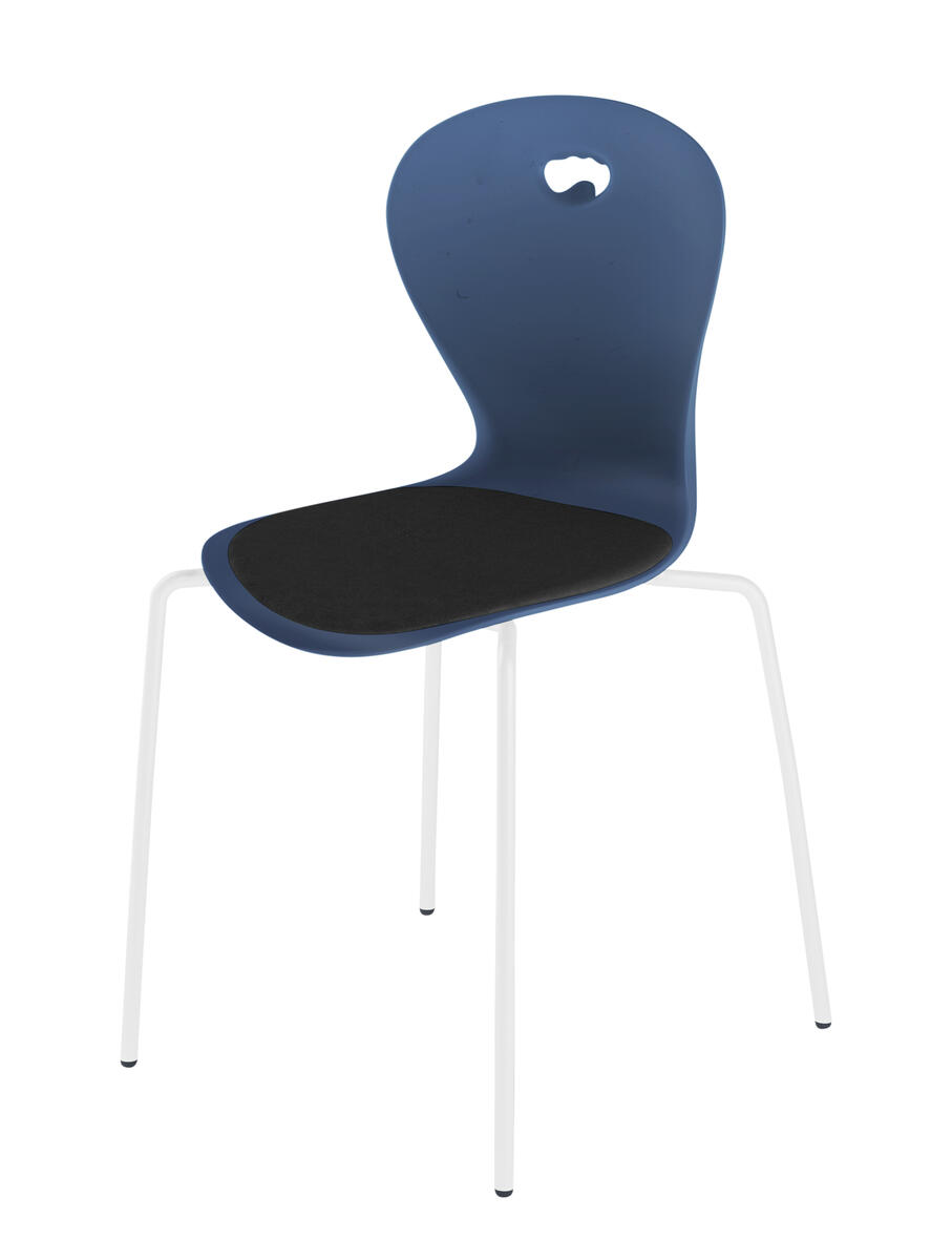 Skal i 100 % genbrugsplast. Stolen opfylder den europæiske standard EN 1729-1, størrelse 5-6, der stiller krav til, at brugere med en højde på 146-188 cm sidder godt og ergonomisk korrekt på stolen. Med taskekrog bagpå. Kan stables og hænges op, når man vender den. Let at rengøre. Sortlakeret understel RAL 9005. Mål: Siddehøjde 45 cm. Sædebredde 42 cm. Sædedybde 40 cm. Sædepolstring i 100 % genanvendt materiale kan tilvælges.