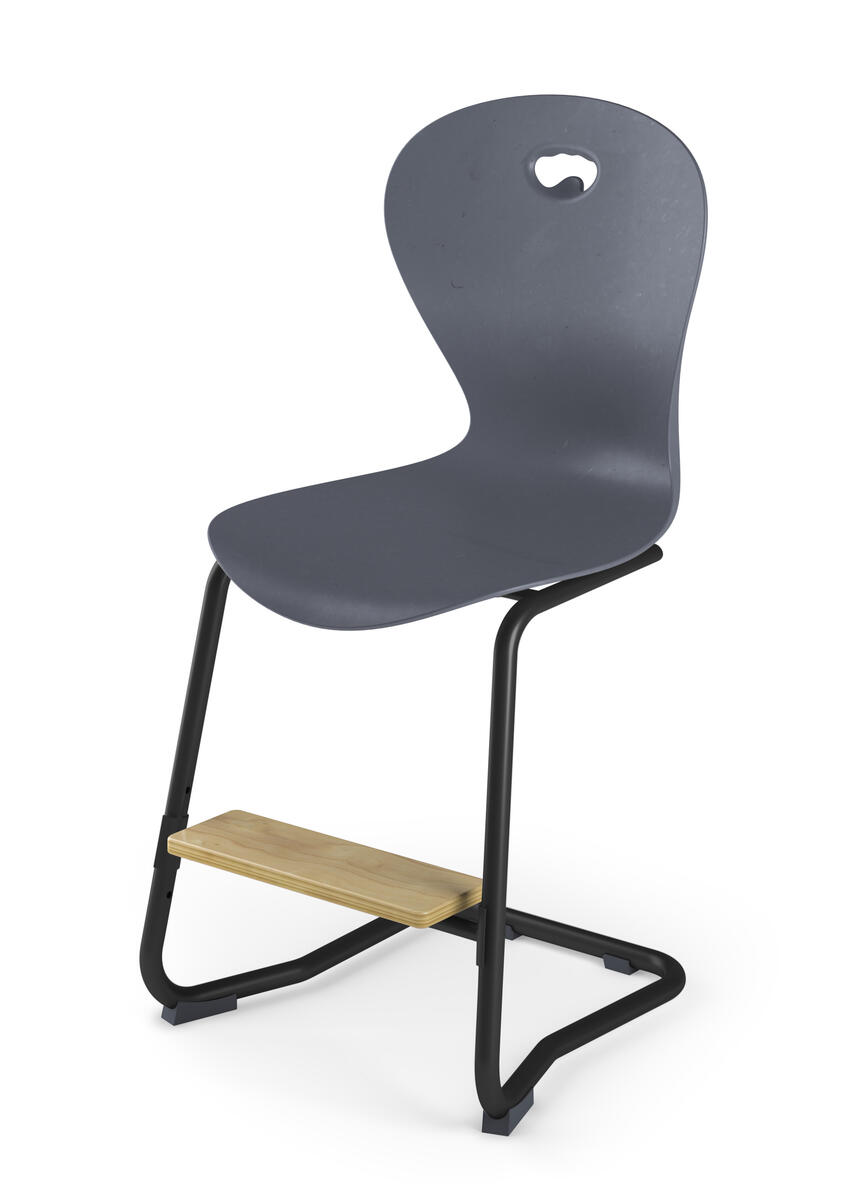 Skal i 100 % genbrugsplast. Stolen opfylder den europæiske standard EN 1729-1, størrelse 5-6, der stiller krav til, at brugere med en højde på 146-188 cm sidder godt og ergonomisk korrekt på stolen. Med taskekrog bagpå. Kan stables (maks. 4 stole) og hænges op, når man vender den. Let at rengøre. Sortlakeret understel RAL 9005. Mål: Siddehøjde 50 cm. Sædebredde 42 cm. Sædedybde 40 cm. Inkl. justerbar fodstøtte. Sædepolstring i 100 % genanvendt materiale kan tilvælges.