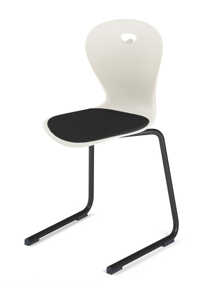 Skal i 100 % genbrugsplast. Stolen opfylder den europæiske standard EN 1729-1, størrelse 5-6, der stiller krav til, at brugere med en højde på 146-188 cm sidder godt og ergonomisk korrekt på stolen. Med taskekrog bagpå. Kan stables (maks. 4 stole), og understellet er udformet, så stolen nemt kan hænges op. Let at rengøre. Sortlakeret understel RAL 9005. Sædepolstring i 100 % genanvendt materiale kan tilvælges.