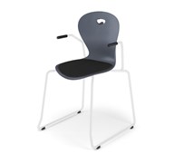 Skal i 100 % genbrugsplast. Stolen opfylder den europæiske standard EN 1729-1, størrelse 5-6, der stiller krav til, at brugere med en højde på 146-188 cm sidder godt og ergonomisk korrekt på stolen. Med taskekrog bagpå. Let at rengøre. Sortlakeret understel RAL 9005. Mål: Siddehøjde 45 cm. Sædebredde 42 cm. Sædedybde 40 cm. Sædepolstring i 100 % genanvendt materiale kan tilvælges.