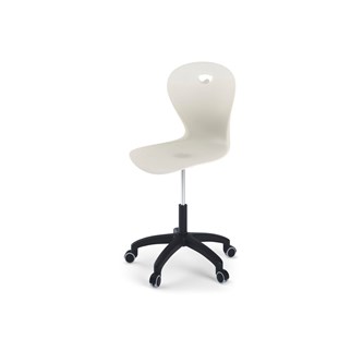 Særdeles holdbar og ergonomisk korrekt stol. Skallen er let fremadhældende, og dens elasticitet understøtter alle kroppens bevægelser. Siddehøjde 50-70 cm. Plastfod monteret med hjul. Skal i PUR.
