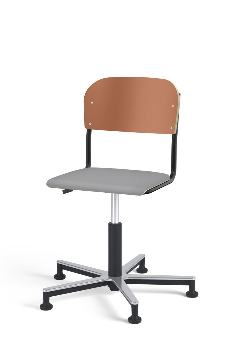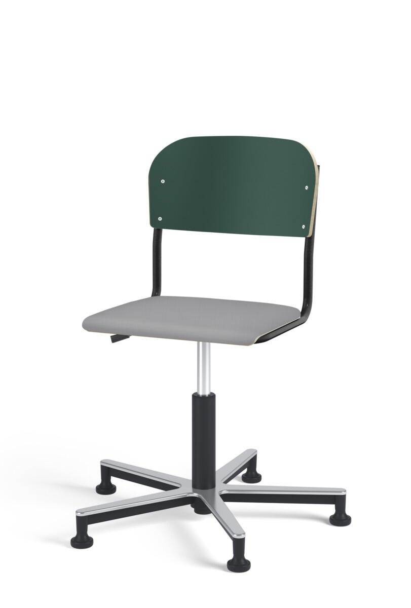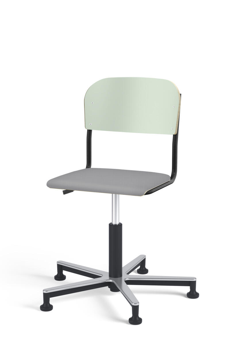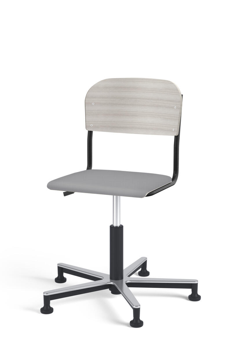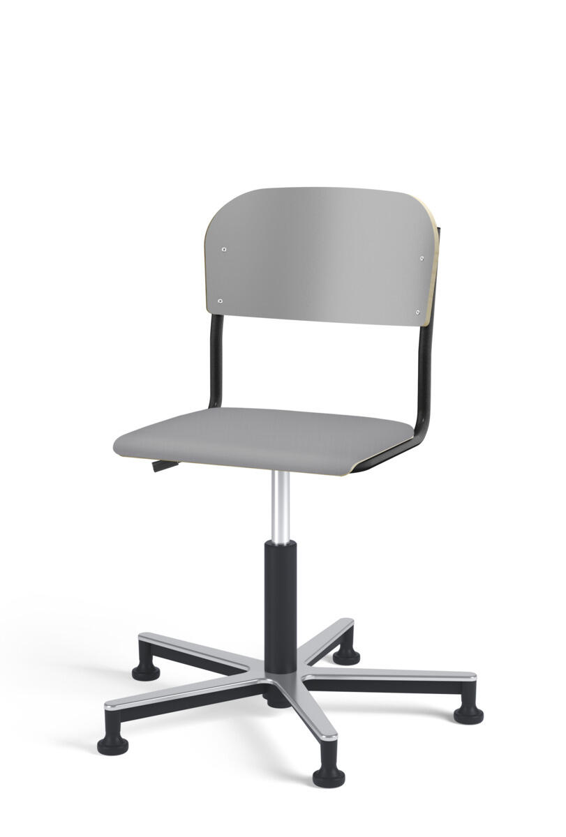 Stol Matte med gasfjeder til regulering af siddehøjden ved hjælp af et håndtag. Sæde og ryglæn i højtrykslaminat. Stel til sæde og ryglæn i pulverlakeret stål, sølv. Kryds i aluminium med glidesko. Som et tilvalg kan sædet betrækkes med Xtreme Padang YS145 (100 % polyester).