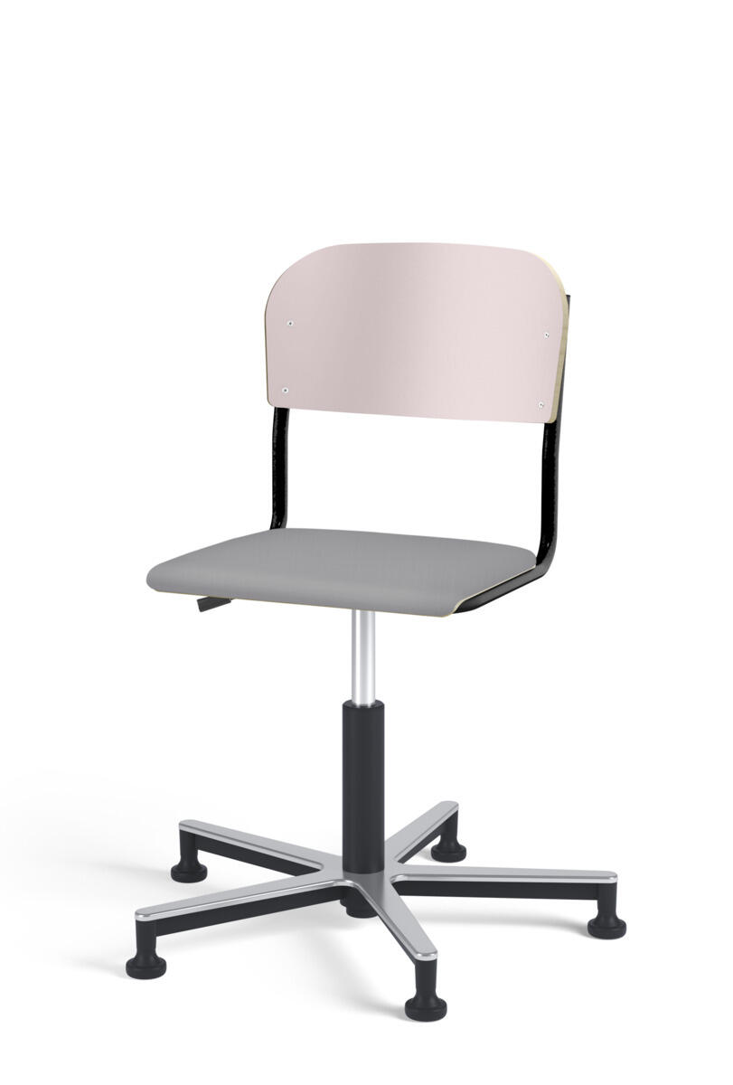 Stol Matte med gasfjeder til regulering af siddehøjden ved hjælp af et håndtag. Sæde og ryglæn i højtrykslaminat. Stel til sæde og ryglæn i pulverlakeret stål, sort. Kryds i aluminium med glidesko. Som et tilvalg kan sædet betrækkes med Xtreme Padang YS145 (100 % polyester).