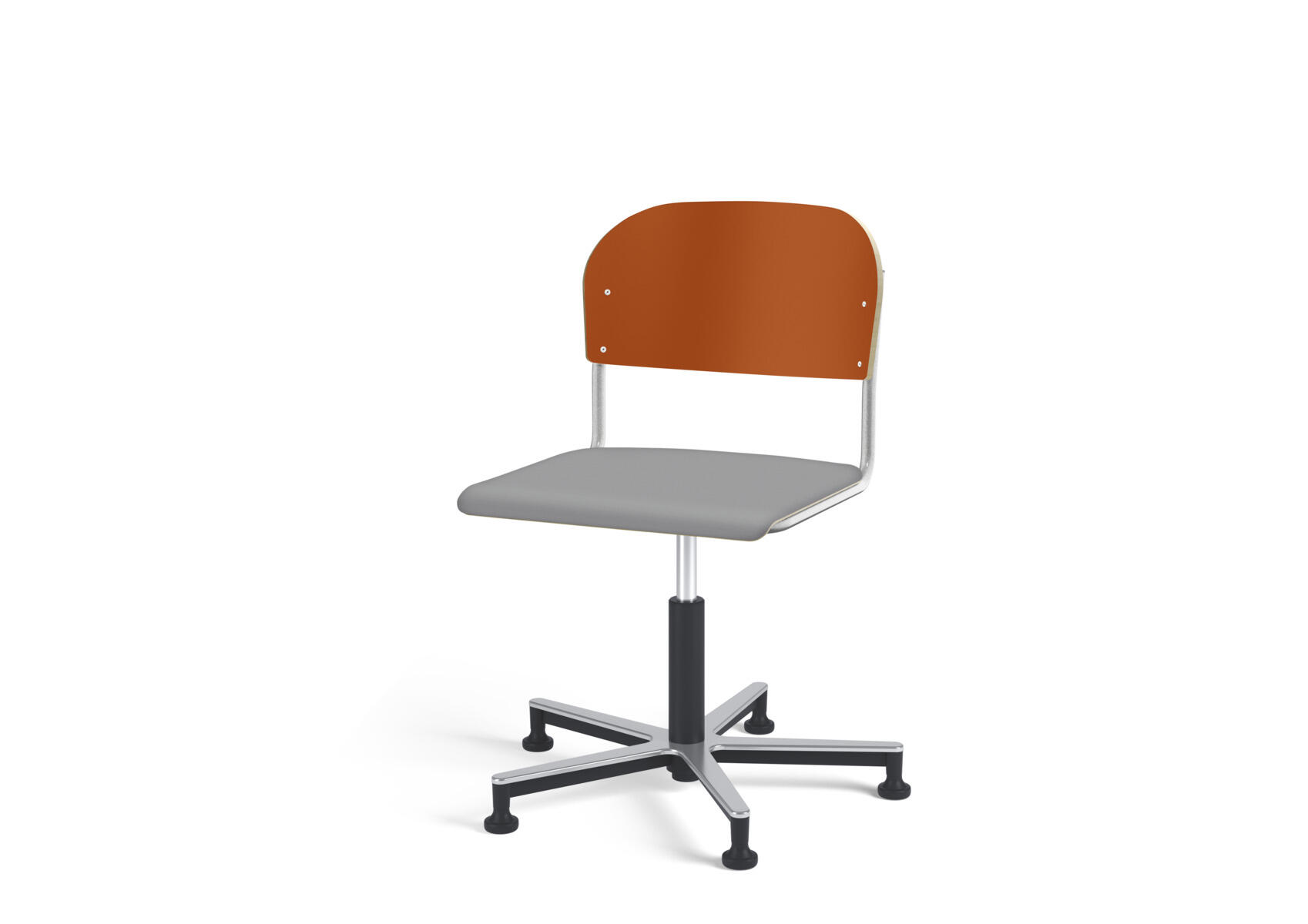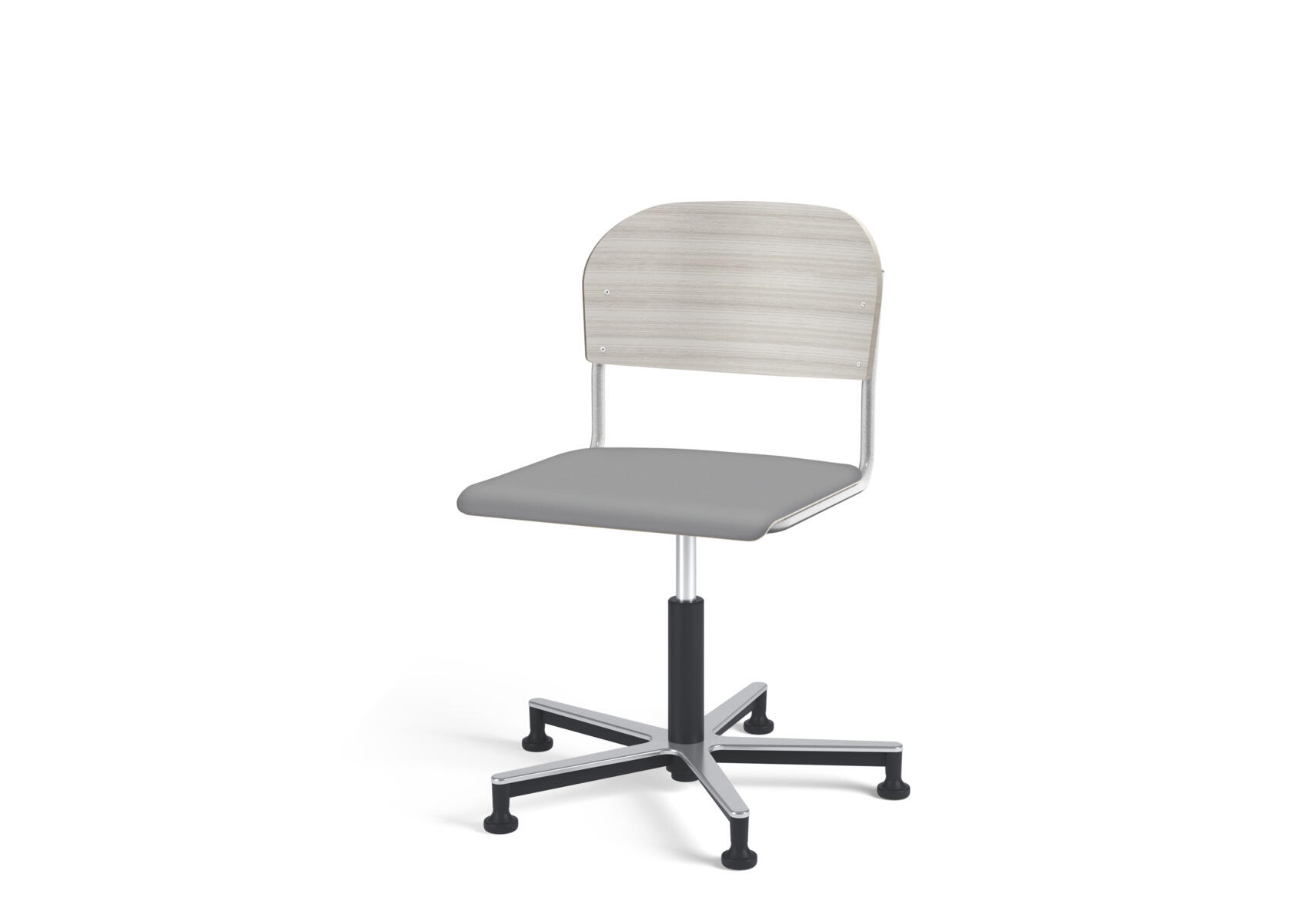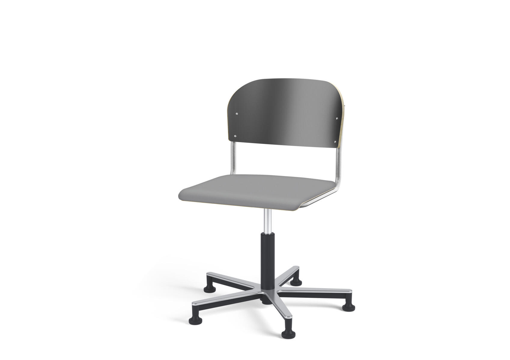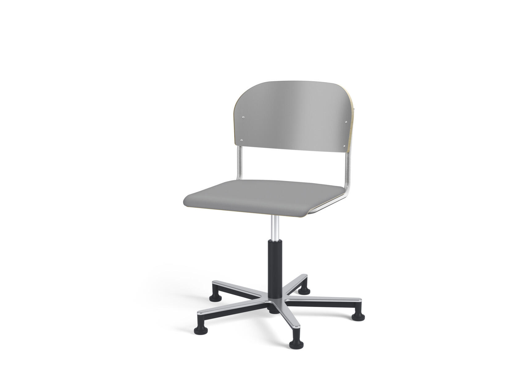 Stol Matte med gasfjeder til regulering af siddehøjden ved hjælp af et håndtag. Sæde og ryglæn i højtrykslaminat. Stel til sæde og ryglæn i pulverlakeret stål, sølv. Kryds i aluminium med glidesko. Som et tilvalg kan sædet betrækkes med Xtreme Padang YS145 (100 % polyester).