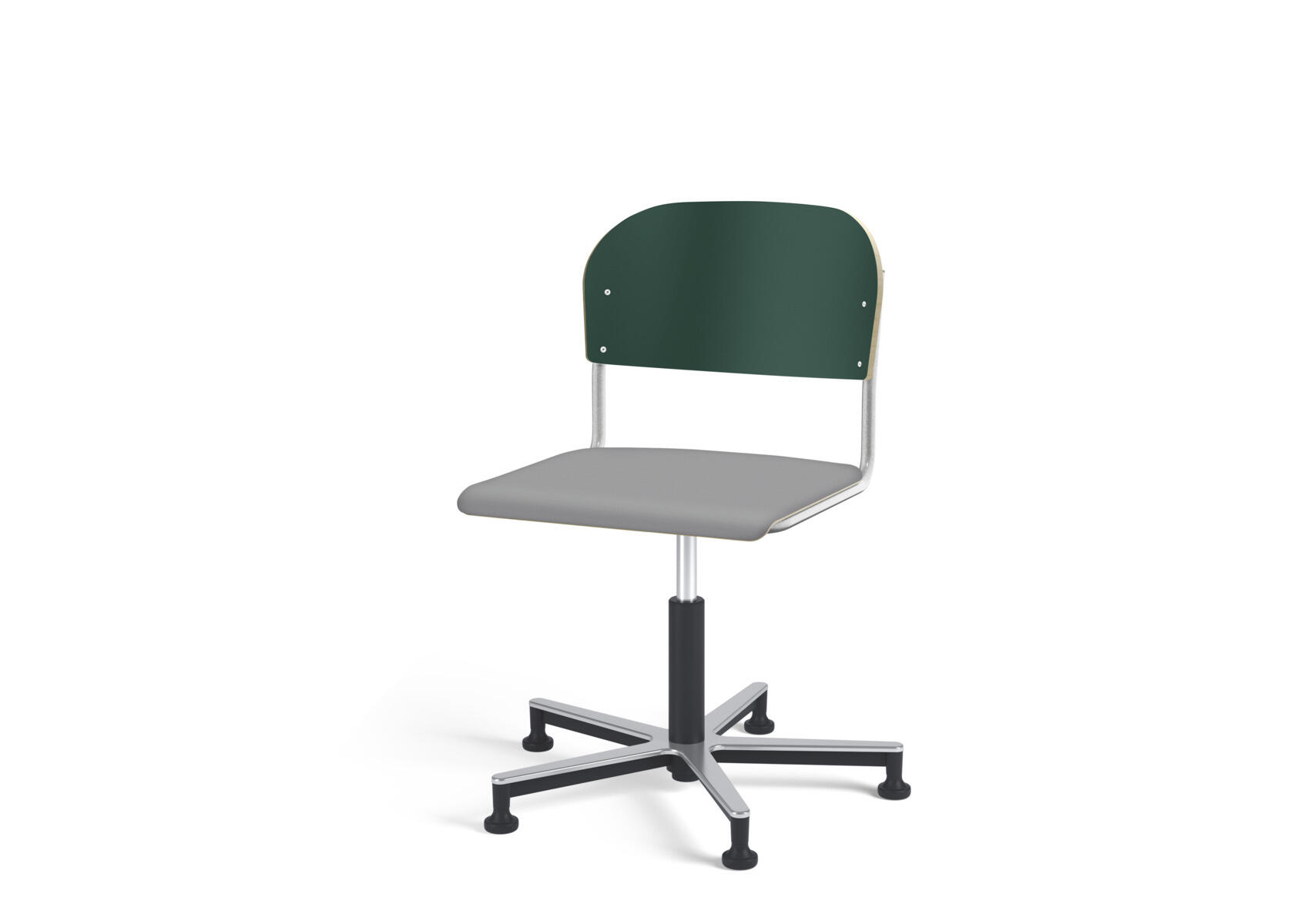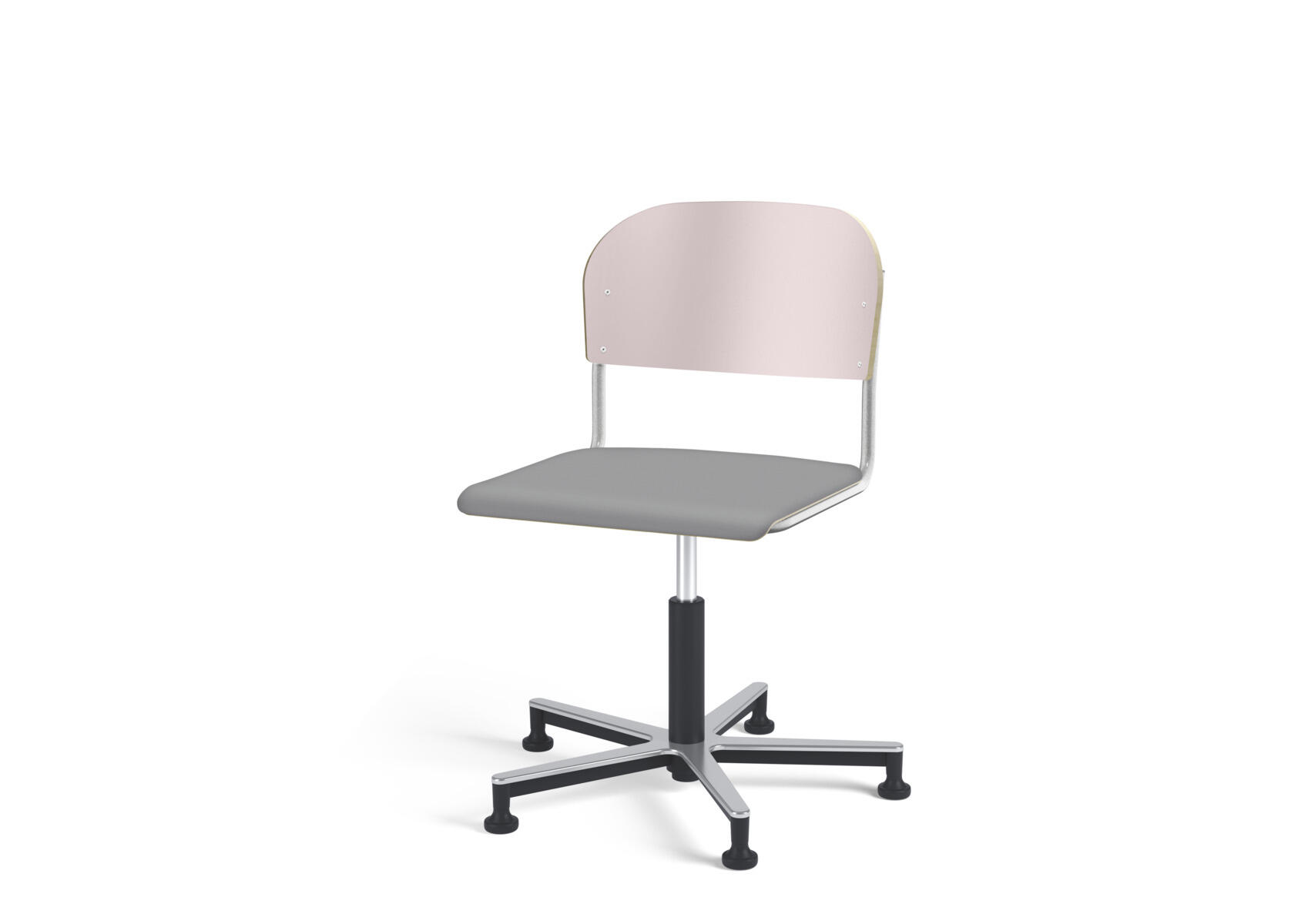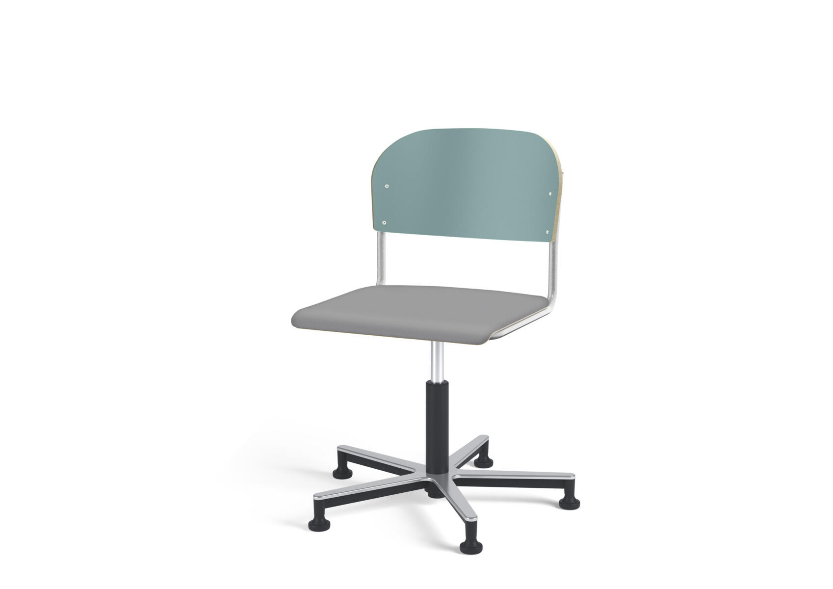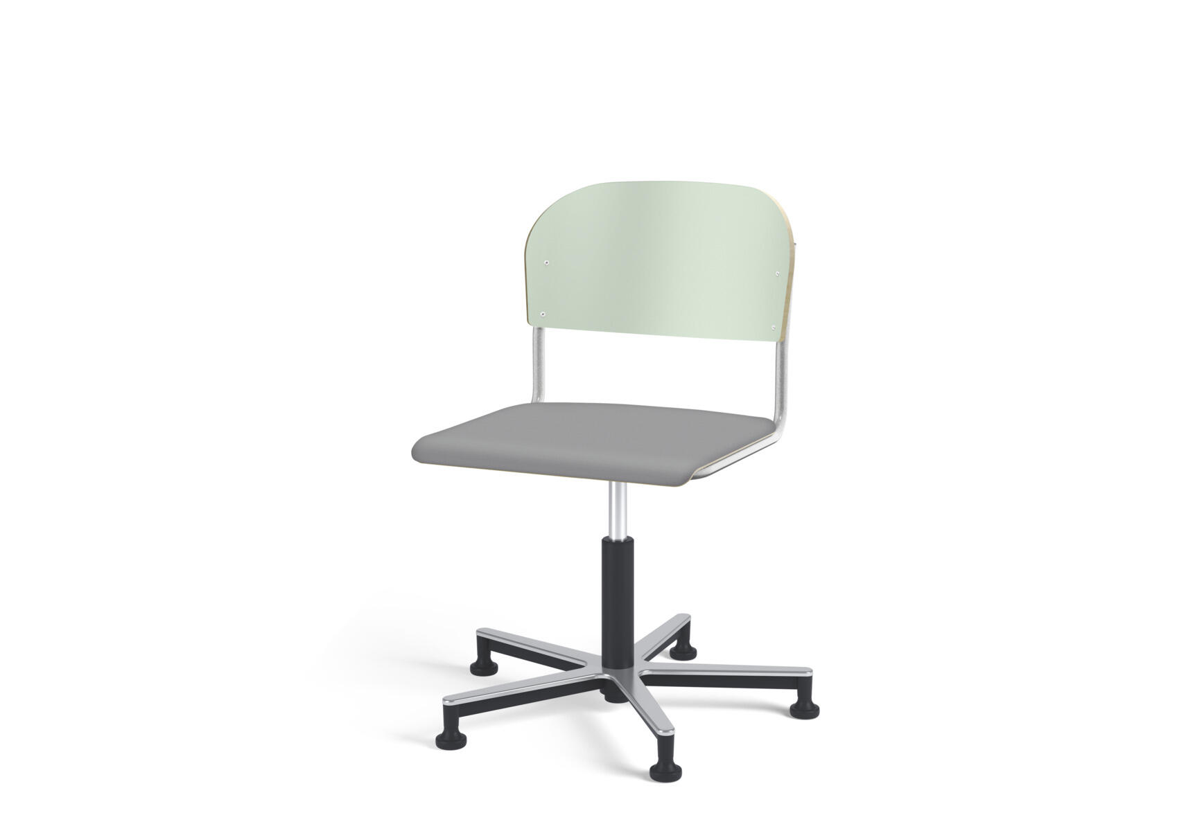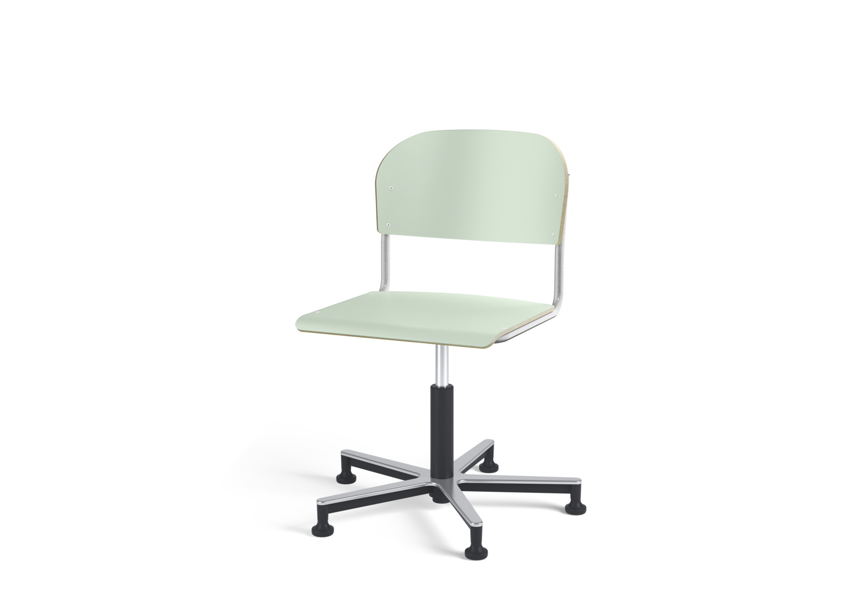Stol Matte med gasfjeder til regulering af siddehøjden ved hjælp af et håndtag. Sæde og ryglæn i højtrykslaminat. Stel til sæde og ryglæn i pulverlakeret stål, sølv. Kryds i aluminium med glidesko. Som et tilvalg kan sædet betrækkes med Xtreme Padang YS145 (100 % polyester).