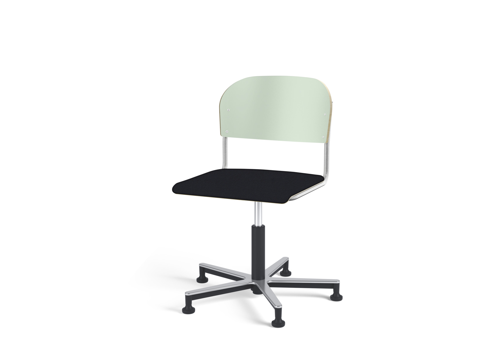 Stol Matte med gasfjeder til regulering af siddehøjden ved hjælp af et håndtag. Sæde og ryglæn i højtrykslaminat. Stel til sæde og ryglæn i pulverlakeret stål, sort. Kryds i aluminium med glidesko. Som et tilvalg kan sædet betrækkes med Xtreme Padang YS145 (100 % polyester).