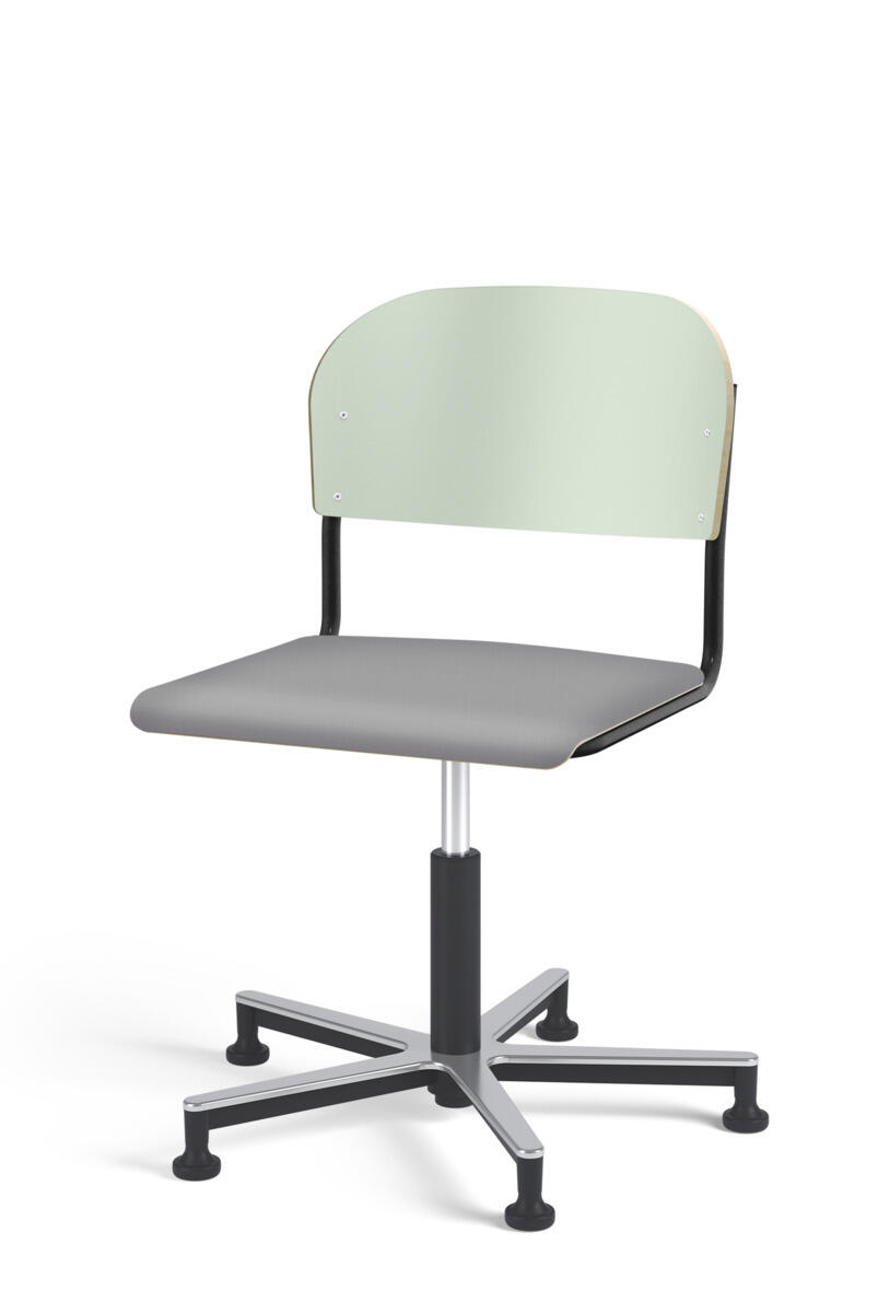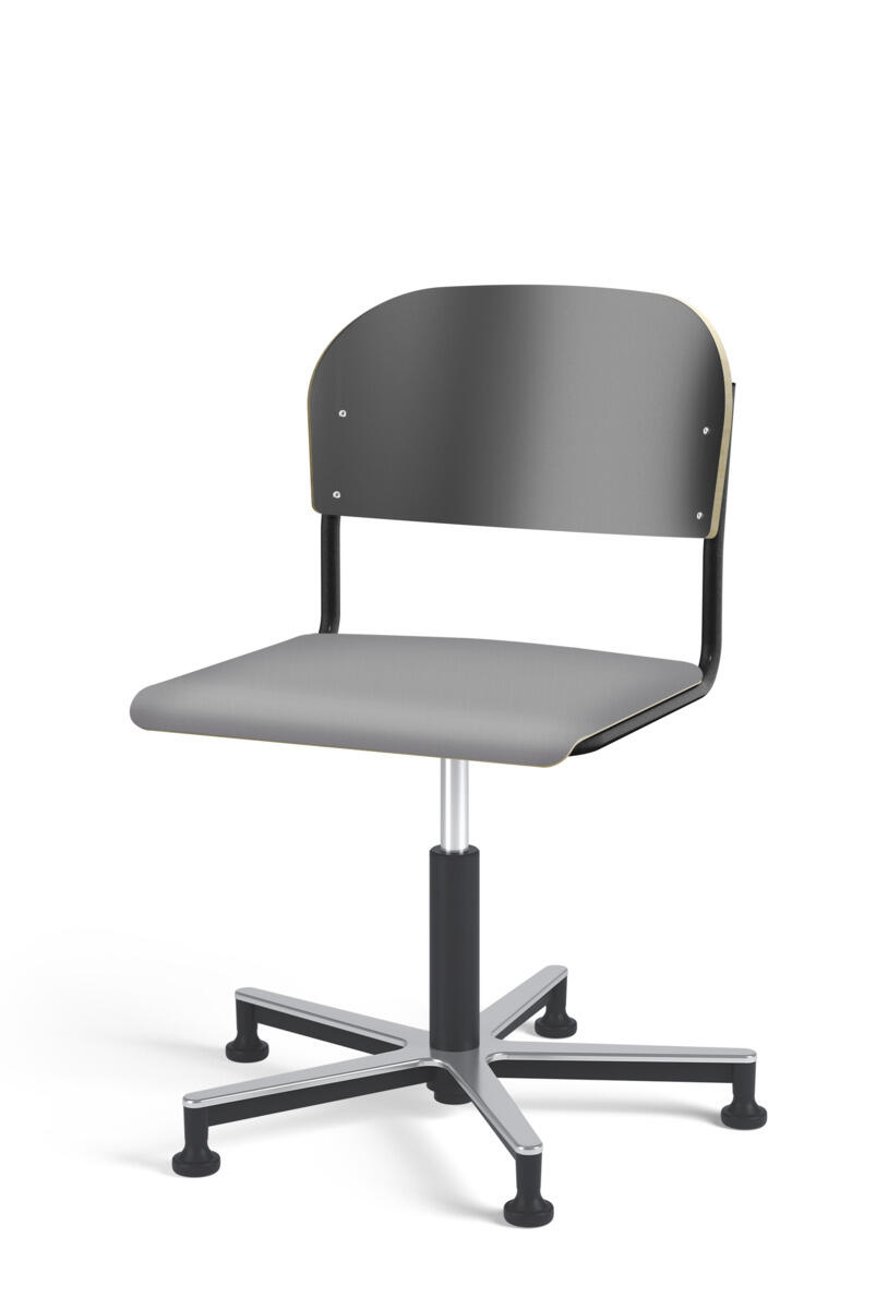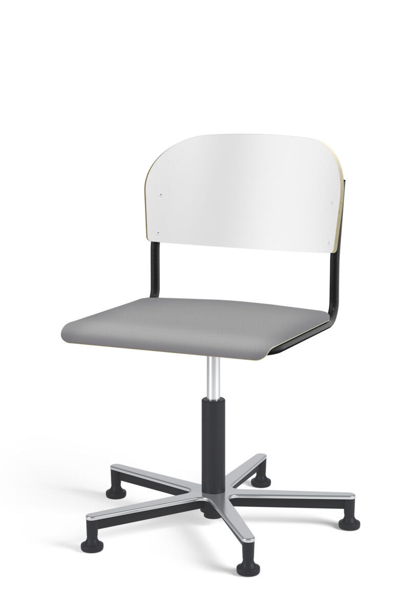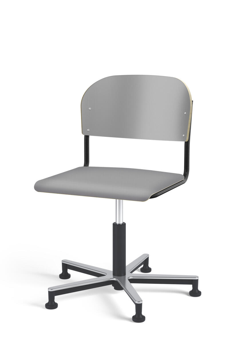 En af vores bestsellere. En klassiker som aldrig går af mode med sit enkle og tidløse design. Sæde og ryg i højtrykslaminat. Sølvlakeret stel, RAL 9006. Siddehøjde 38, 43, 46 eller 51 cm, siddebredde 36 cm, siddedybde 35 cm. Vægt 4,8 kg. Justerbart stel. Med lyddæmpende dupper under fødderne. Lyddæmpende filt med varenr. 35790, som kan fastgøres under sædet, kan bestilles separat.