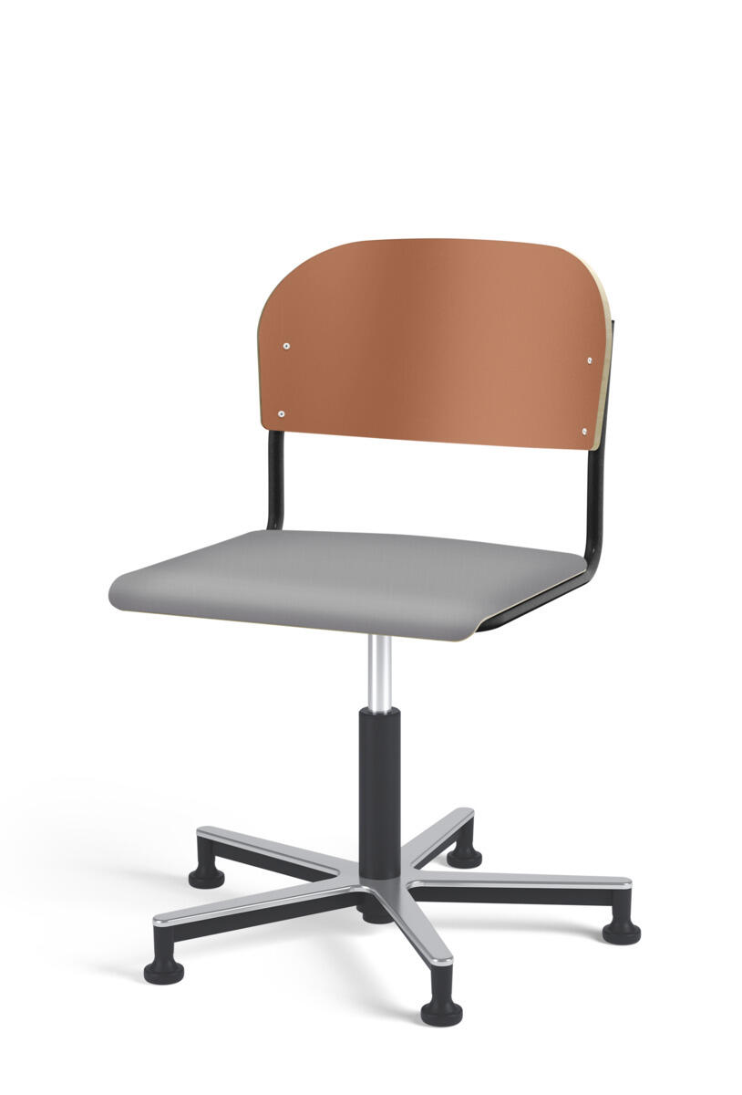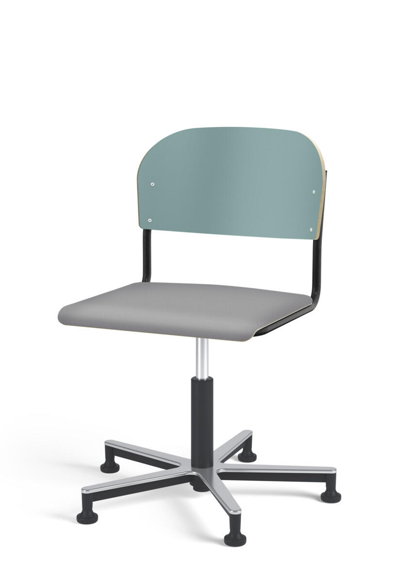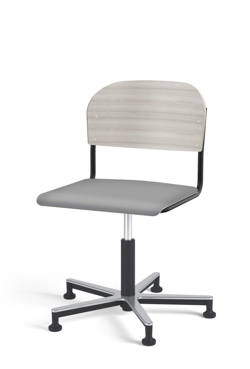Stol Matte med gasfjeder til regulering af siddehøjden ved hjælp af et håndtag. Sæde og ryglæn i højtrykslaminat. Stel til sæde og ryglæn i pulverlakeret stål, sølv. Kryds i aluminium med glidesko. Som et tilvalg kan sædet betrækkes med Xtreme Padang YS145 (100 % polyester).