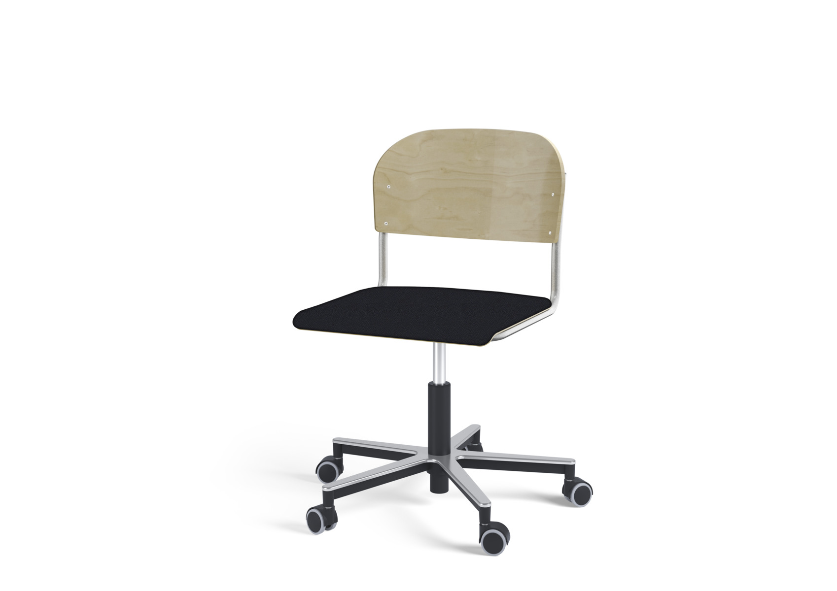 Matte stol med gasfjeder. Sæde og ryg i højtrykslaminat. Stel i pulverlakeret stål, sort. Kryds i aluminium med hjul. Som et tilvalg kan sædet betrækkes med Xtreme Padang YS145 (100% polyester).