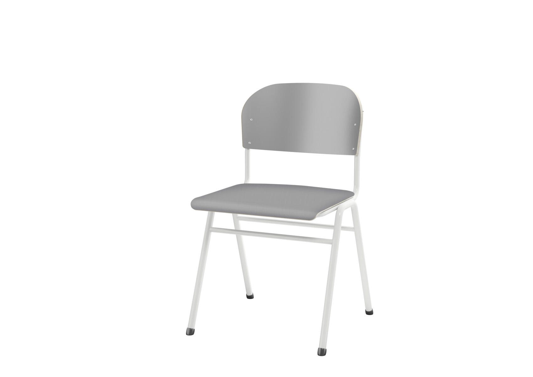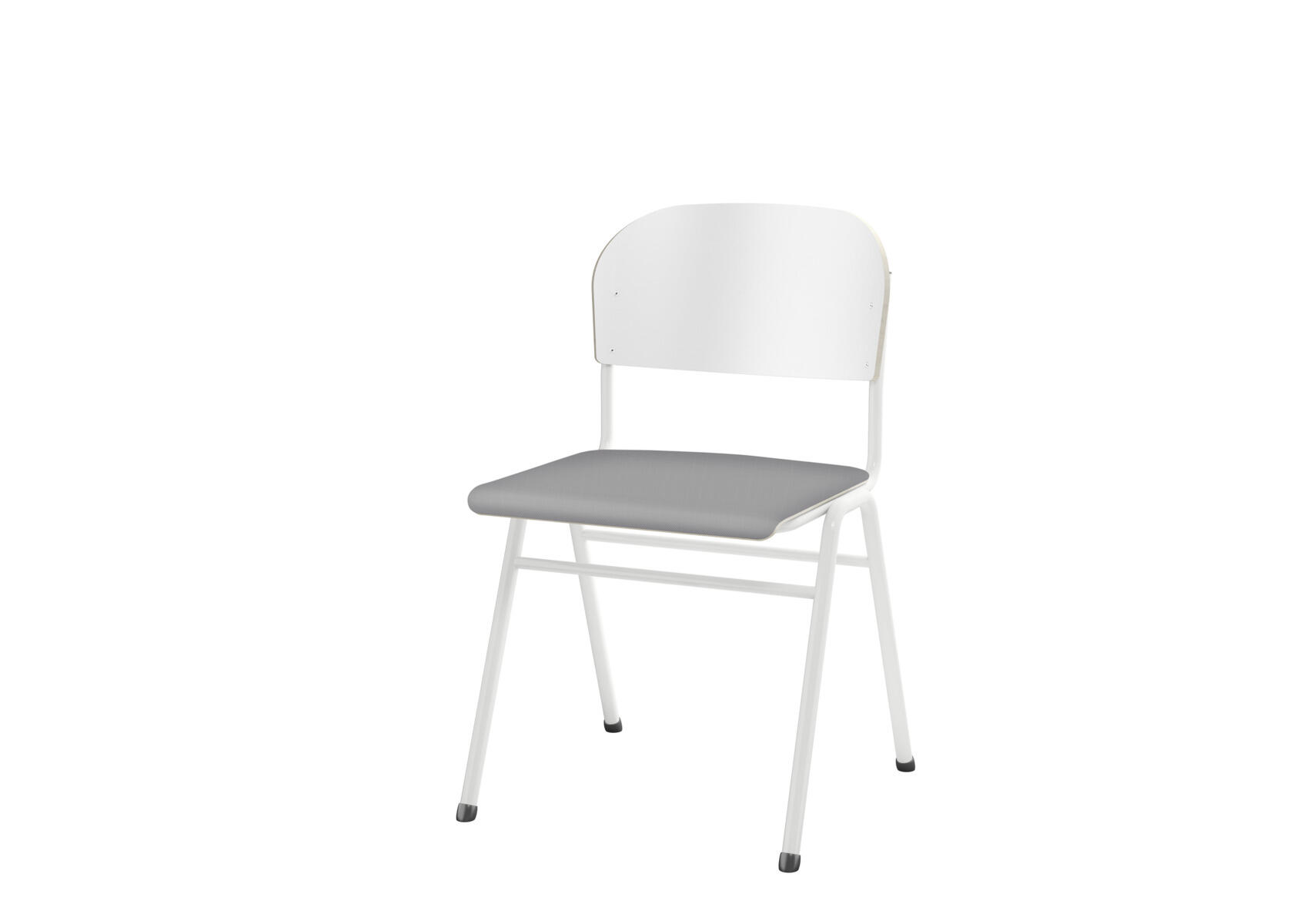 En af vores bestsellere. En klassiker som aldrig går af mode med sit enkle og tidløse design. Sæde og ryg i højtrykslaminat. Hvidlakeret stel, RAL 9003. Siddehøjde 44 cm, siddebredde 42 cm, siddedybde 39 cm. Vægt 4,6 kg. Kan stables (maks. 4 stk. i højden). Med lyddæmpende dupper under fødderne. Lyddæmpende filt med varenr. 35719, som kan fastgøres under sædet, kan bestilles separat.