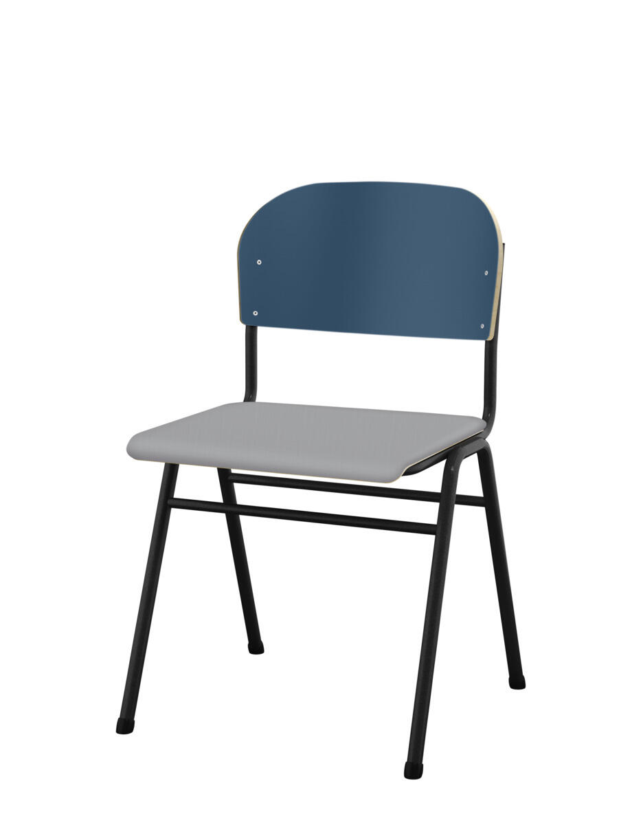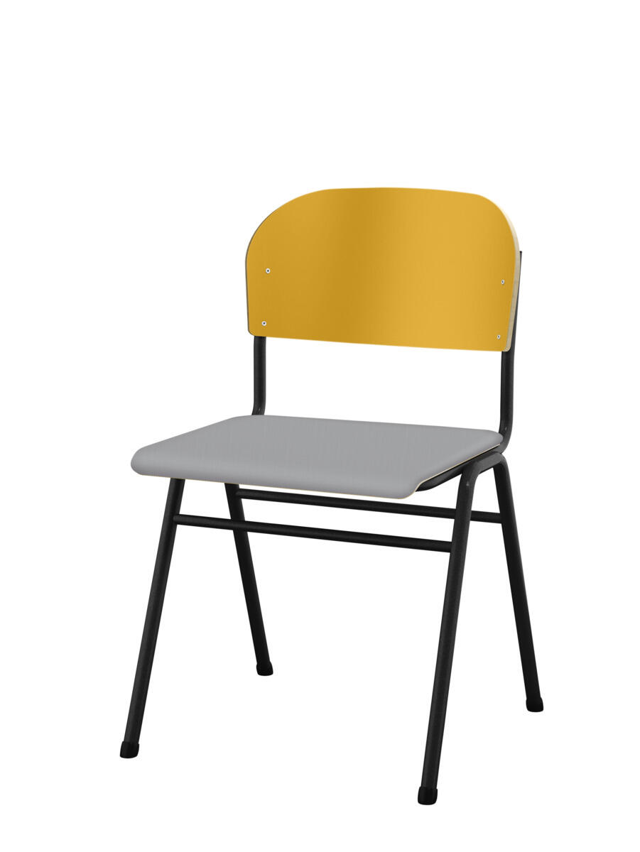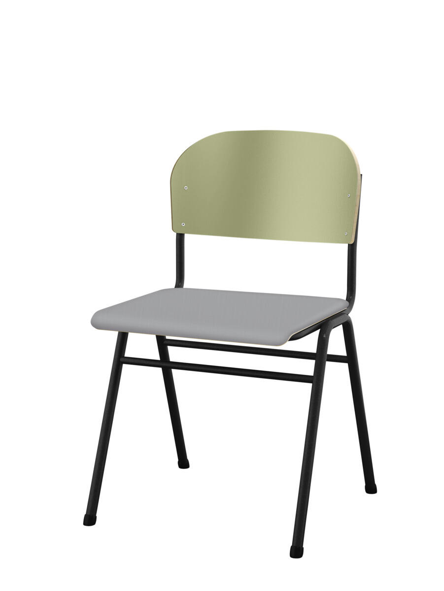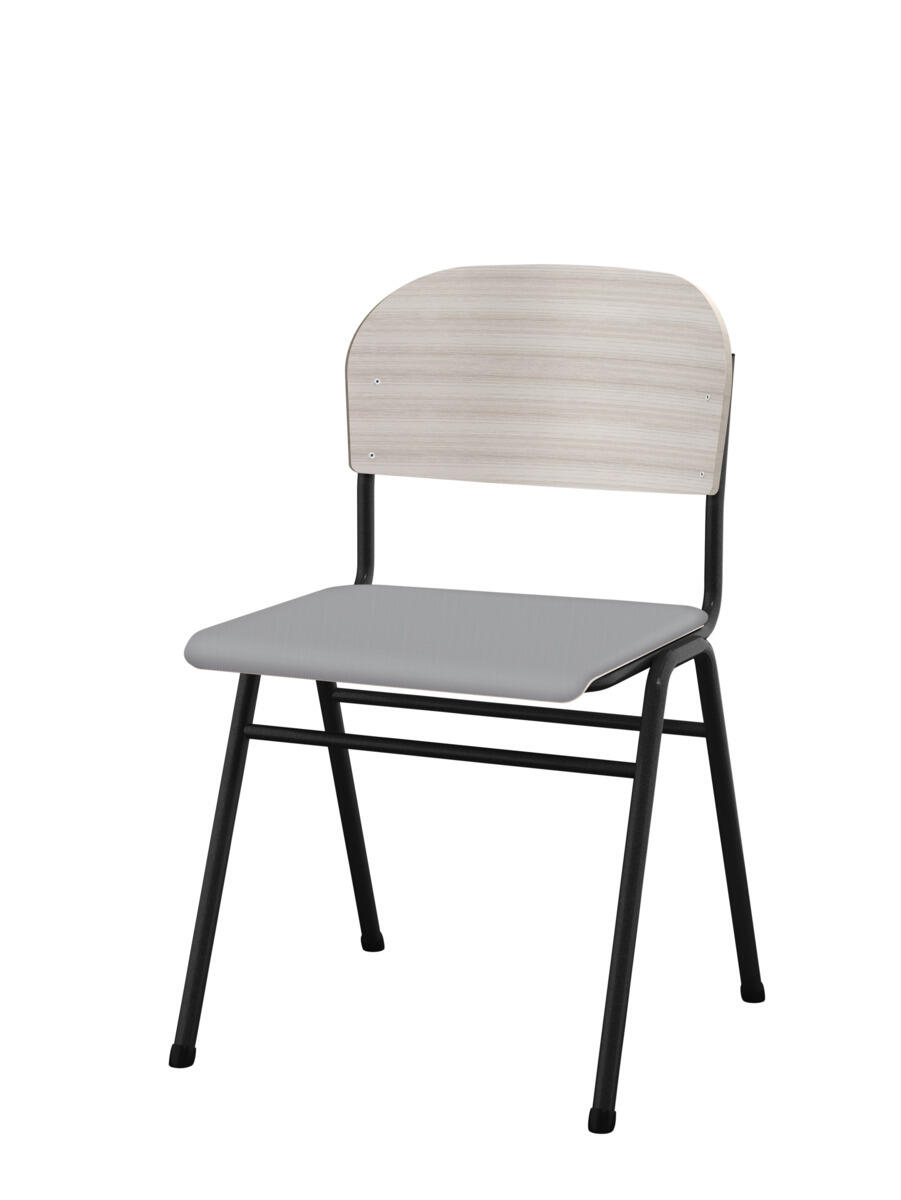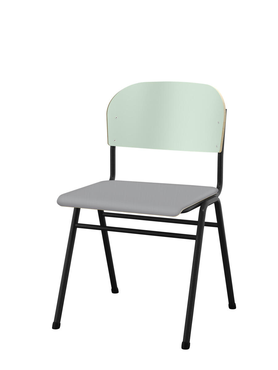 Kan stables. Lyddæmpende dupper. Justerbar fodstøtte. Siddehøjde 54 cm. Sædemål: B36xD35 cm. Vægt 5,3 kg. Sæde og ryg i højtrykslaminat. Sortlakeret stel RAL 9005.