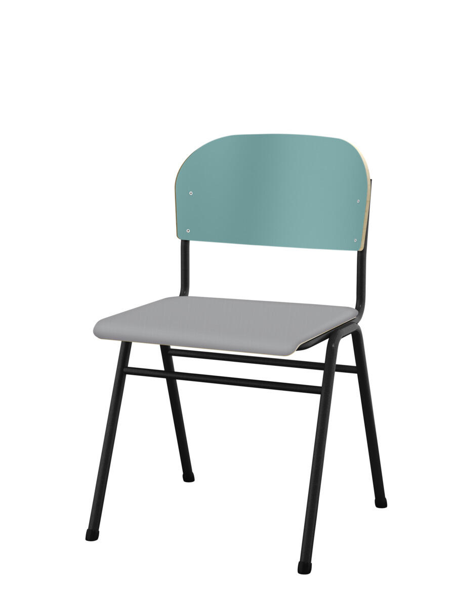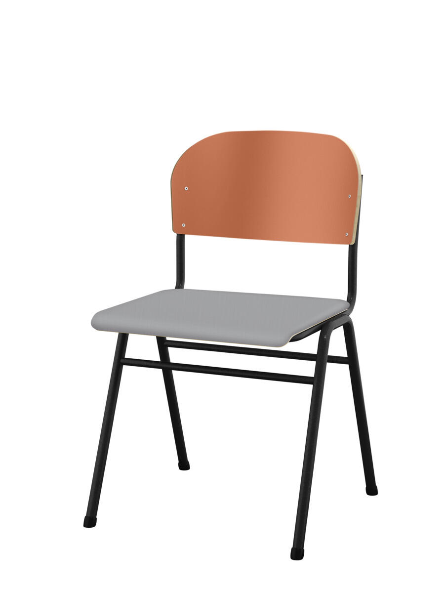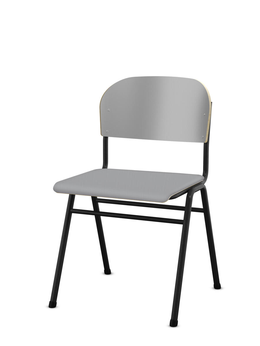 En af vores bestsellere. En klassiker som aldrig går af mode med sit enkle og tidløse design. Sæde og ryg i højtrykslaminat. Sølvlakeret stel, RAL 9006. Siddehøjde 45, siddebredde 42 cm, siddedybde 39 cm. Vægt 5,8 kg. Kan stables (maks. 4 stk. i højden) og hænges på bord. Med lyddæmpende dupper under fødderne. Lyddæmpende filt med varenr. 35719, som kan fastgøres under sædet, kan bestilles separat.