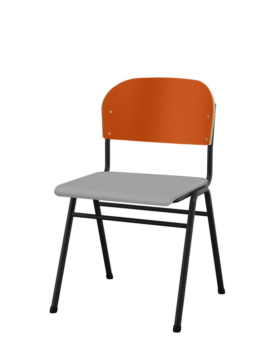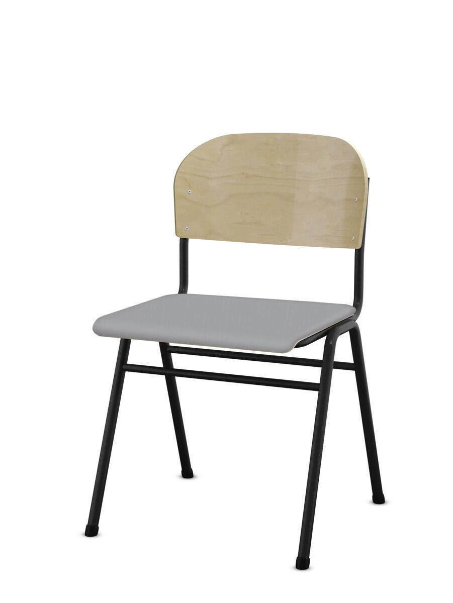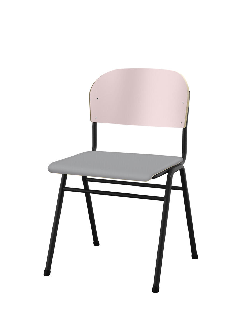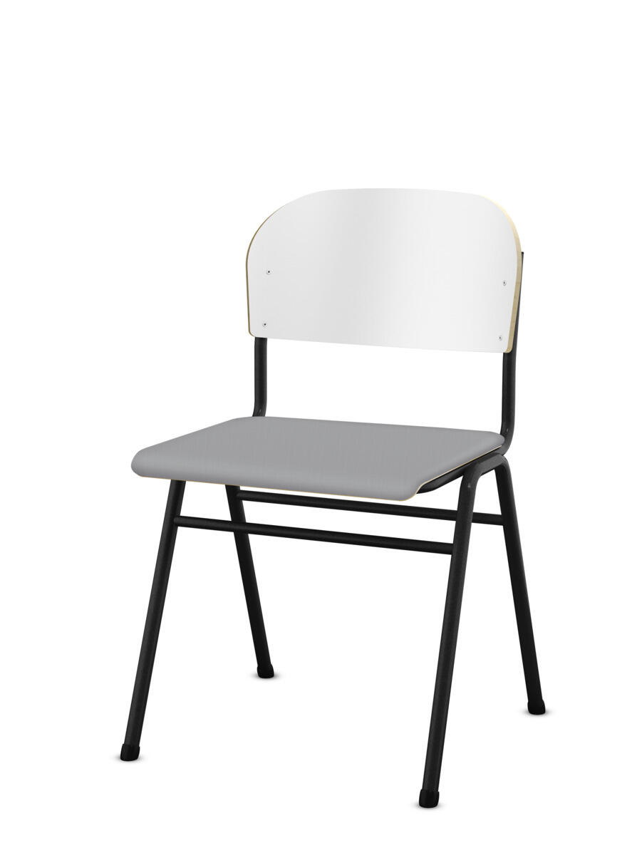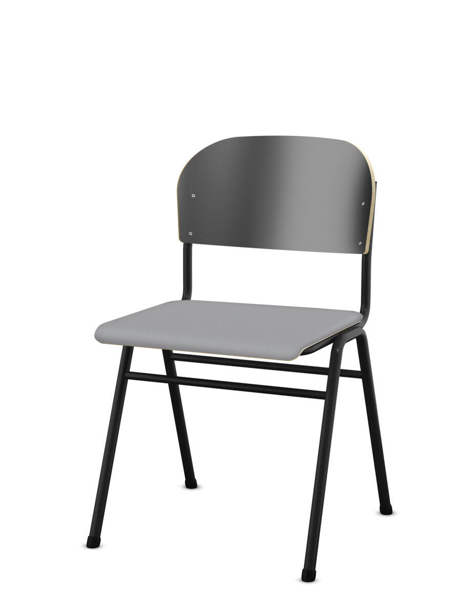Kan stables. Lyddæmpende dupper. Justerbar fodstøtte. Siddehøjde 54 cm. Sædemål: B42xD39 cm. Vægt 5,3 kg. Sæde og ryg i højtrykslaminat. Sortlakeret stel RAL 9005.