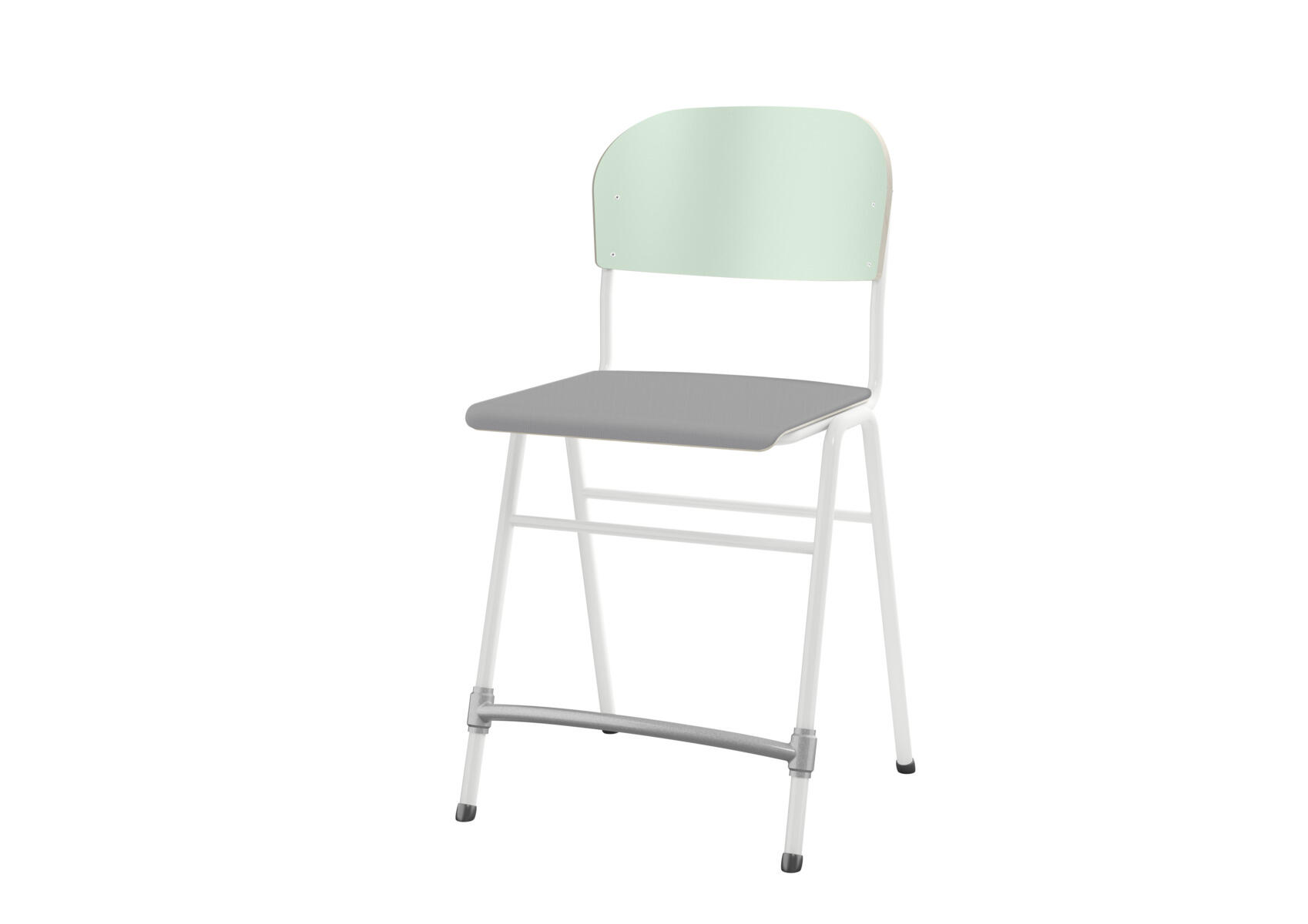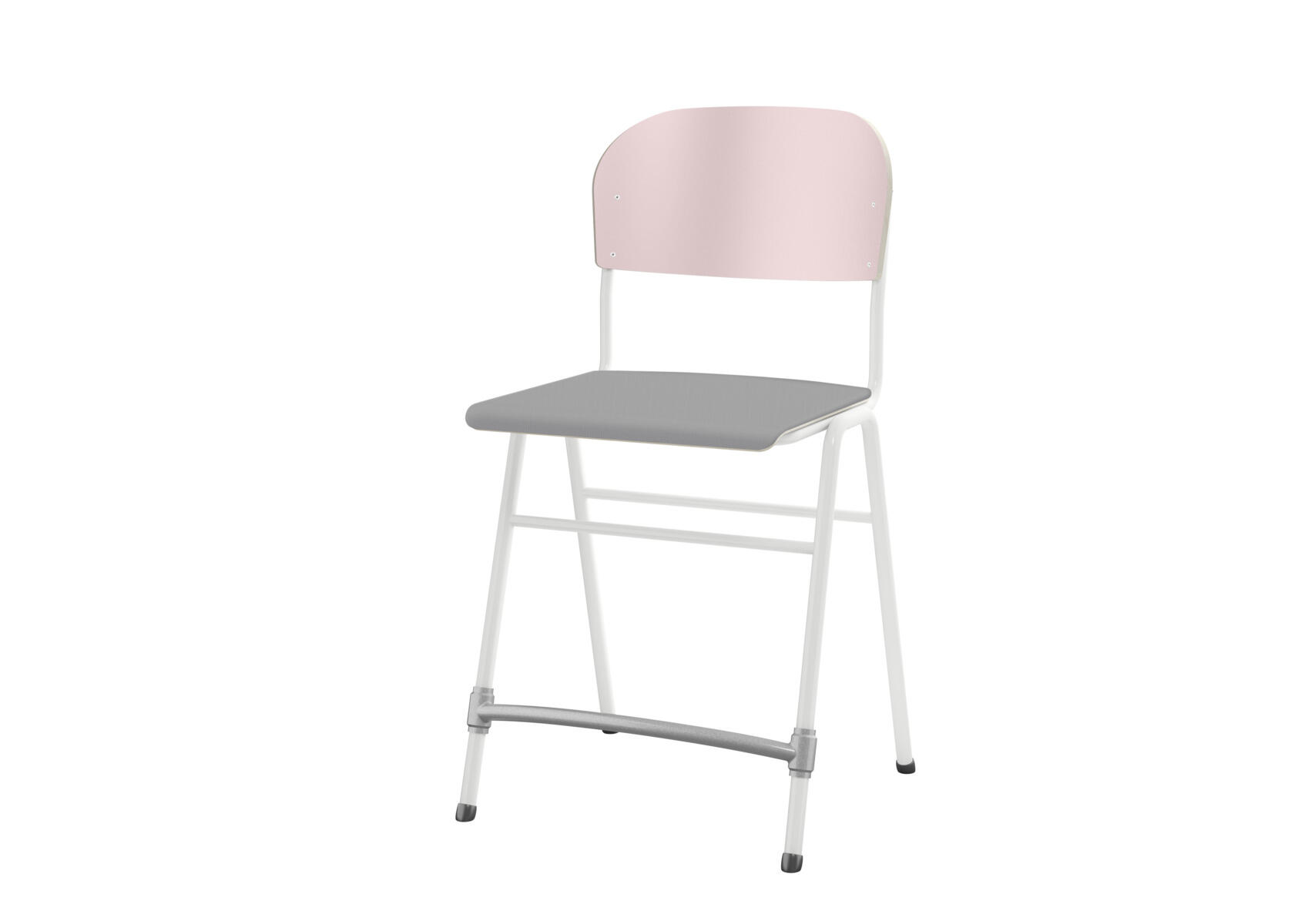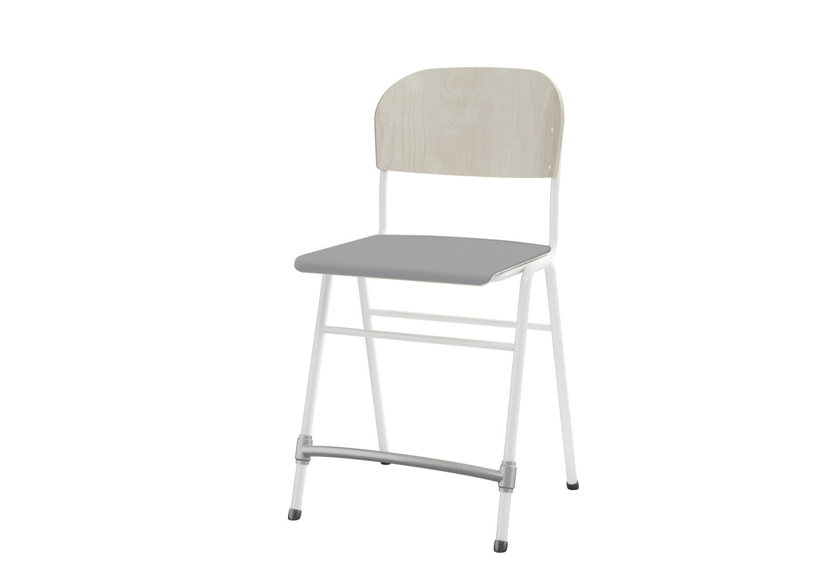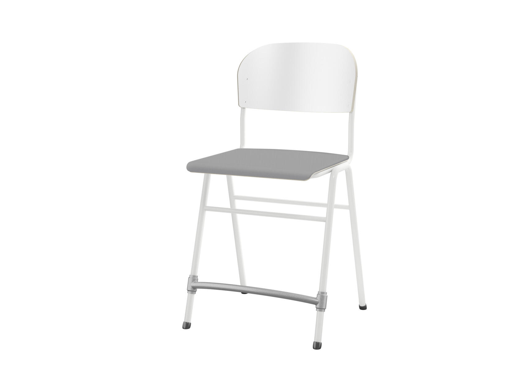 En af vores bestsellere. En klassiker som aldrig går af mode med sit enkle og tidløse design. Sæde og ryg i højtrykslaminat. Hvidlakeret stel, RAL 9003. Siddehøjde 54 cm, siddebredde 42 cm, siddedybde 39 cm. Vægt 5,3 kg. Justerbar fodstøtte. Kan stables (maks. 4 stk. i højden). Med lyddæmpende dupper under fødderne. Lyddæmpende filt med varenr. 35719, som kan fastgøres under sædet, kan bestilles separat.