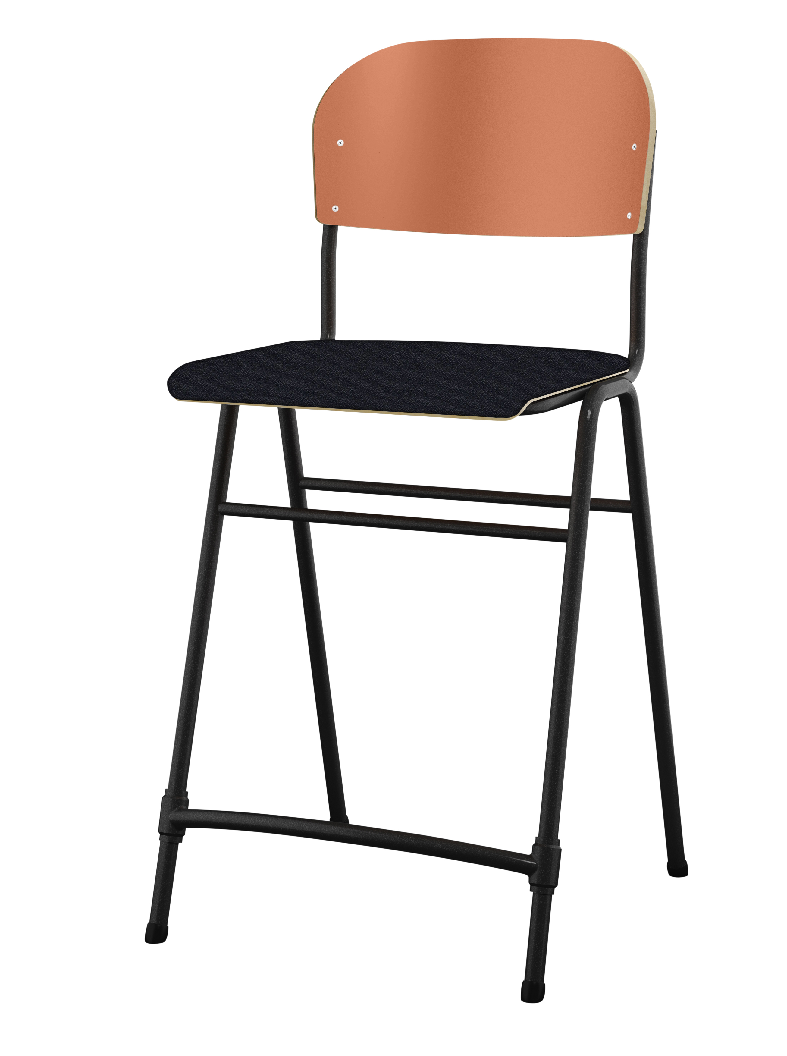 Kan stables. Lyddæmpende dupper. Justerbar fodstøtte. Siddehøjde 65 cm. Sædemål: B42xD39 cm. Vægt 5,3 kg. Sæde og ryg i højtrykslaminat. Sortlakeret stel RAL 9005.