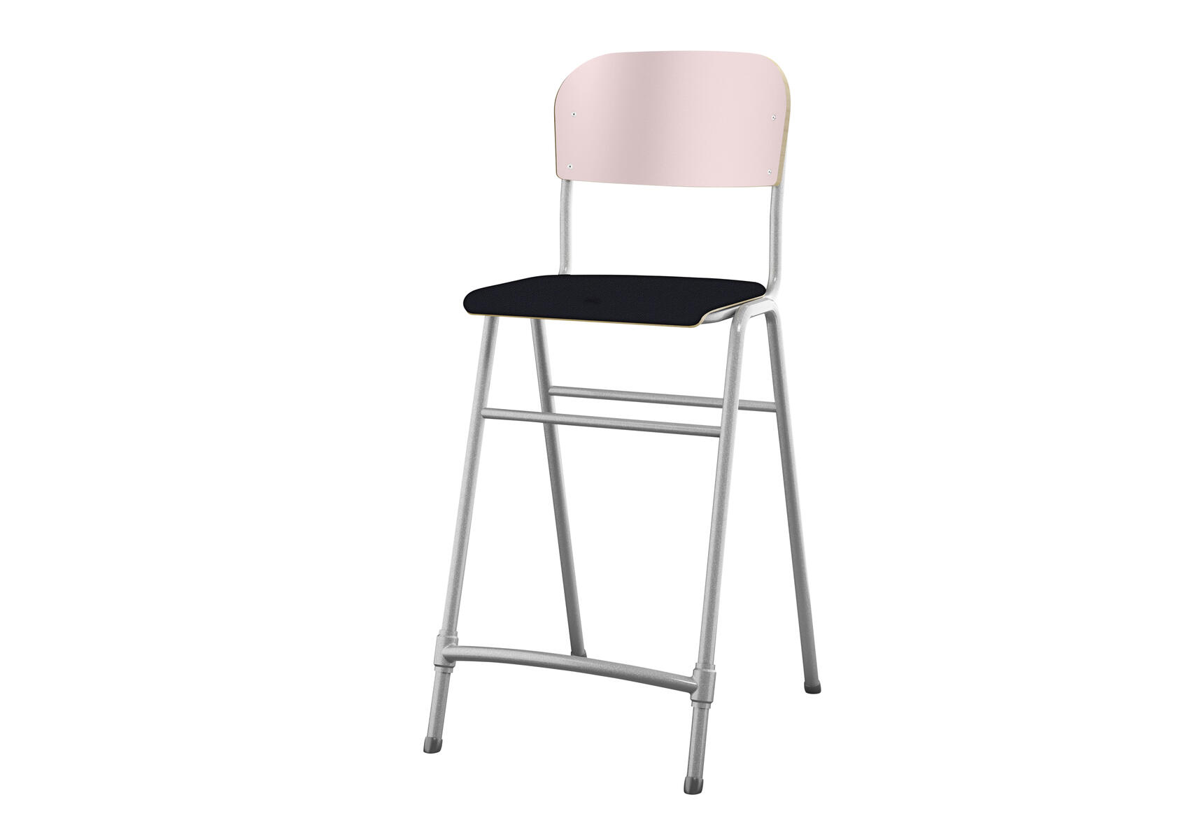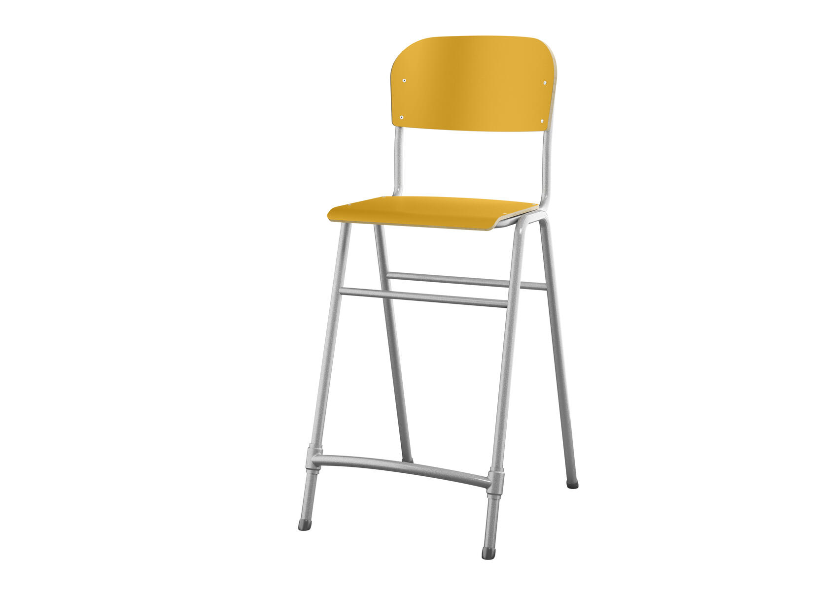 En af vores bestsellere. En klassiker som aldrig går af mode med sit enkle og tidløse design. Sæde og ryg i højtrykslaminat. Sølvlakeret stel, RAL 9006. Siddehøjde 65 cm, siddebredde 36 cm, siddedybde 35 cm. Vægt 5,3 kg. Justerbar fodstøtte. Kan stables (maks. 4 stk. i højden). Med lyddæmpende dupper under fødderne. Lyddæmpende filt med varenr. 35790, som kan fastgøres under sædet, kan bestilles separat.
