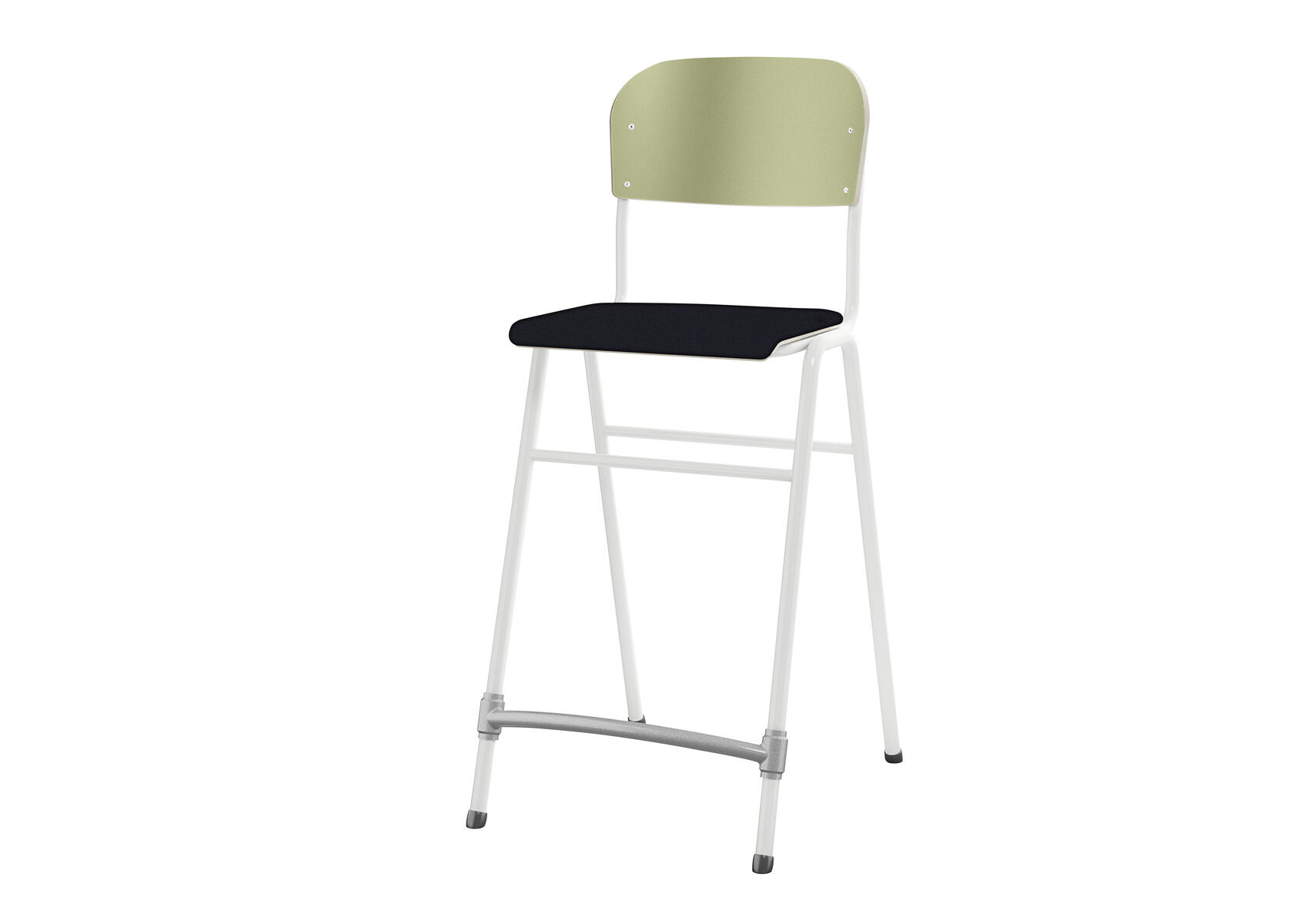 Kan stables, maks. 4 stole i højden. Sæde og ryg i højtrykslaminat. Kan hænges på bord. Justerbar i højderne 45, 51, 57 og 63 cm. Med fodstøtte. OBS! Øvre del af stolen skal altid have 2 huller i nedre rørdel.