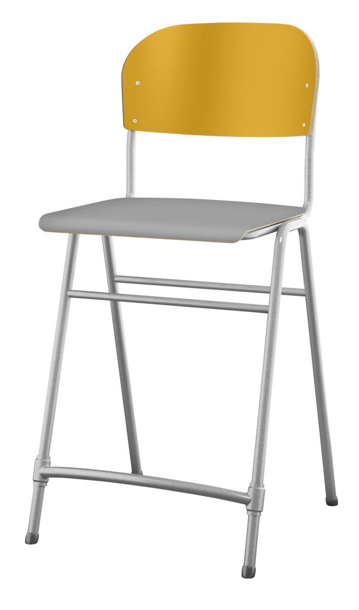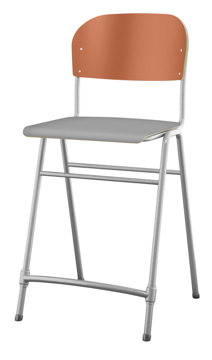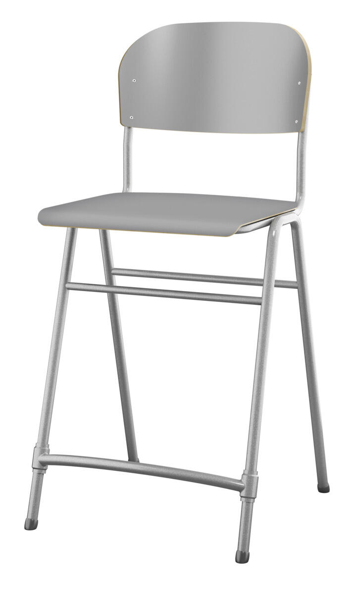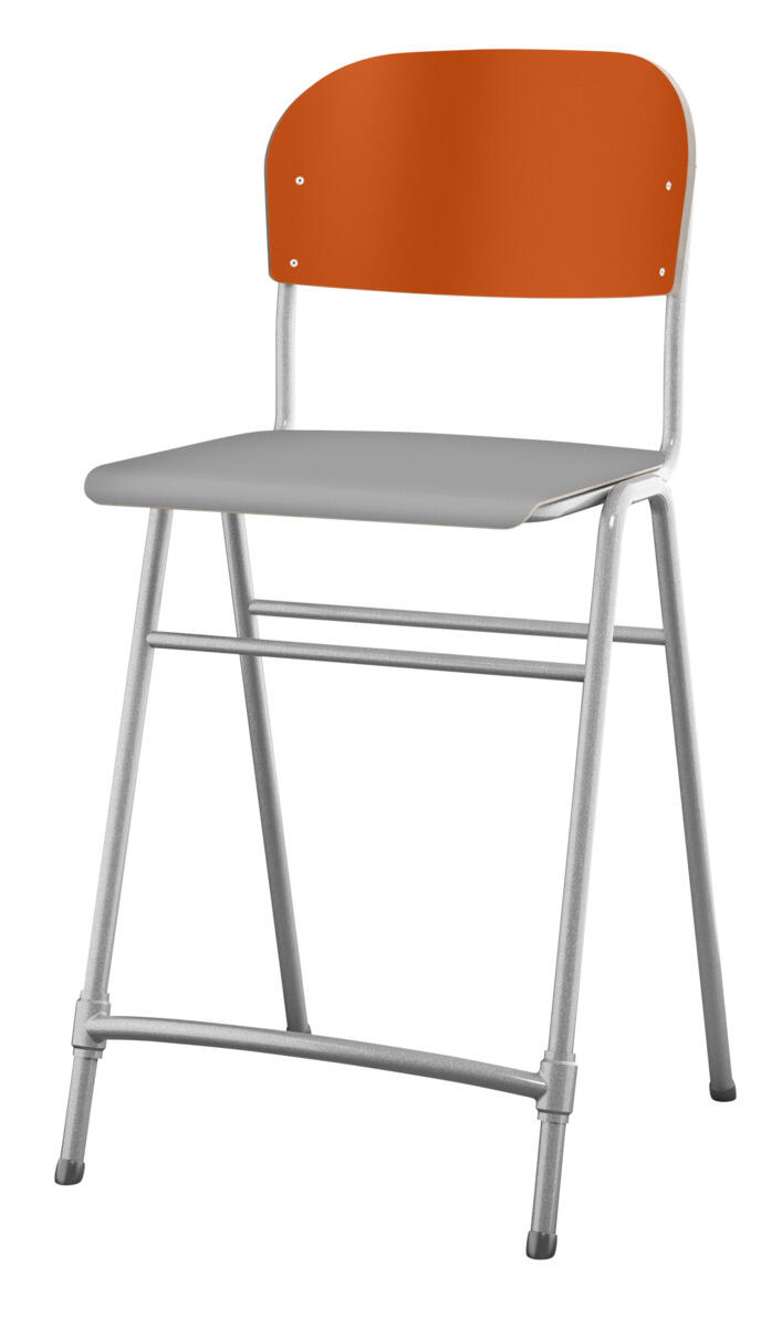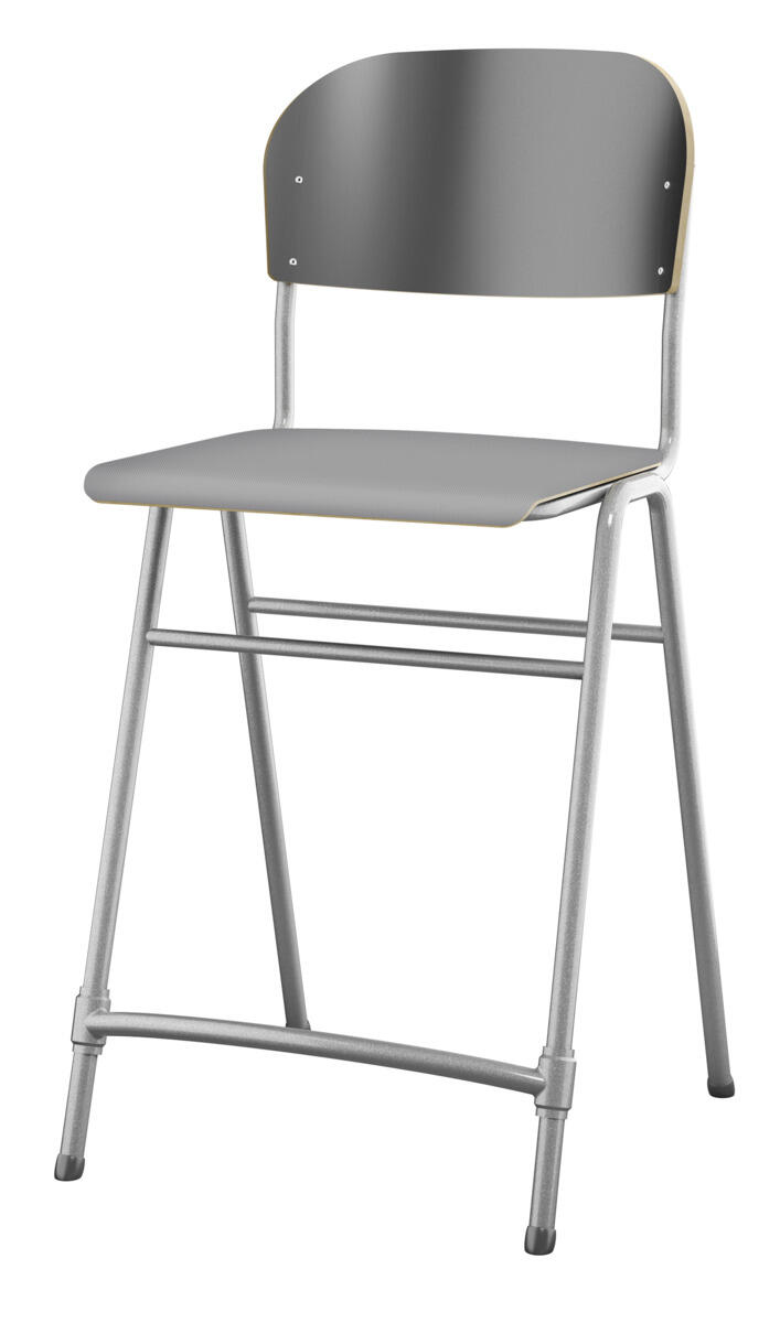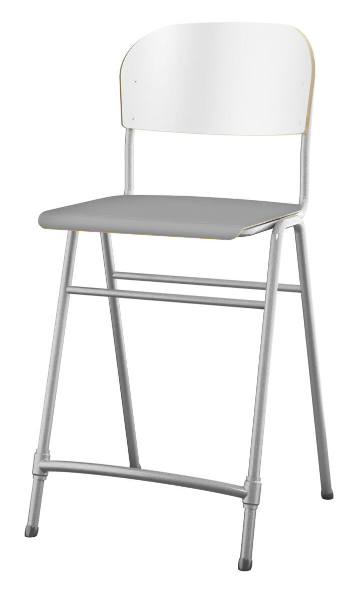 En af vores bestsellere. En klassiker som aldrig går af mode med sit enkle og tidløse design. Sæde og ryg i højtrykslaminat. Sølvlakeret stel, RAL 9006. Siddehøjde 65 cm, siddebredde 42 cm, siddedybde 39 cm. Vægt 5,3 kg. Justerbar fodstøtte. Kan stables (maks. 4 stk. i højden). Med lyddæmpende dupper under fødderne. Lyddæmpende filt med varenr. 35719, som kan fastgøres under sædet, kan bestilles separat.