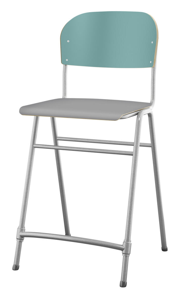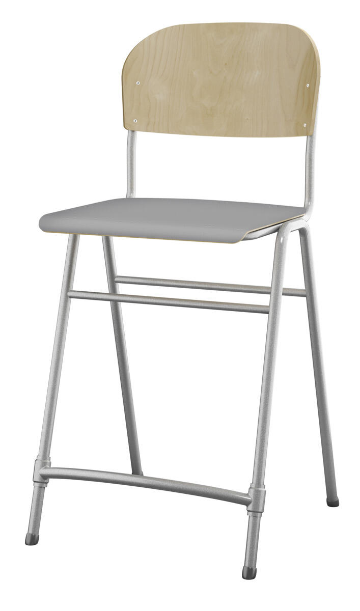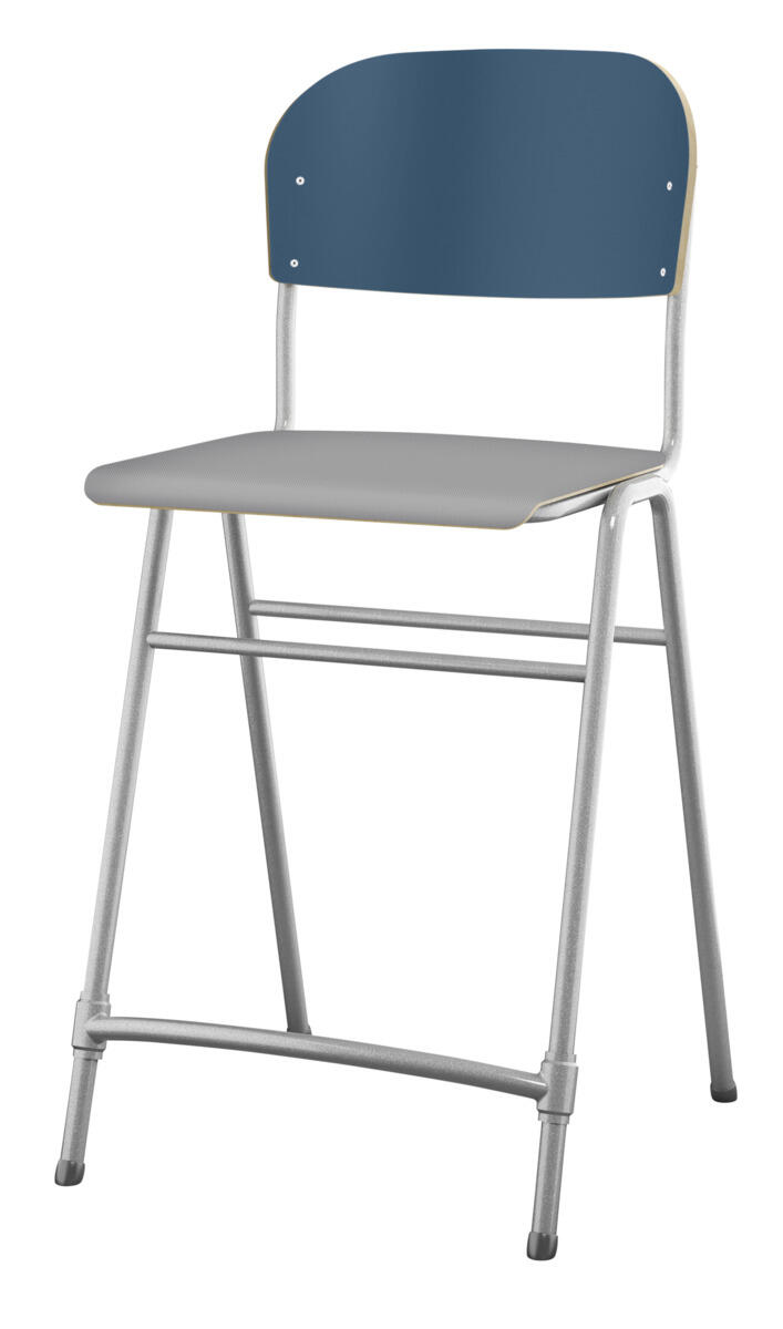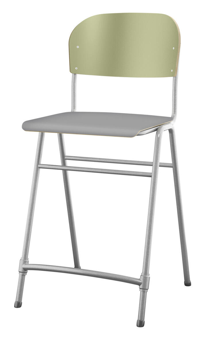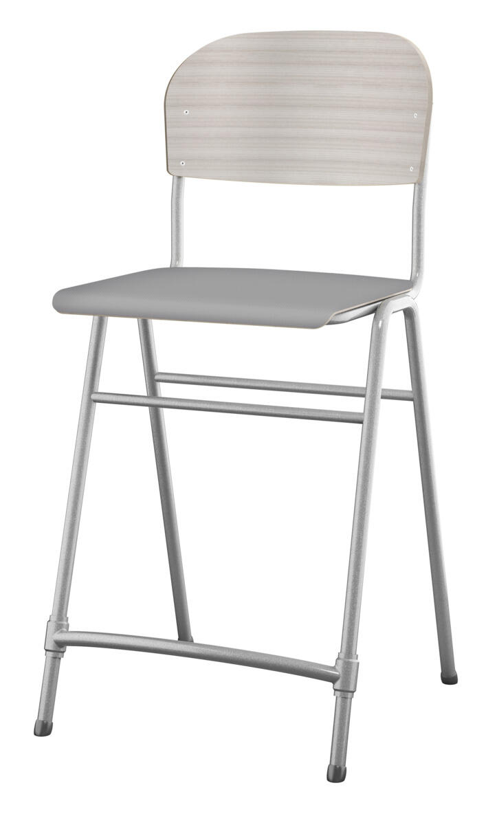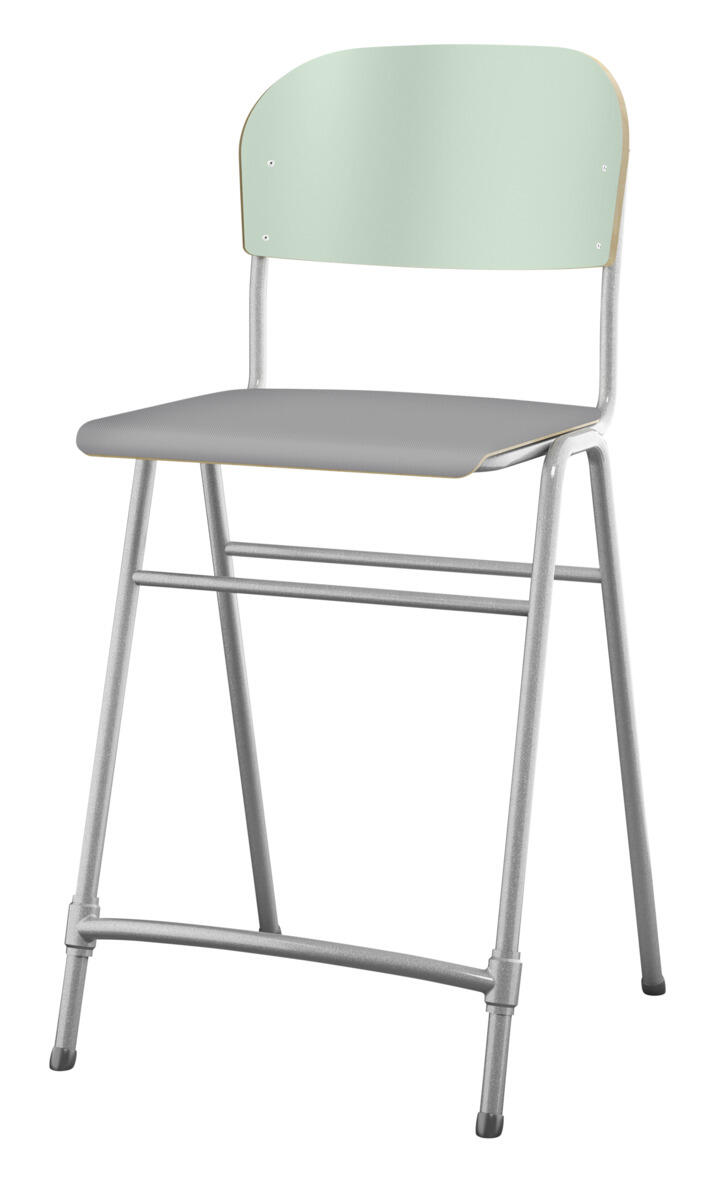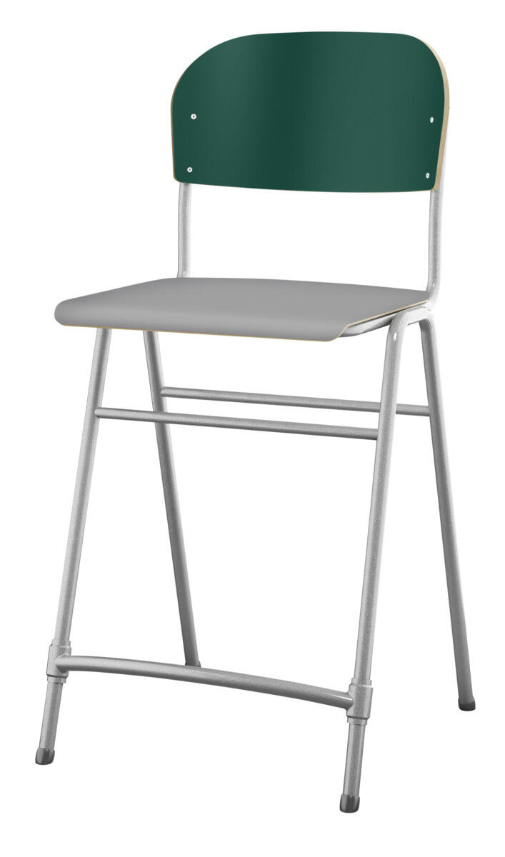 En af vores bestsellere. En klassiker som aldrig går af mode med sit enkle og tidløse design. Sæde og ryg i højtrykslaminat. Sølvlakeret stel, RAL 9006. Siddehøjde 65 cm, siddebredde 42 cm, siddedybde 39 cm. Vægt 5,3 kg. Justerbar fodstøtte. Kan stables (maks. 4 stk. i højden). Med lyddæmpende dupper under fødderne. Lyddæmpende filt med varenr. 35719, som kan fastgøres under sædet, kan bestilles separat.