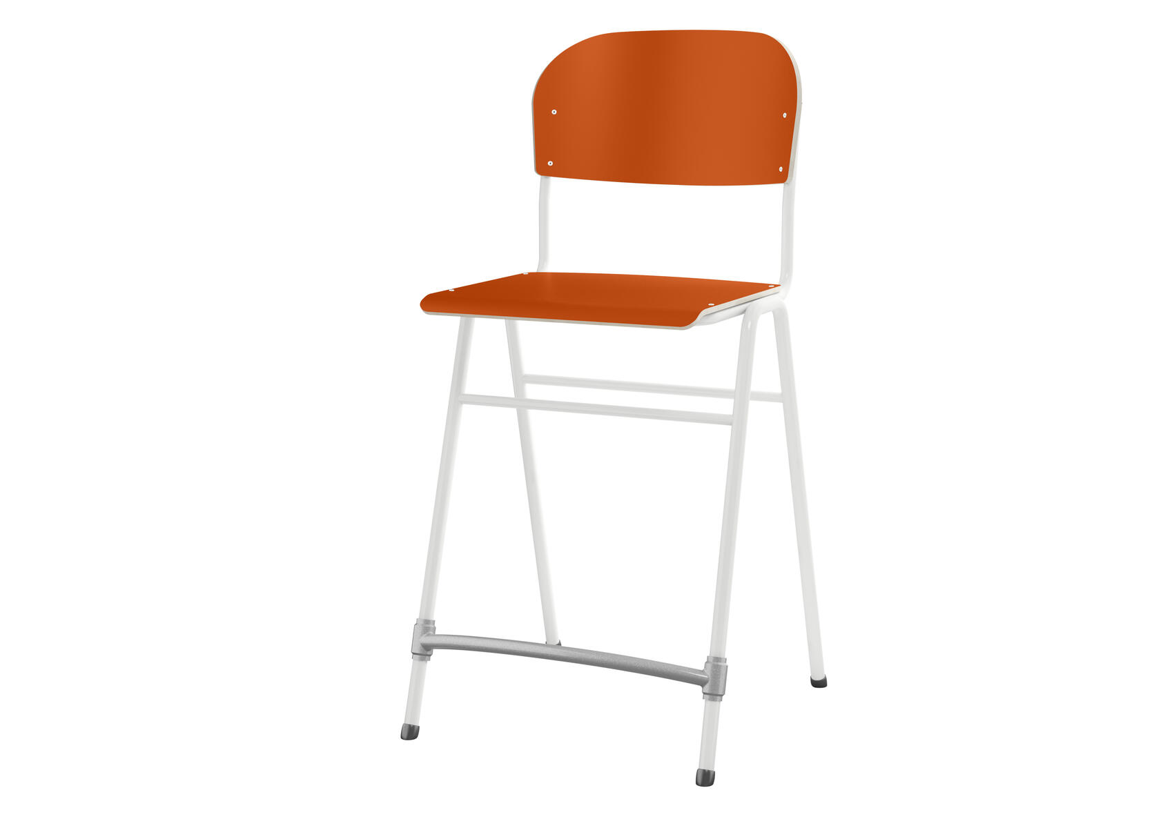 En af vores bestsellere. En klassiker som aldrig går af mode med sit enkle og tidløse design. Sæde og ryg i højtrykslaminat. Hvidlakeret stel, RAL 9003. Siddehøjde 65 cm, siddebredde 42 cm, siddedybde 39 cm. Vægt 5,3 kg. Justerbar fodstøtte. Kan stables (maks. 4 stk. i højden). Med lyddæmpende dupper under fødderne. Lyddæmpende filt med varenr. 35719, som kan fastgøres under sædet, kan bestilles separat.