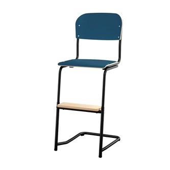 Kan stables (maks. 4 stole). Lyddæmpende dupper. Kan hænges op på et bord. Justerbar fodstøtte i 3 faste højder. Siddehøjde 63 cm. Sædemål: B36xD35 cm. Totaldybde på stel 54 cm. Vægt 6,8 kg. Sæde og ryg i højtrykslaminat. Sortlakeret stel RAL 9005.
