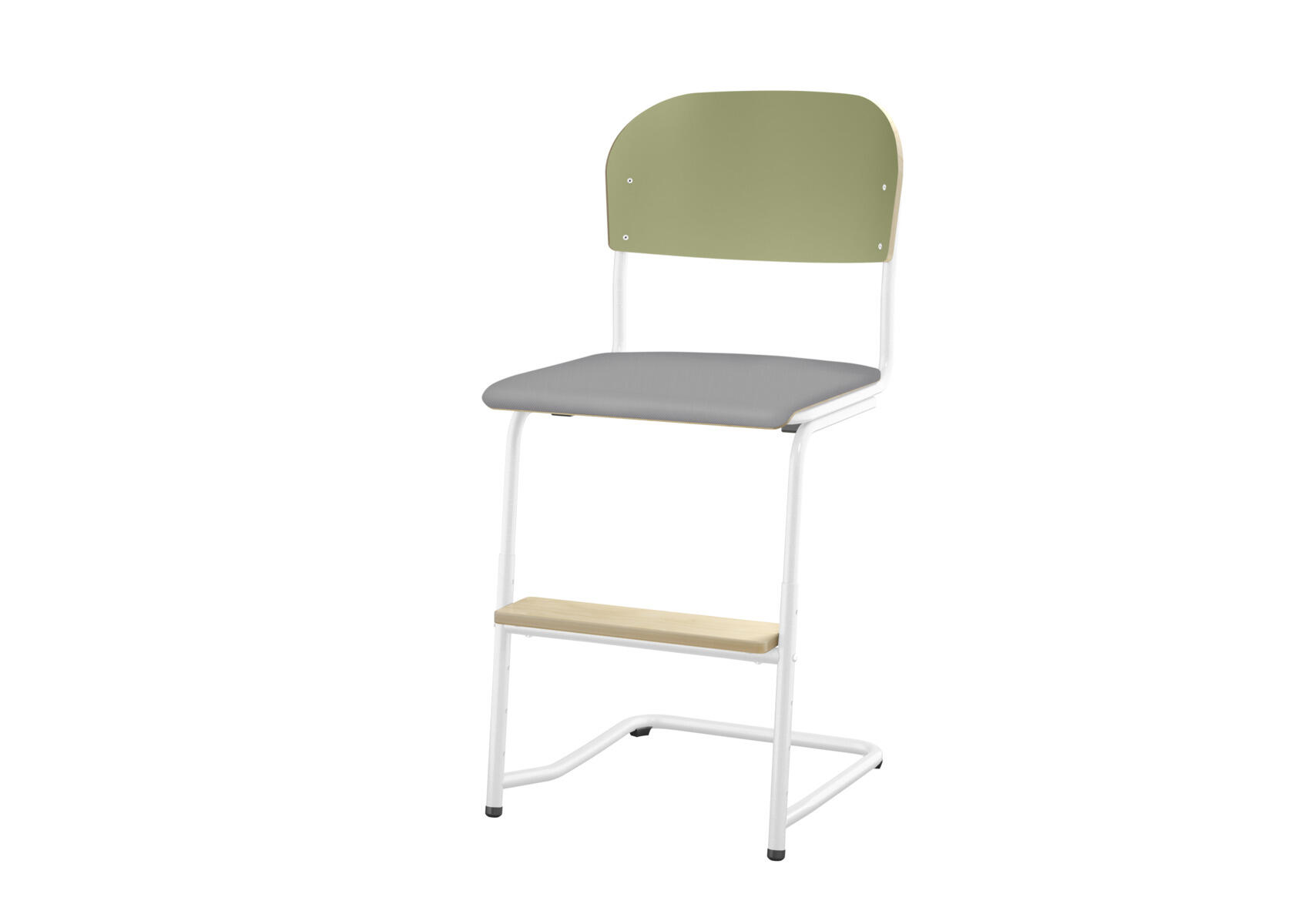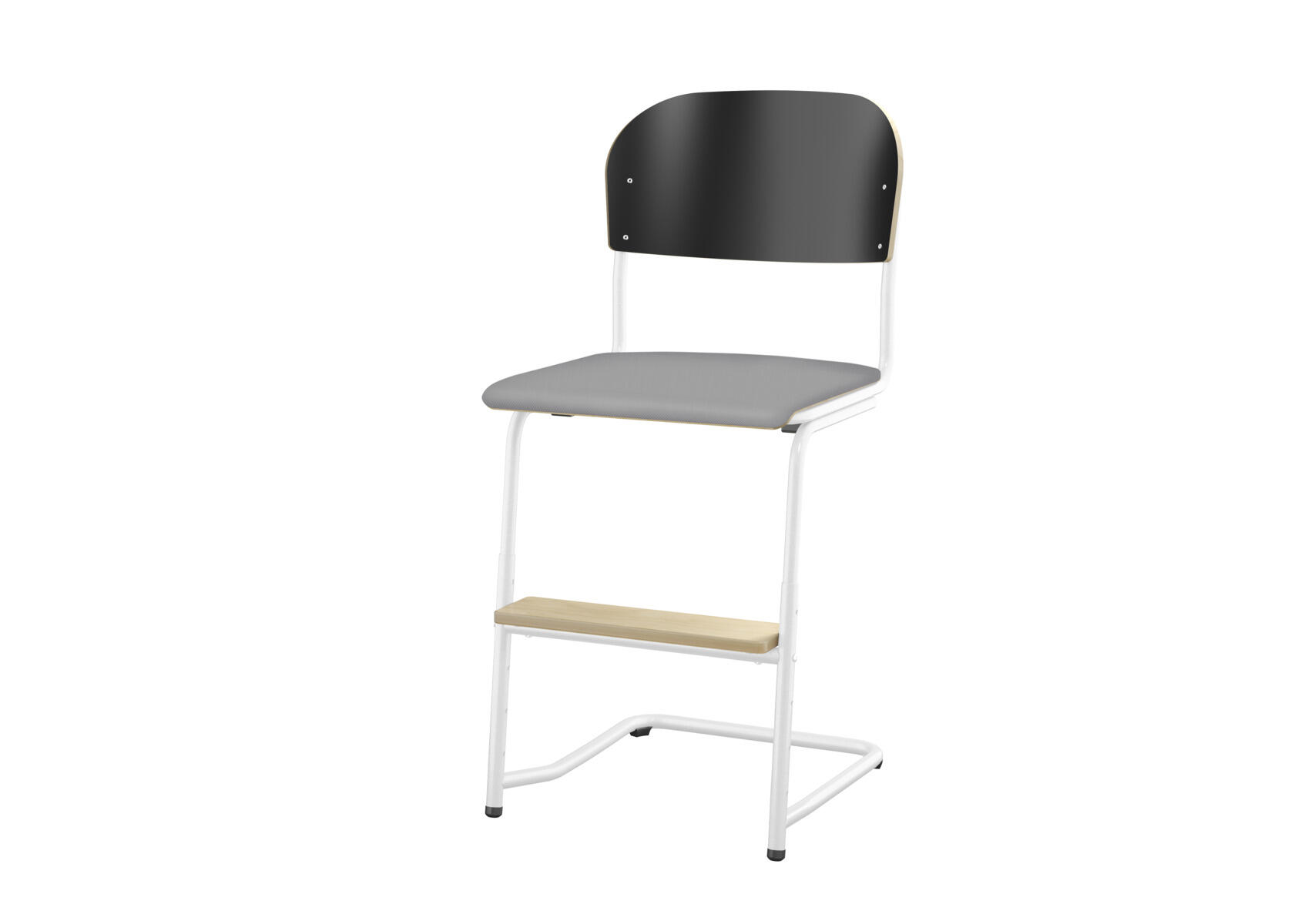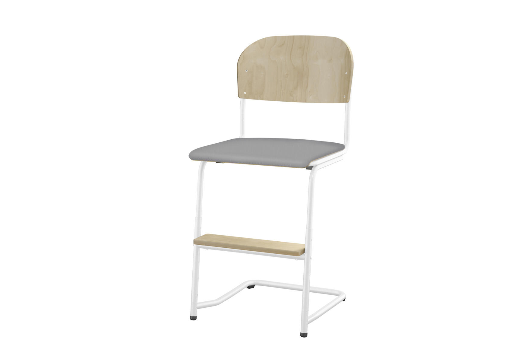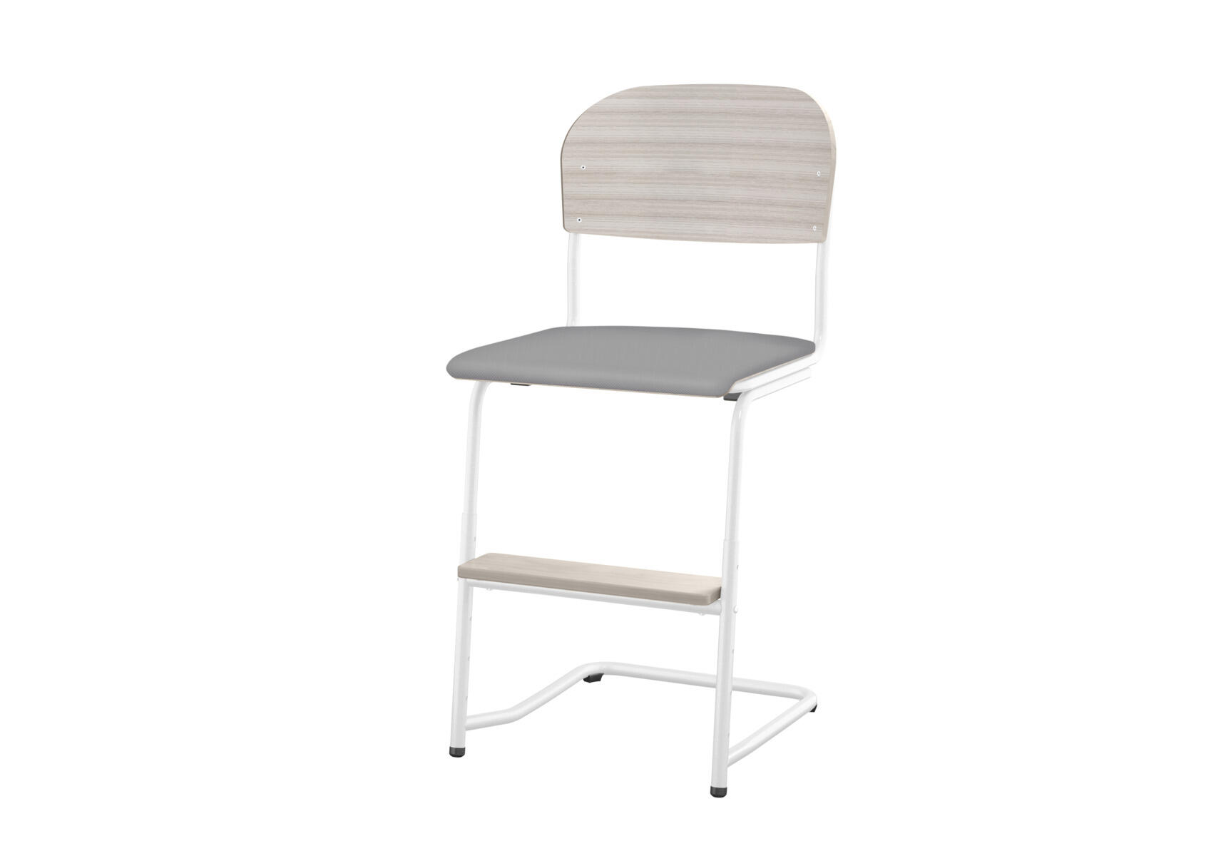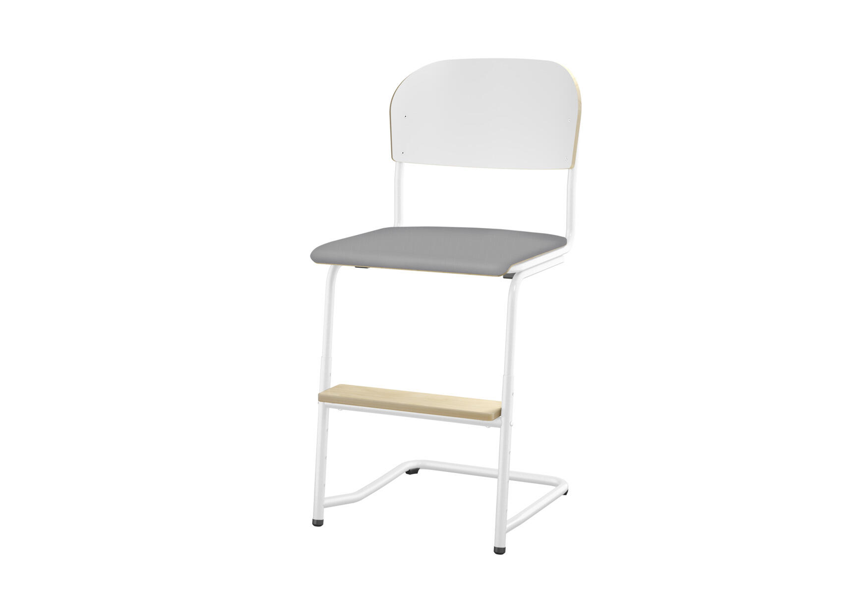 En af vores bestsellere. En klassiker som aldrig går af mode med sit enkle og tidløse design. Sæde og ryg i højtrykslaminat. Hvidlakeret stel, RAL 9003. Siddehøjde 50 cm, siddebredde 36 cm, siddedybde 35 cm. Vægt 4,6 kg. Justerbar fodstøtte i 3 faste højder. Kan stables (maks. 4 stk. i højden) og hænges på bord. Med lyddæmpende dupper under fødderne. Lyddæmpende filt med varenr. 35790, som kan fastgøres under sædet, kan bestilles separat.