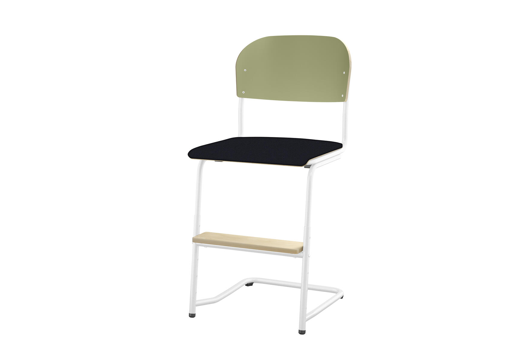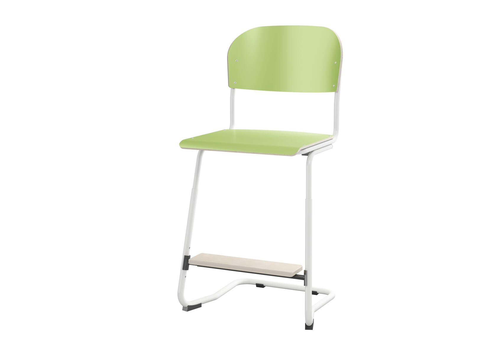 En af vores bestsellere. En klassiker som aldrig går af mode med sit enkle og tidløse design. Sæde og ryg i højtrykslaminat. Hvidlakeret stel, RAL 9003. Siddehøjde 50 cm, siddebredde 36 cm, siddedybde 35 cm. Vægt 4,6 kg. Justerbar fodstøtte i 3 faste højder. Kan stables (maks. 4 stk. i højden) og hænges på bord. Med lyddæmpende dupper under fødderne. Lyddæmpende filt med varenr. 35790, som kan fastgøres under sædet, kan bestilles separat.