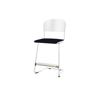 Kan stables (maks. 4 stole). Lyddæmpende dupper. Kan hænges op på et bord. Justerbar fodstøtte i 3 faste højder. Siddehøjde 63 cm. Sædemål: B36xD35 cm. Totaldybde på stel 54 cm. Vægt 6,8 kg. Sæde og ryg i højtrykslaminat. Sortlakeret stel RAL 9005.