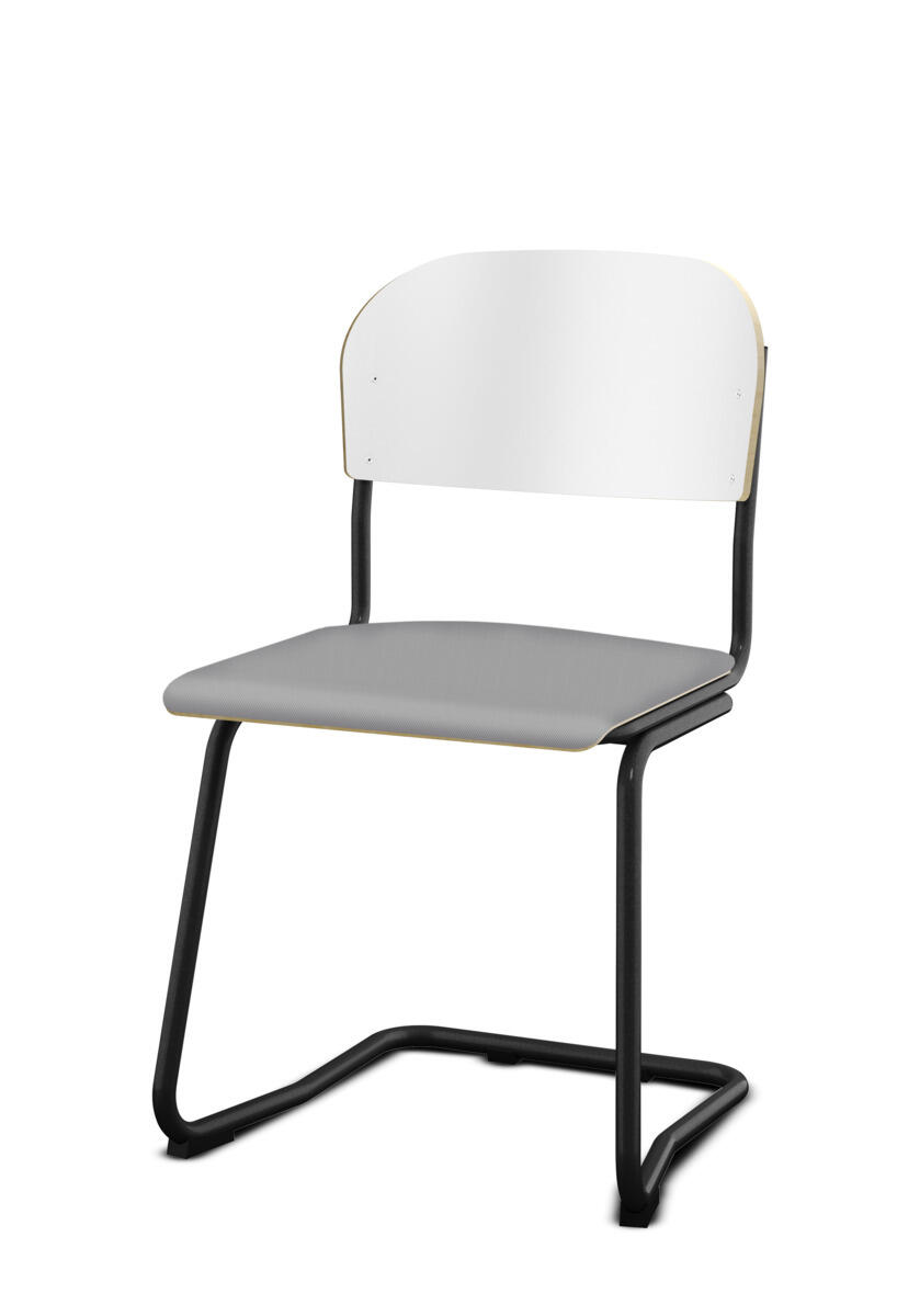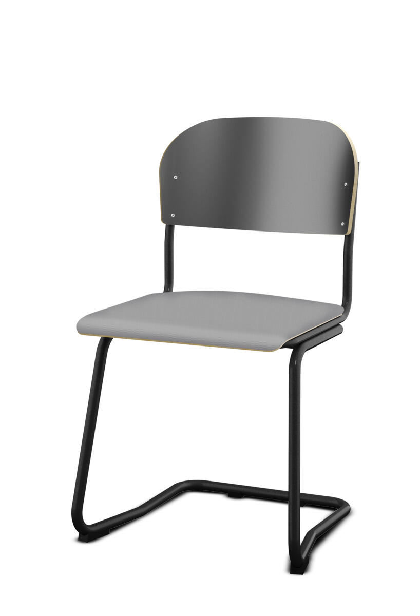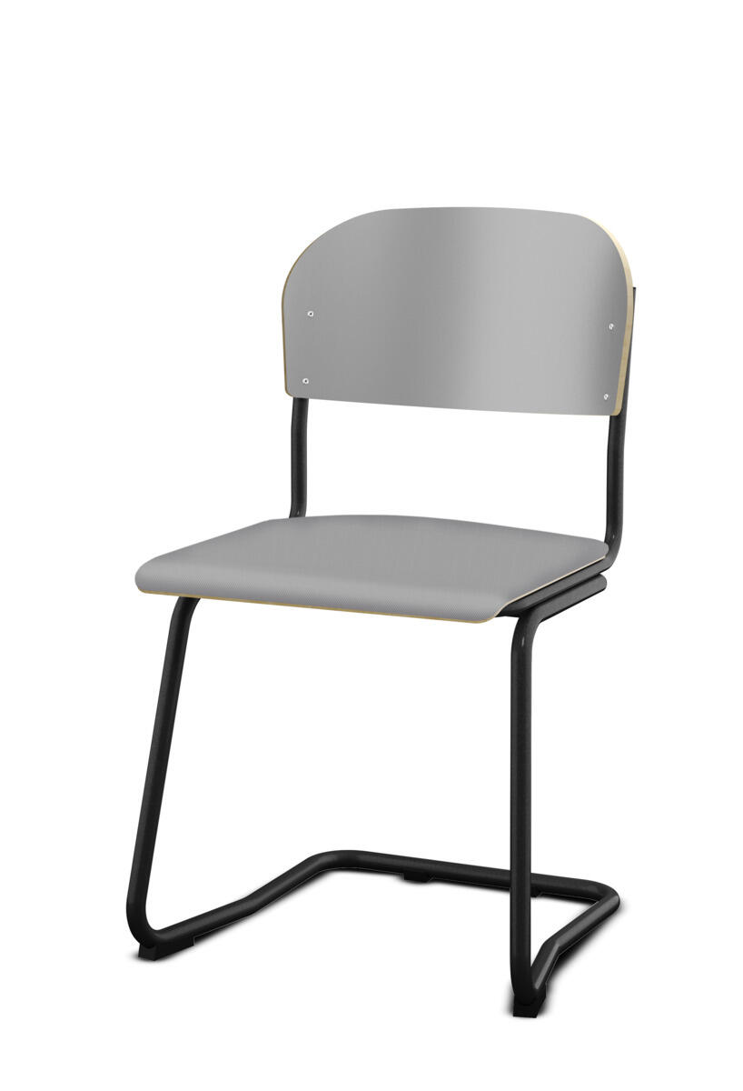 Kan stables (maks. 4 stole). Lyddæmpende dupper. Kan hænges op på et bord. Justerbar fodstøtte i 3 faste højder. Siddehøjde 50 cm. Sædemål: B36xD35 cm. Totaldybde på stel 54 cm. Vægt 4,6 kg. Sæde og ryg i højtrykslaminat. Sortlakeret stel RAL 9005.