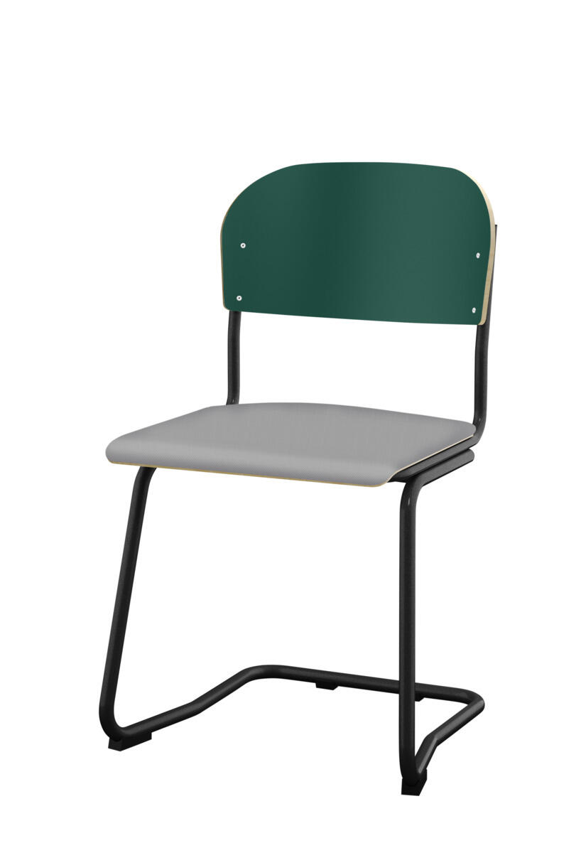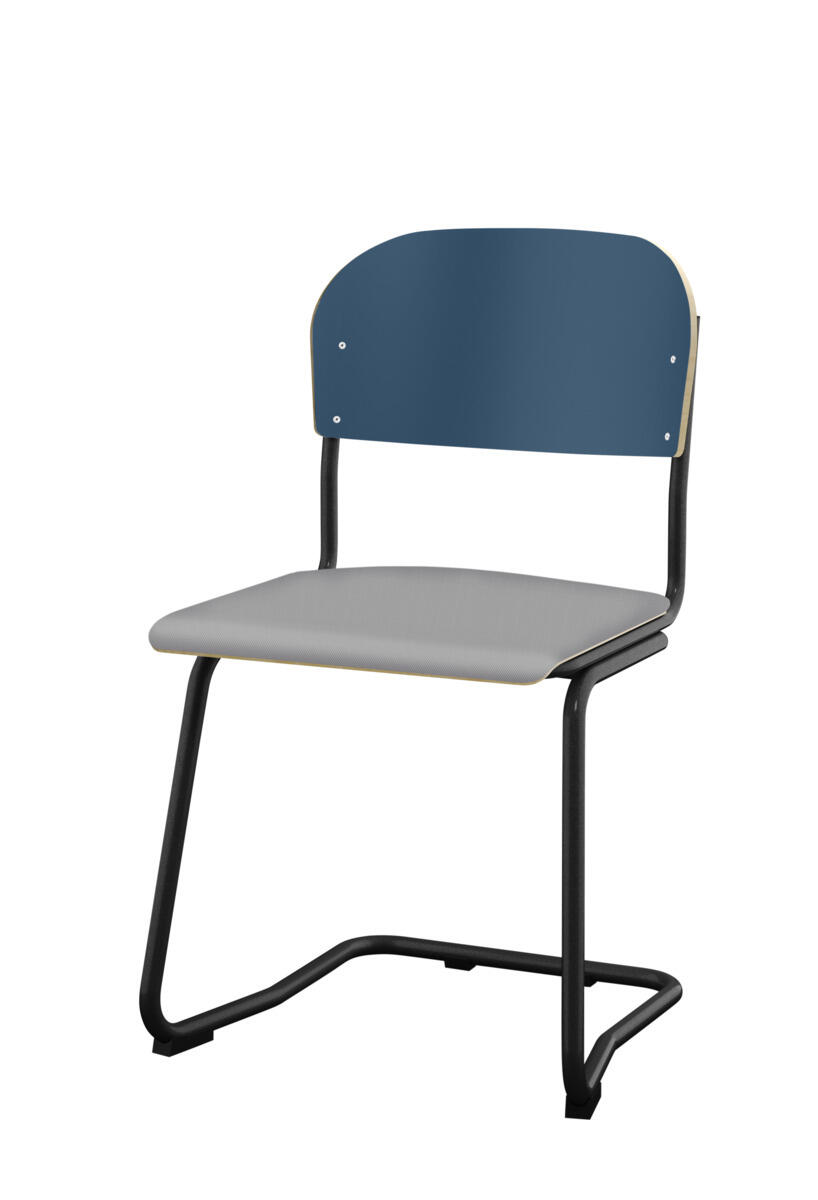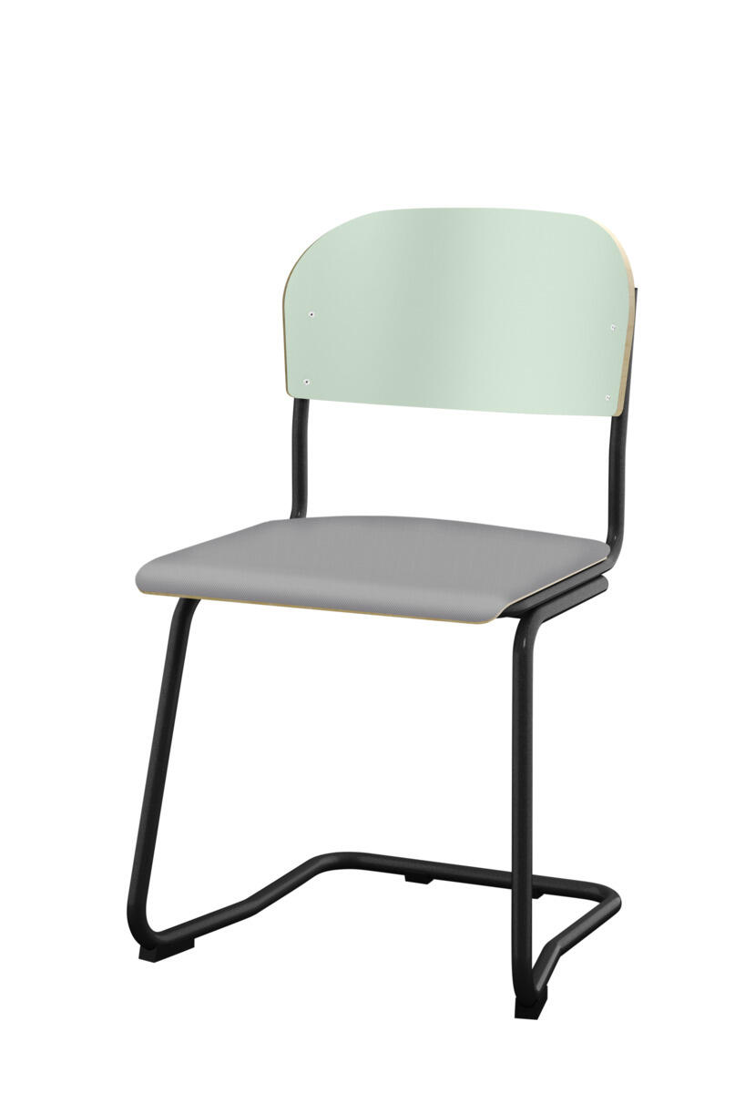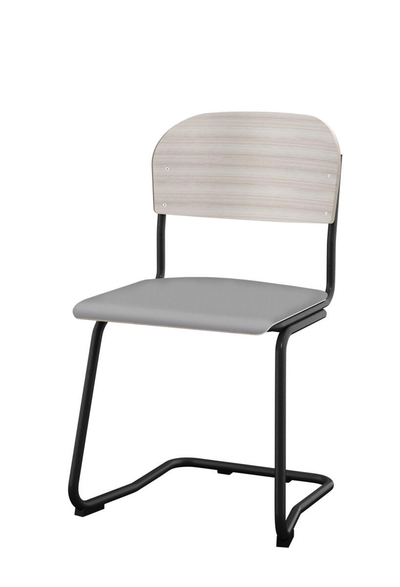 Kan stables (maks. 4 stole). Lyddæmpende dupper. Kan hænges op på et bord. Justerbar fodstøtte i 3 faste højder. Siddehøjde 50 cm. Sædemål: B36xD35 cm. Totaldybde på stel 54 cm. Vægt 4,6 kg. Sæde og ryg i højtrykslaminat. Sortlakeret stel RAL 9005.