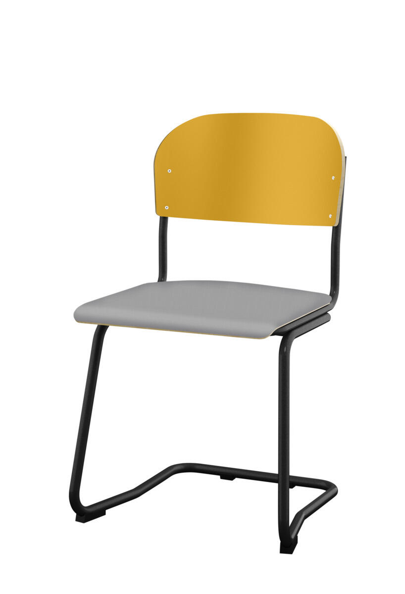 Kan stables, maks. 4 stole i højden. Sæde og ryg i højtrykslaminat. Kan hænges på bord. Justerbar i højderne 45, 51, 57 og 63 cm. Med fodstøtte. OBS! Øvre del af stolen skal altid have 2 huller i nedre rørdel.