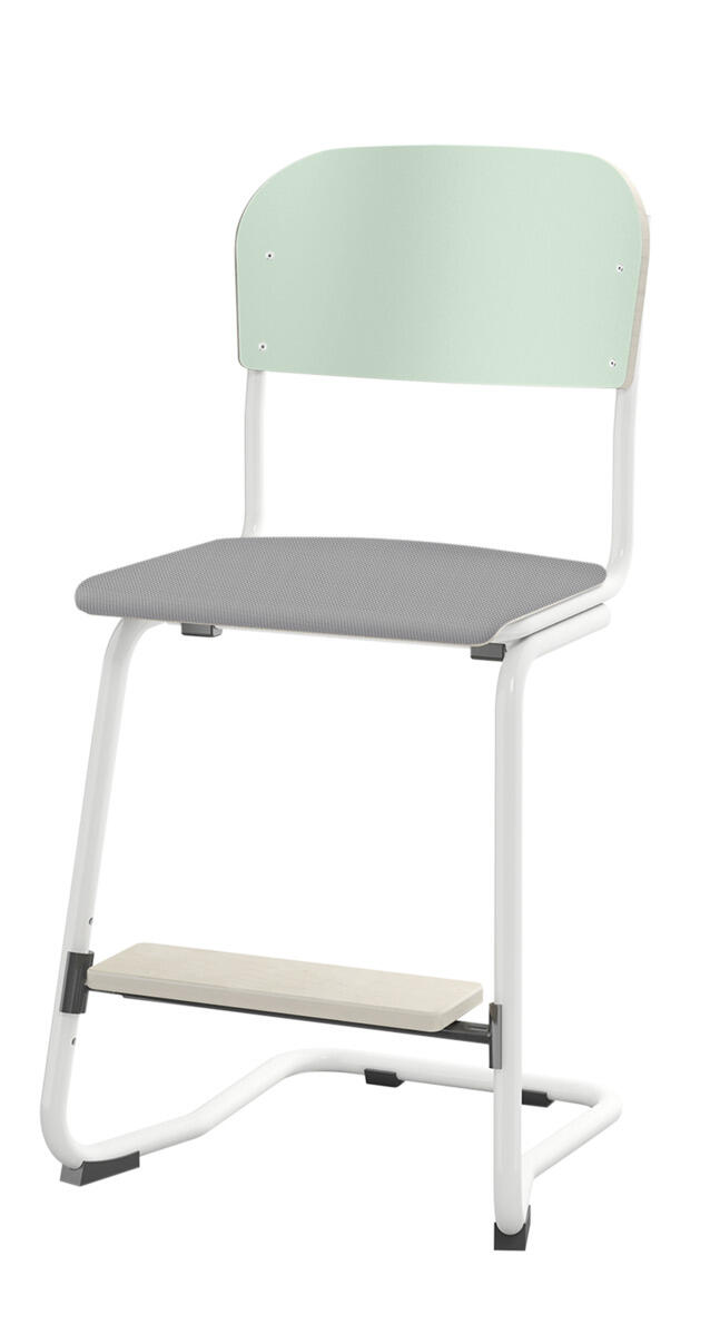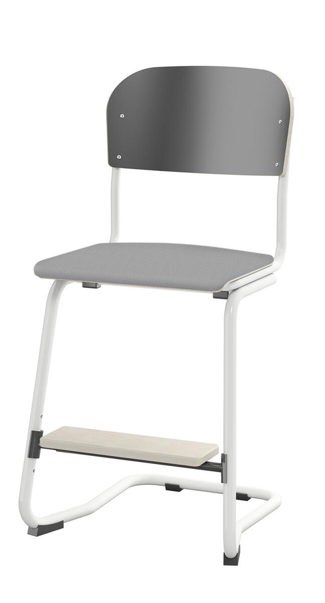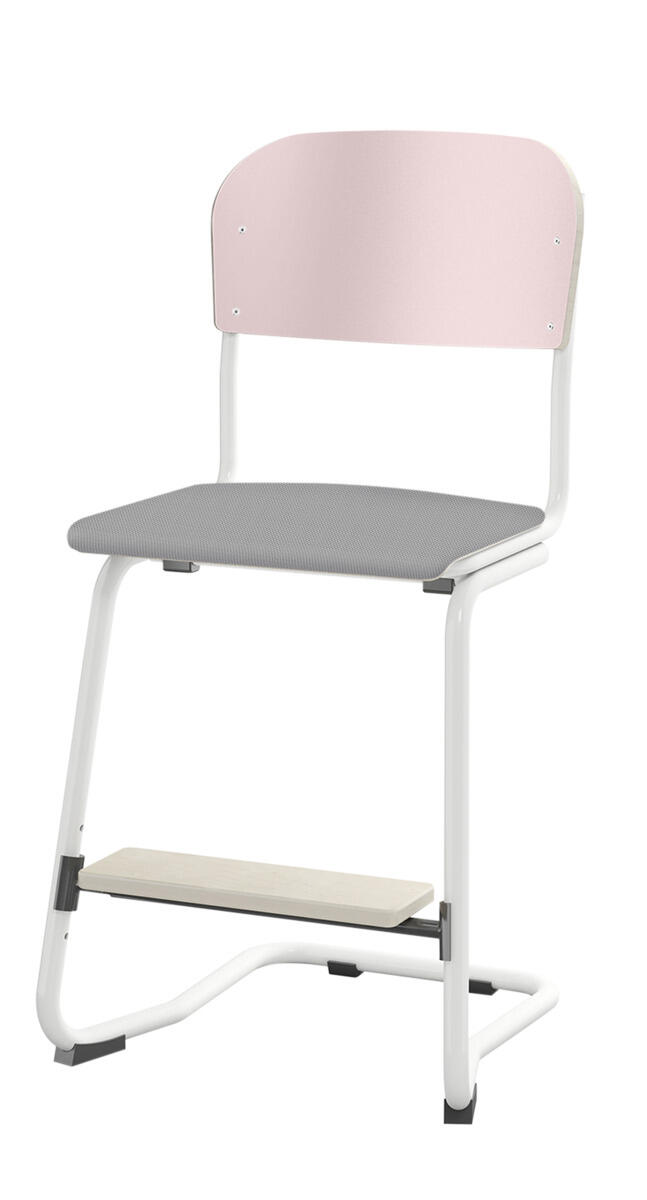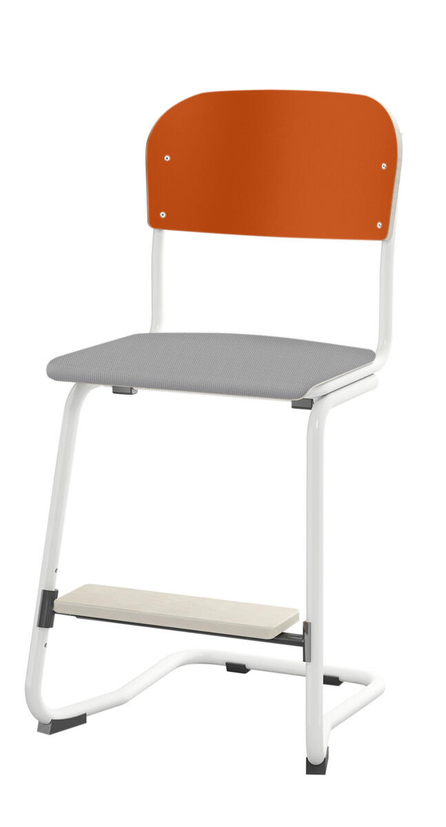 Kan stables, maks. 4 stole i højden. Sæde og ryg i højtrykslaminat. Kan hænges på bord. Justerbar i højderne 45, 51, 57 og 63 cm. Med fodstøtte. OBS! Øvre del af stolen skal altid have 2 huller i nedre rørdel.