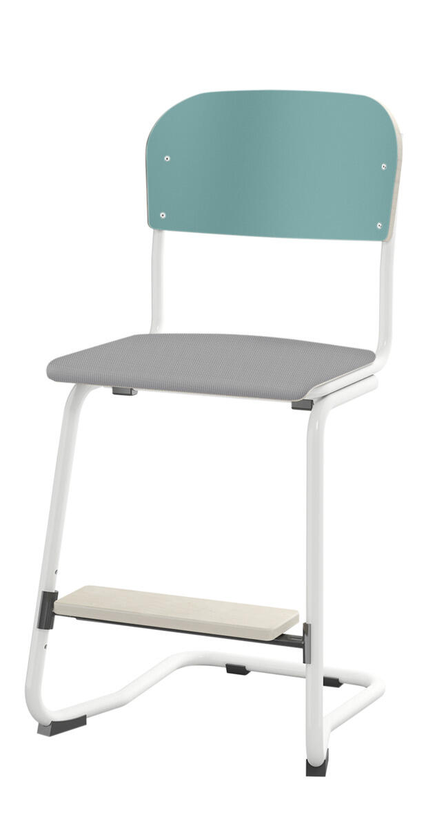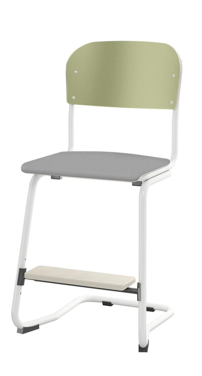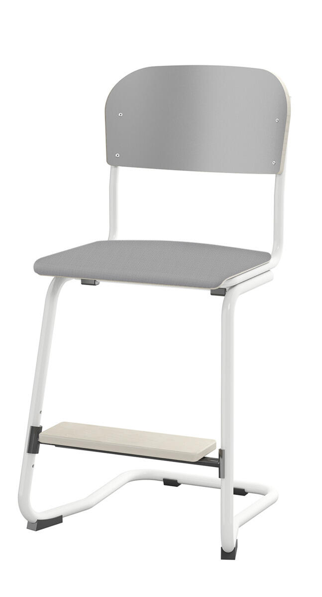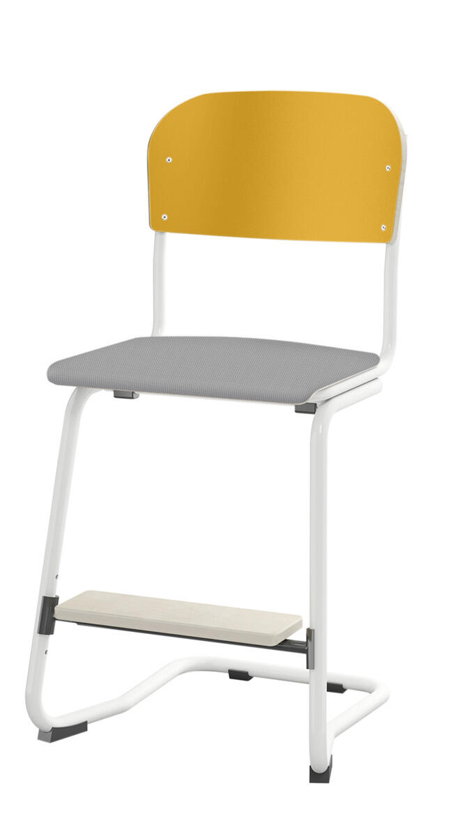 Kan stables, maks. 4 stole i højden. Sæde og ryg i højtrykslaminat. Kan hænges på bord. Justerbar i højderne 45, 51, 57 og 63 cm. Med fodstøtte. OBS! Øvre del af stolen skal altid have 2 huller i nedre rørdel.