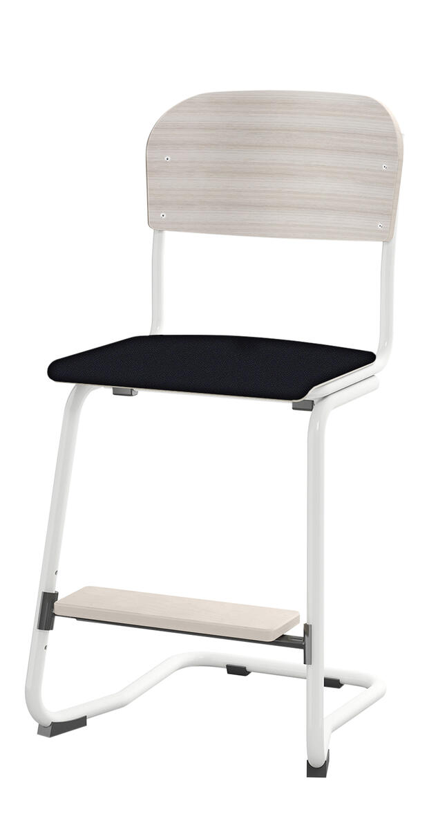 Kan stables (maks. 4 stole). Lyddæmpende dupper. Kan hænges op på et bord. Justerbar fodstøtte i 3 faste højder. Siddehøjde 63 cm. Sædemål: B36xD35 cm. Totaldybde på stel 54 cm. Vægt 6,8 kg. Sæde og ryg i højtrykslaminat. Sortlakeret stel RAL 9005.