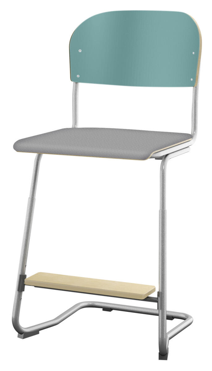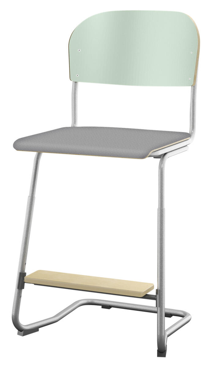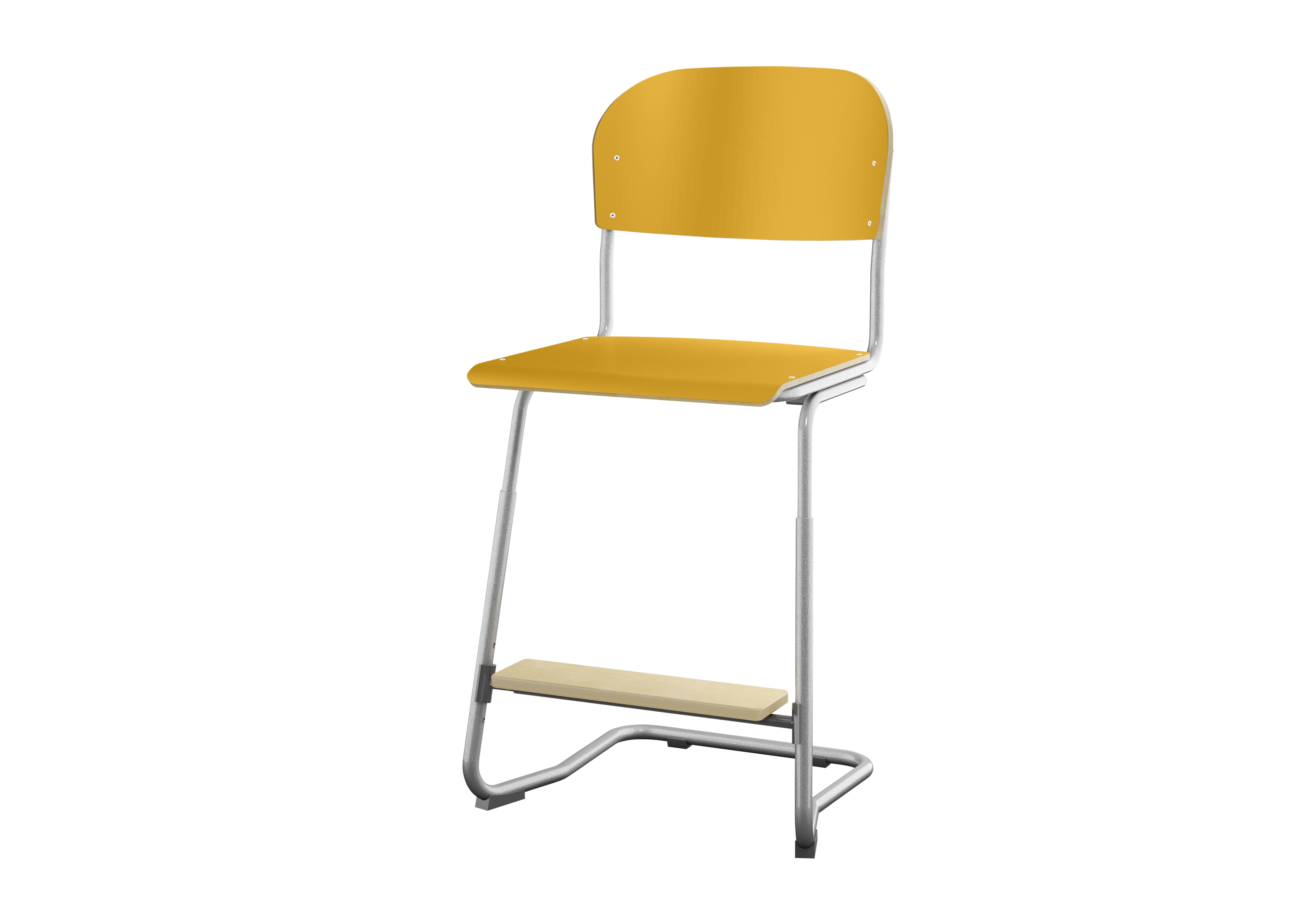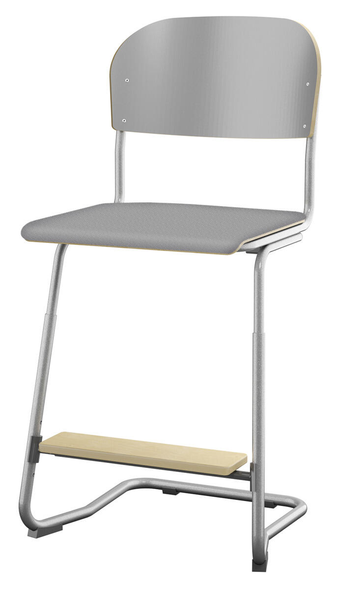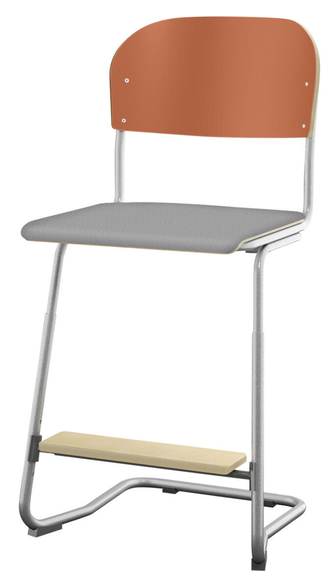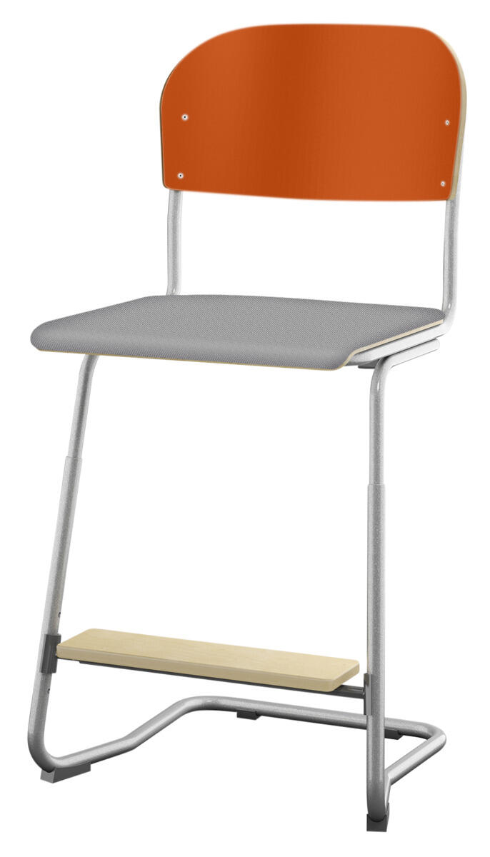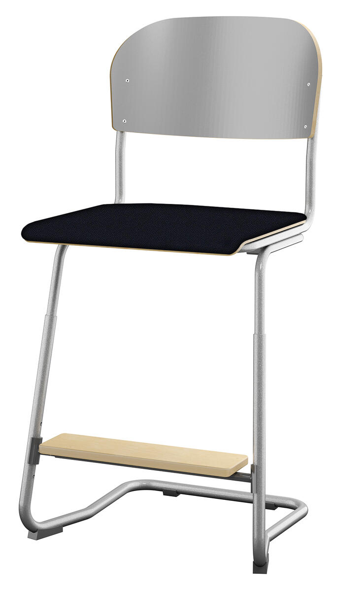 Kan stables, maks. 4 stole i højden. Sæde og ryg i højtrykslaminat. Kan hænges på bord. Justerbar i højderne 45, 51, 57 og 63 cm. Med fodstøtte. OBS! Øvre del af stolen skal altid have 2 huller i nedre rørdel.