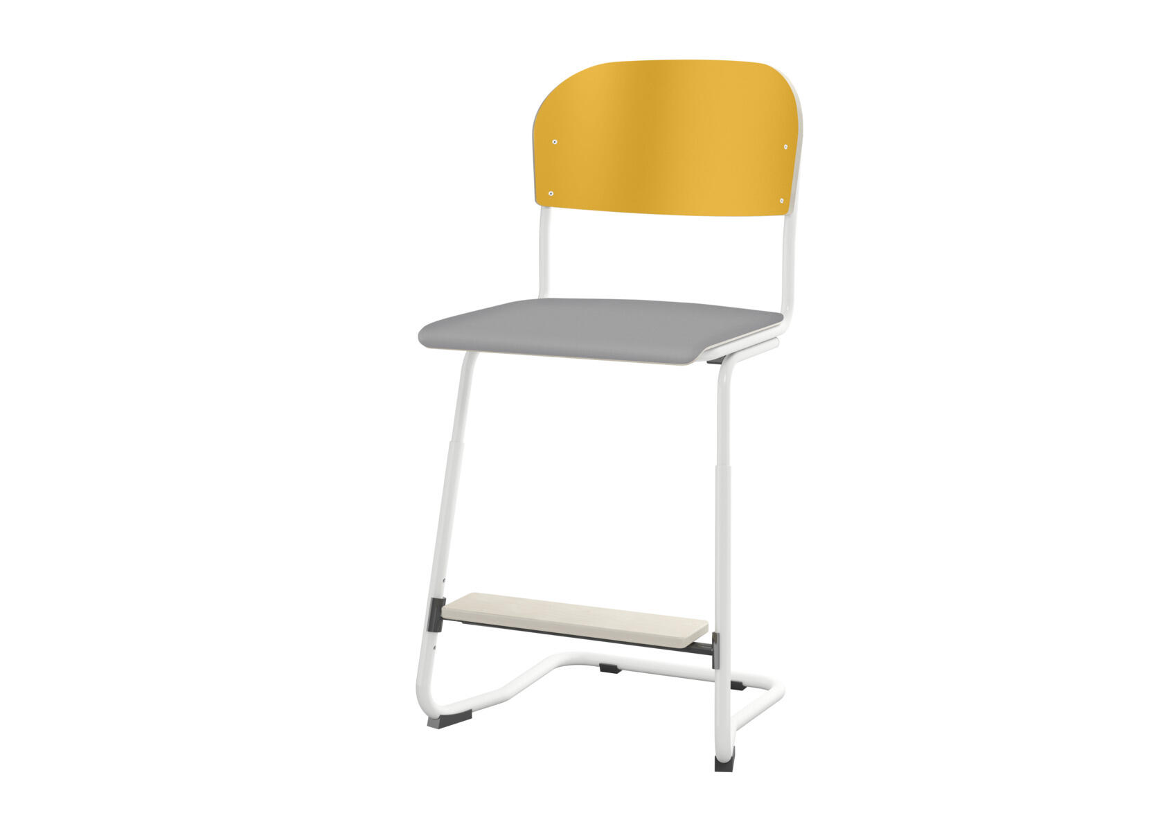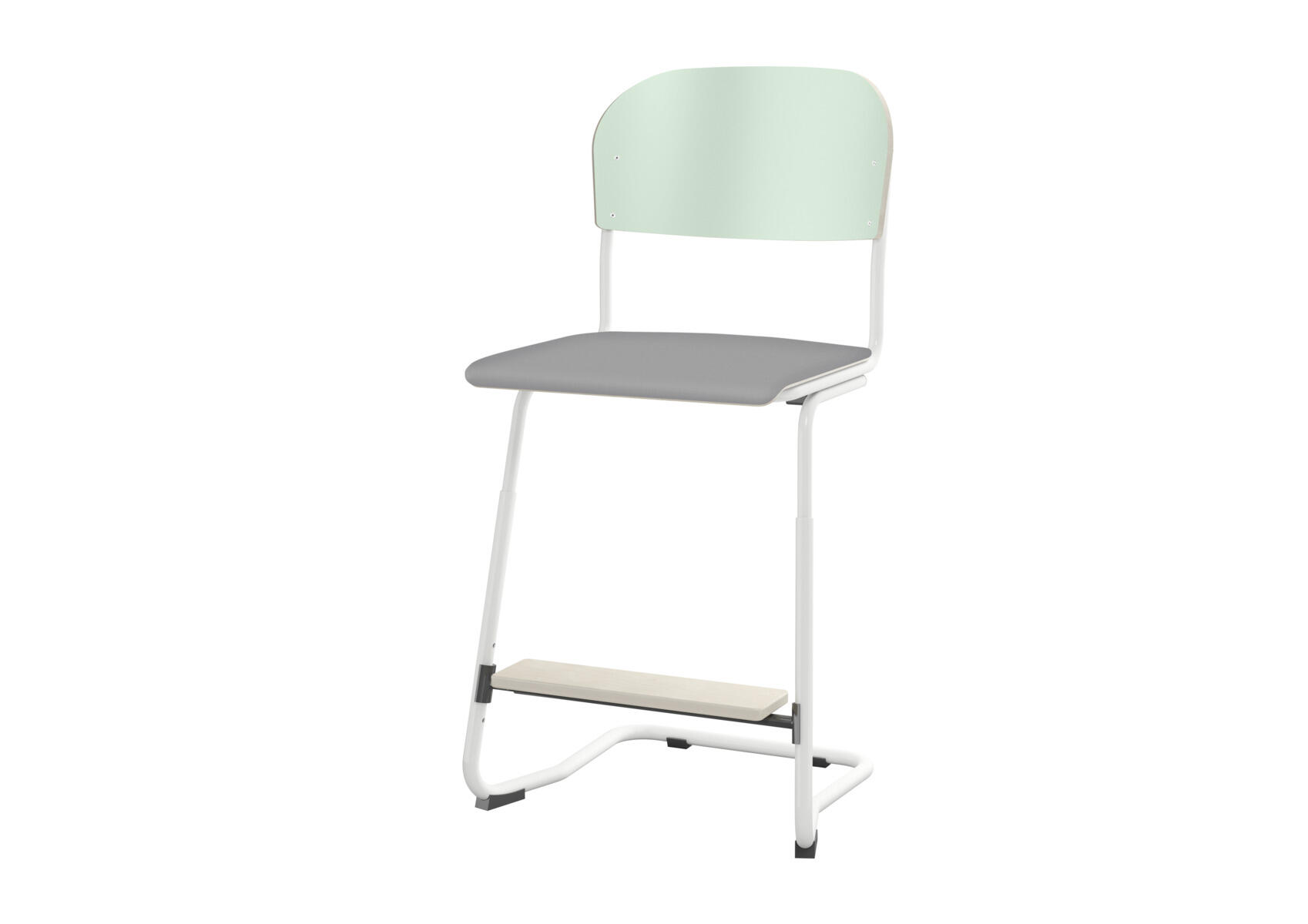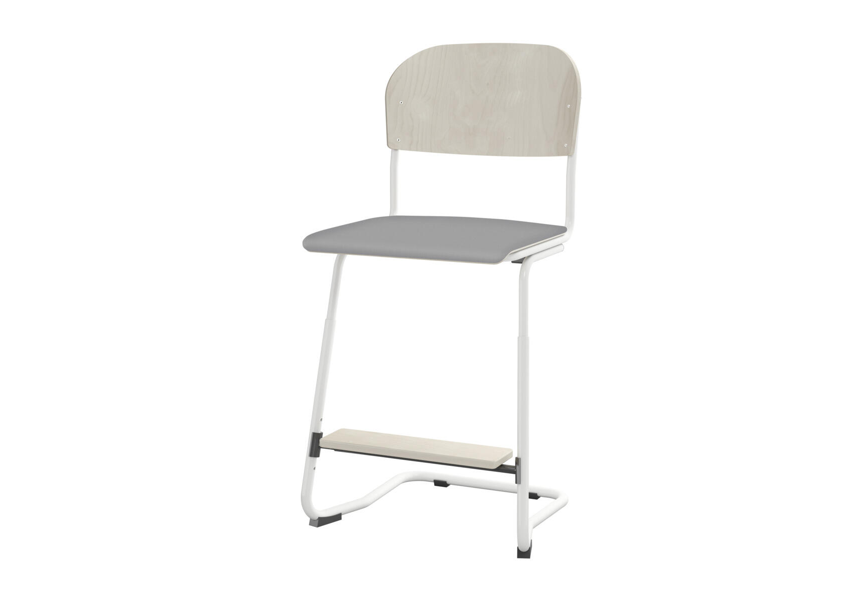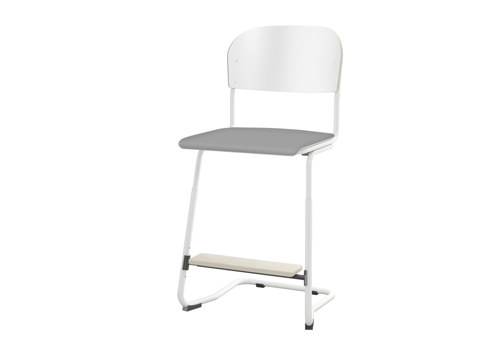 En af vores bestsellere. En klassiker som aldrig går af mode med sit enkle og tidløse design. Sæde og ryg i højtrykslaminat. Hvidlakeret stel, RAL 9003. Siddehøjde 57, 60 eller 63 cm, siddebredde 42 cm, siddedybde 39 cm. Vægt 7,4 kg. Justerbar fodstøtte i 3 faste højder. Kan stables (maks. 4 stk. i højden) og hænges på bord. Med lyddæmpende dupper under fødderne. Lyddæmpende filt med varenr. 35719, som kan fastgøres under sædet, kan bestilles separat.